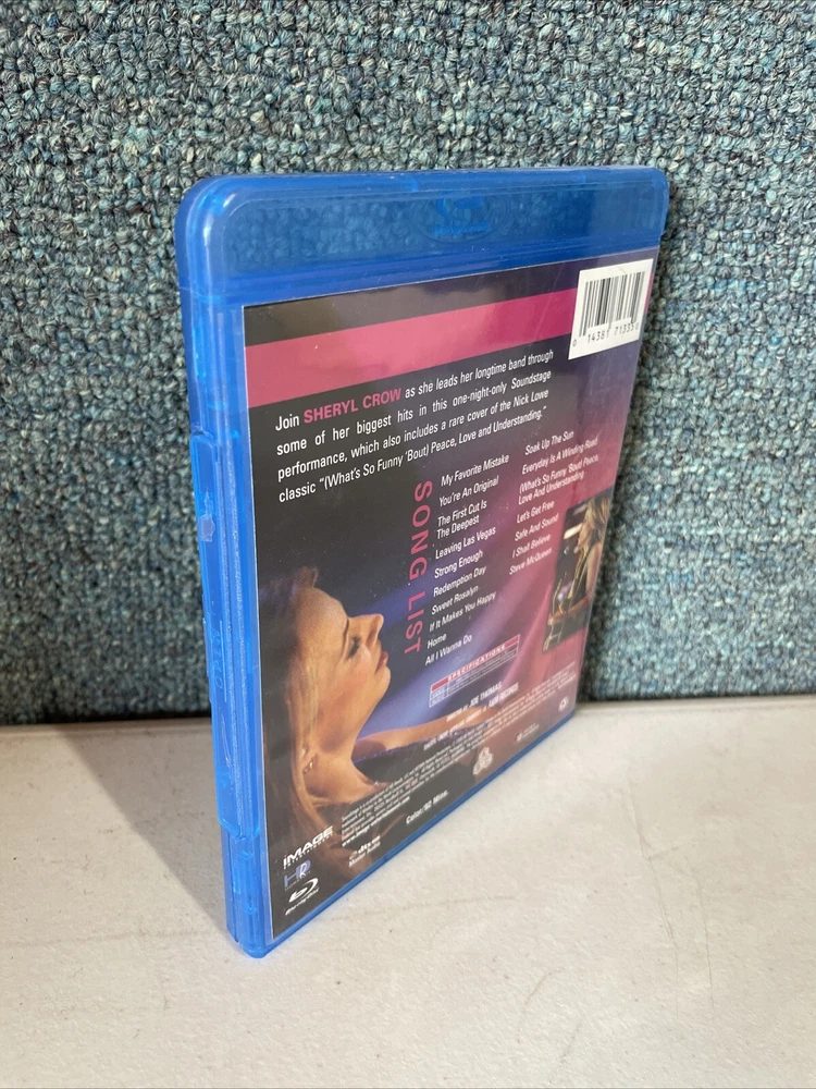 This is a used Blu-ray of "Sheryl Crow Live," featuring the music artist Sheryl Crow in a concert directed by Joe Thomas. The Blu-ray is in NTSC video format with a widescreen aspect ratio of 1.78:1. It was released in 2008 by Image Entertainment and has a run time of 92 minutes. The language of the Blu-ray is English, and it is compatible with Region Codes A, B, and C. It comes in a standard Blu-ray case.