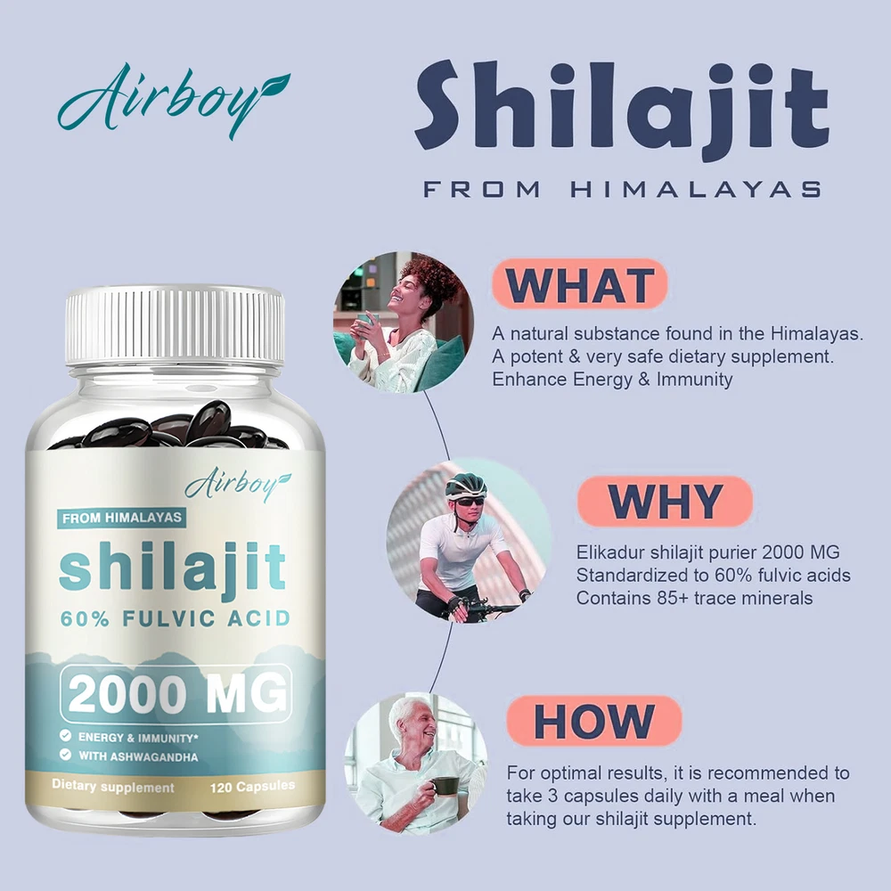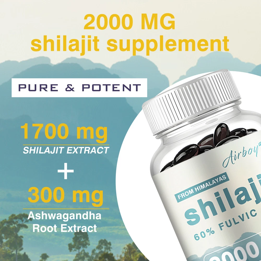 Effects: Cognitive Health,Immune Support Ingredients: Shilajit Exteact,Ashwagandha Directions: Take 2 capsules once daily after a meal. Shipping: Ships within 48 hours on working days. Shelf life: 2 years Description: Promotes overall well-being, providing potential support for all aspects of health. Whether it's boosting immune function, improving cognitive clarity or boosting energy levels, Shilajit Extract and Ashwagandha formula fits perfectly into your daily wellness regimen. Truly boost your overall health by rejuvenating the body, improving mental clarity, memory, energy, endurance and boosting the immune system. Free of Major Allergens: Free of wheat, gluten, soy, dairy, egg, fish/shellfish, peanuts/tree nuts and sesame; also suitable for vegetarians and non-GMO. Document