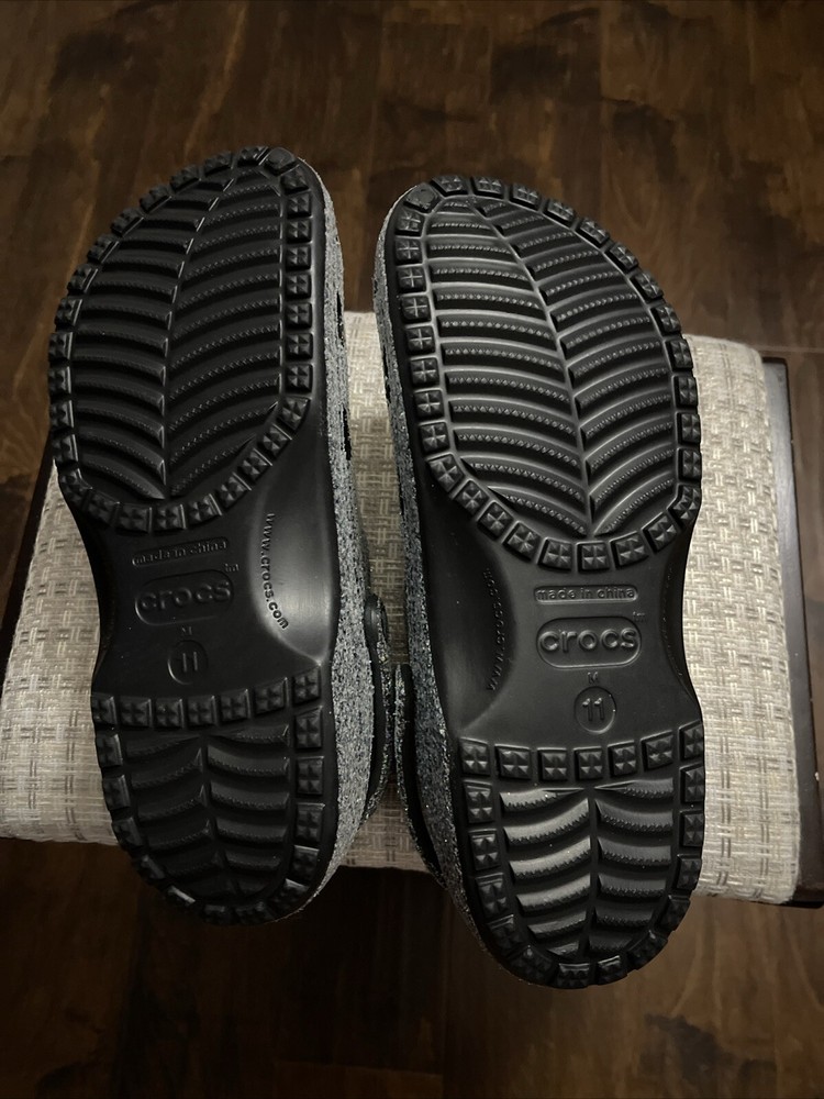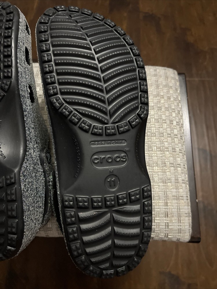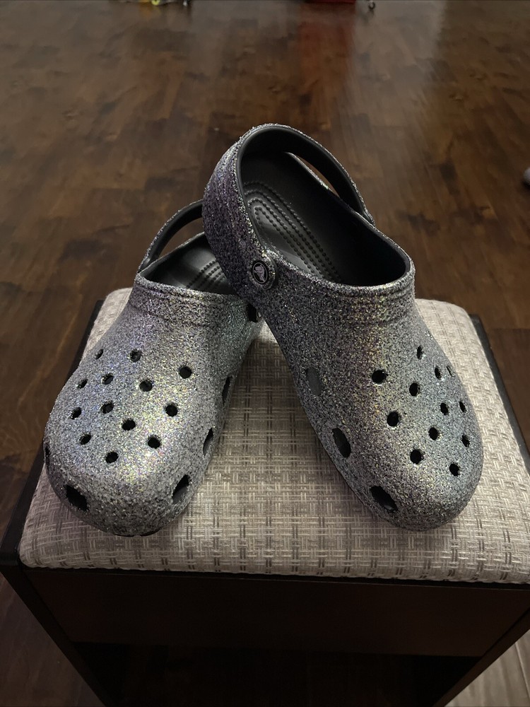 Features: Comfort, Lightweight, Breathable, Waterproof Lining Material: Rubber UK Shoe Size: 10 AU Shoe Size: 10 Season: Summer, Spring, Fall Outsole Material: Rubber Color: Glitter Upper Material: Rubber EU Shoe Size: 46 Country/Region of Manufacture: Unknown Type: Casual Style: Clog Pattern: Glitter Shoe Width: Standard Closure: Slip On Occasion: Casual, Travel Brand: Crocs Toe Shape: Round Toe Model: Classic Crocs Product Line: Classic Crocs Accents: Glitter Insole Material: Rubber US Shoe Size: 11 Customized: No Department: Men