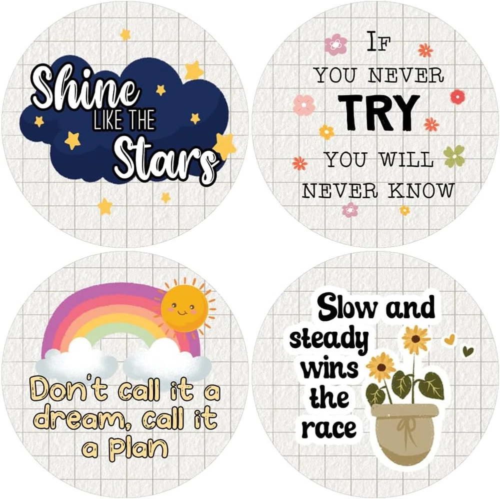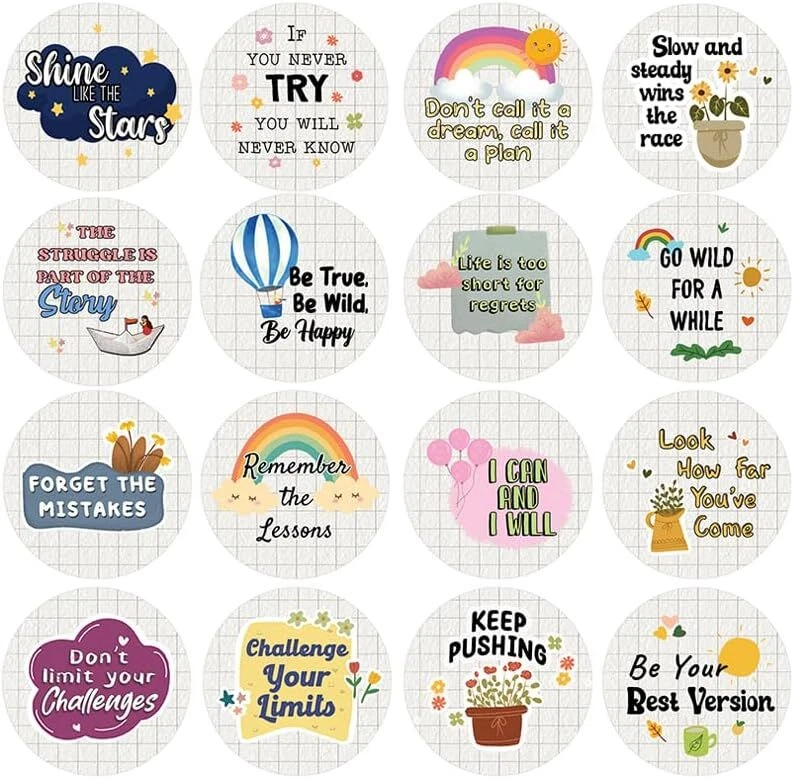 16 UNIQUE DESIGNS INSPIRING STICKERS FOR YOUR DIY PERSONALIZED DECORATIONS - Creanoso Shine Like The Stars Stickers (5-Sheets). These colorful and uniquely inspiring round shaped stickers are the best tool for DIY decoration and personalization of your belongings. GREAT STOCKING STUFFERS , TEACHING SUPPLEMENTARY MATERIALS, AND GIVEAWAY - Great stocking stuffers gifts for Boys, Girls, Teens, Kids. A perfect design to give during classroom school activities, home schooling,birthdays, anniversaries, family day, and any other special occasions. MADE WITH DURABLE AND WATERPROOF MATERIALS - There is a lamination or coating to make the stickers high water resistant, and WILL NOT fade from the water. The stickers can stick it anywhere you like, and it sticks there and lasts a long time. A COLORFUL AND DECOR STICKER DECAL - Each sheet with 16 individual round stickers. There are 5 sheets , with a total of 80 pcs of stickers. STICKER SIZE: 1.5 INCHES IN DIAMETER Shine like the Stars Stickers (2-Sets x 6 Cards) COLORFUL AND COLLECTION OF TEXT STICKERS • Well designed. • Very encouraging. • Self-adhesive. Shine like the Stars Stickers (2-Sets x 6 Cards) are super fun to collect; you can't have just one! That's why you will find a selection of stickers right here. Each package comes with different stickers in a variety of designs. Stick them here, stick them there, stick them everywhere! Everyone will love these self-adhesive stickers. These colorful stickers are perfect for any adults and these come with very inspiring messages and bright pictures. A fun, inexpensive way to add a decorative, notes, and stationery. Delight yourself with uplifting messages designs that are very encouraging. Shine like the Stars Stickers (2-Sets x 6 Cards) perfect for giveaways, behavior incentives, prizes! These stickers are acid-free, nontoxic, and safe for use on photos. This product comes with a 60 days money back guarantee. You can return them to us for a full refund.