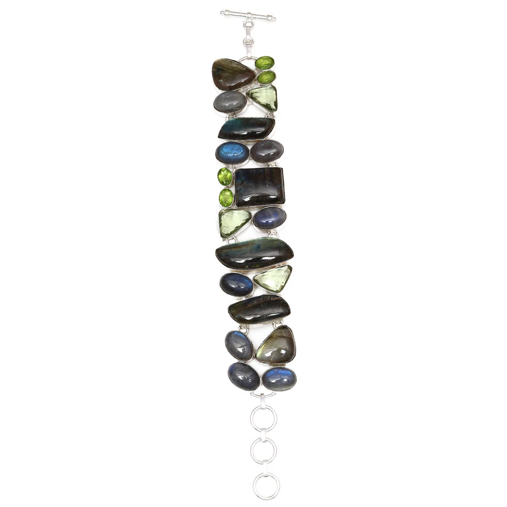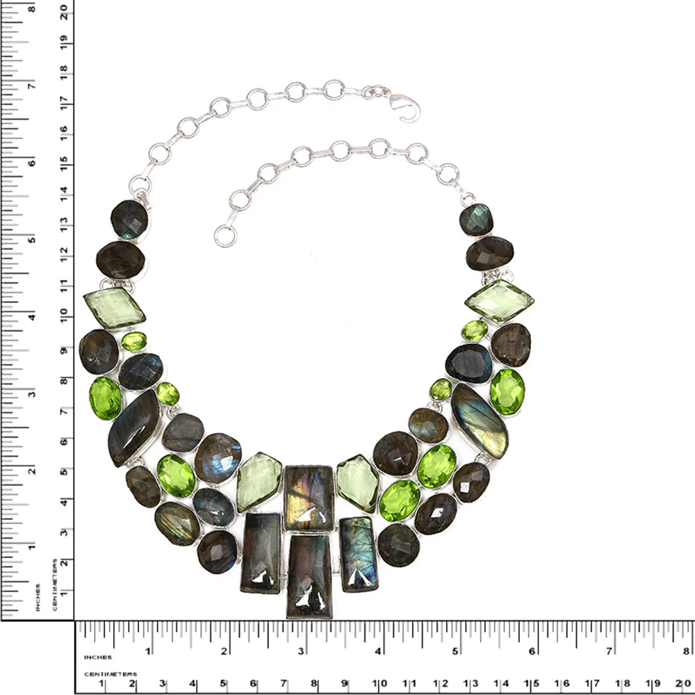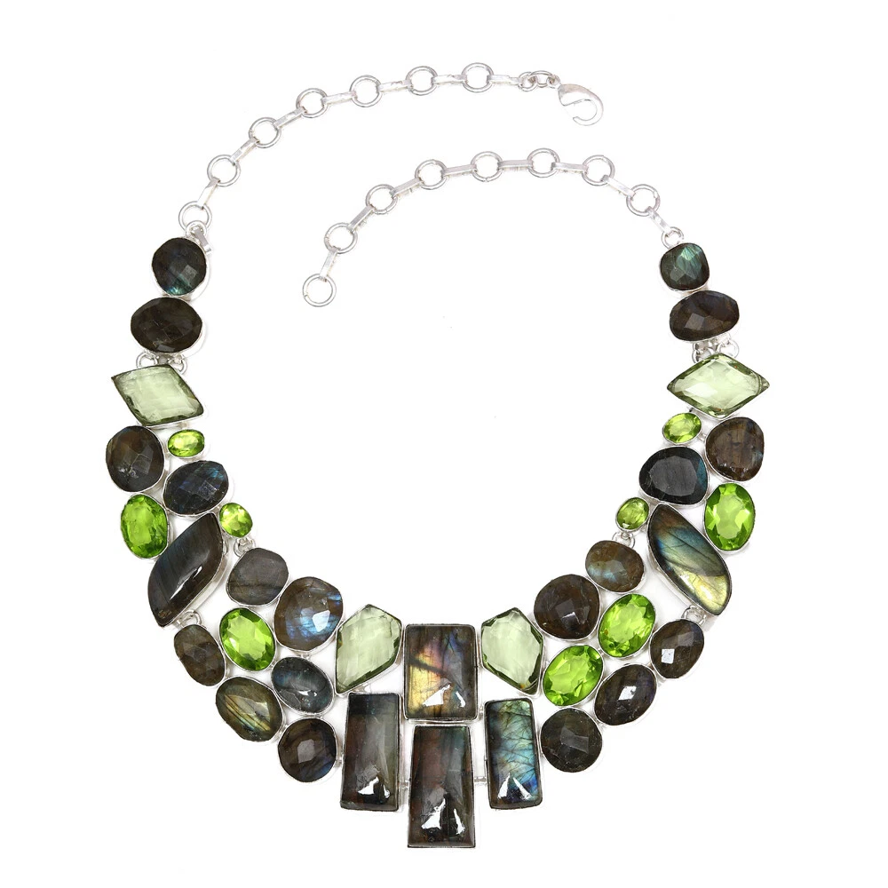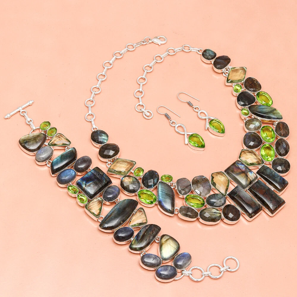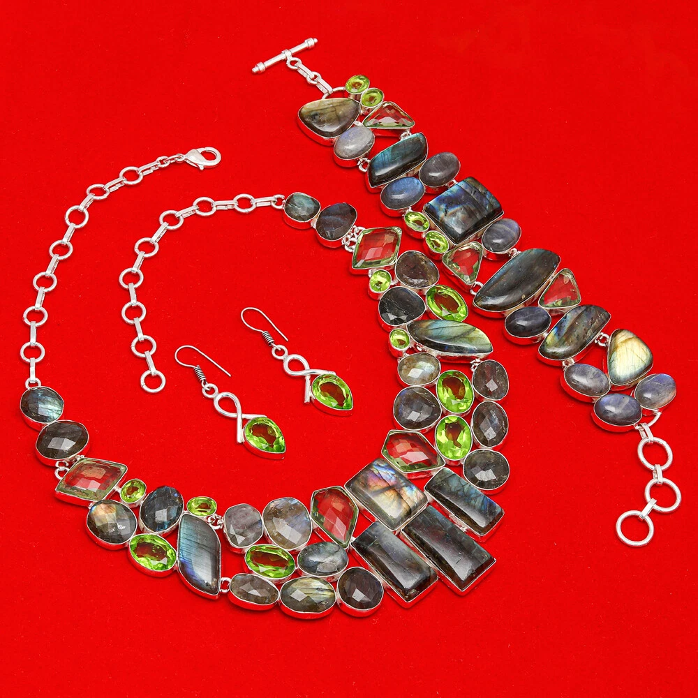 Shiney Labrodorite Peridot Quartz Jewelry Necklace Set 16-18''
