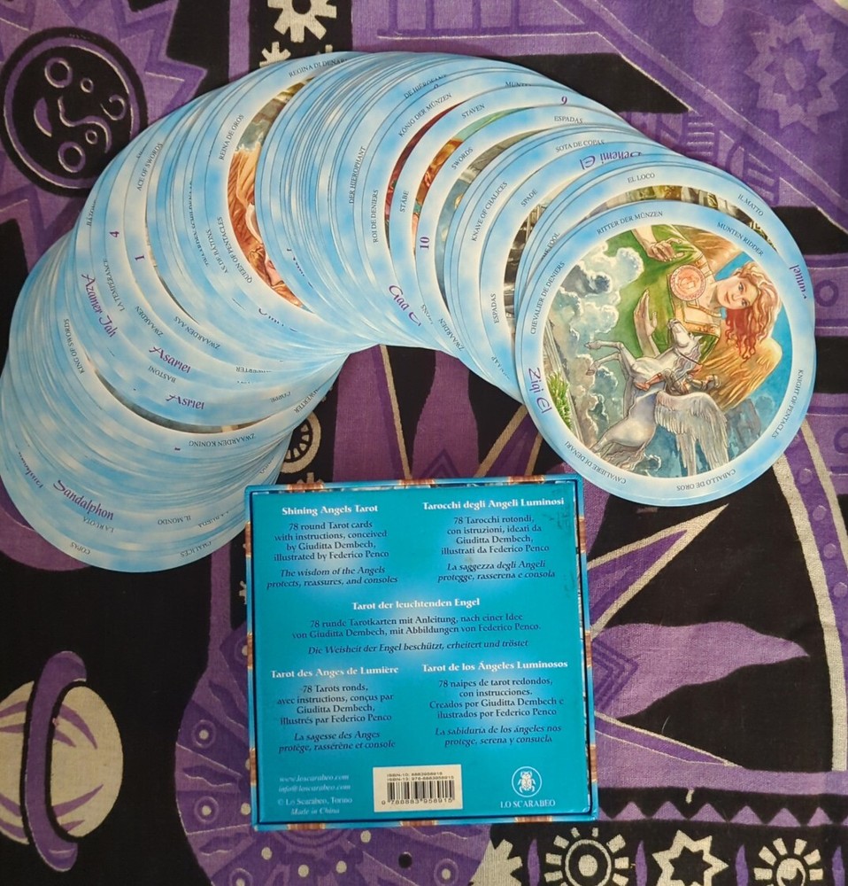 Shining Angels Tarot Deck - 2009 - Lo Scarabeo 78-cards round card deck with booklet. Box, cards, and booklet in great condition.