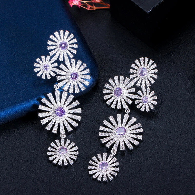 Shining Silver Plated Cubic Zirconia Purple Flower Long Chandelier Drop Earrings There’s an old saying that: Jewelry is woman’s best friend. And one appropriate luxury jewelry helps to spice up your charm and beauty. And here’s the reason why you choose us: ★ We adopts high-grade Cubic Zirconia, which displays pure and fascinating color; ★ All our items are Elaborate, Gold Plated (white gold plated/yellow gold plated/black gold plated), by which the texture is smooth and with fancy look, and will be appropriate for so many occasions; ★ Our items are with Exquisite Design, which shows your excellent taste, and could catch people’s attention easily. ★ Ideal gift for mother, wife, girlfriend, daughters, brides, bridesmaids, ect. Specification Type: Dangle/Drop Earrings Stone Material: Cubic Zirconia Base Metal Material: Brass Metal Material: Silver Plated Earring Post: 925 Sterling Silver Shape: Flower Color: Purple Suitable Occasion: Daily, Holidays, Party, Engagement, Wedding, Anniversary, Valentine’s Day, Carnival, Performance, ect. Package Includes 1 Pair of CZ Drop Earrings Please note: *Please bear in mind that there might be 1~2cm difference due to manual measurement. *Our digital images are as accurate as possible. However, different monitors may cause colors to vary slightly. *We offer after-sale service, if there is any item problem, please feel free to contact us via eBay message first, your kind understanding is much appreciated. About Us Payment Shipping Returns Contact us About Us Topjewel33 is a newly-established online store which dedicates to provide excellent luxury jewelry products, such as earrings, rings, necklaces, bracelets, brooches, hair accessories, and high grade jewelry sets. We target worldwide market, and we strive for offering you unbeatable low price and satisfied customer service. Payment We accept PayPal payment only. Payment must be received within 7 days from the date of purchase. Shipping We do hope all our customers could receive the order asap, so normally, the order will be sent out within 2 working days. And as the delivery is handled by the third party, sorry that we could not guarantee which date you could receive the package. And sometimes the delivery might be a little bit delay, especially in high volume or holiday seasons. However, please don’t worry and feel free to contact us via eBay message, and we will do our best to help. And we sincerely apologize for any inconvenience may cause. Sometimes custom tax might be required, and we are afraid that it will be covered by the buyers, thank you for kind understanding. Returns We provide 30 days money back return policy. And if you have any problem with the item, please make sure the item is in the original package and feel free to contact us via eBay message first, thank you for kind understanding and cooperation. Contact us We offer customer service, if you have any problem with the item before/during/after the purchase, please feel free to contact us via eBay message, and we will get back to you asap. Thank you for your kind patience.