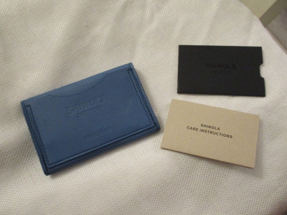 you ARE LOOKING AT never used as shown CONDITION: never used like all Shinola/ genuine leather items there are natural flaws in leather Shinola Detroit blue smooth ID genuine Leather snap wallet usa 3x4.25" envelope SMOKE AND PET FREE HOME.USA SHIPPING ONLY. PLEASE CONTACT ME THROUGH E-BAY ONLY. SEE MY OTHER ITEMS IN AUCTION. I AM HAPPY TO COMBINE SHIPPING. THANKS FOR LOOKING. PLEASE ASK QUESTIONS. I TRY TO DESCRIBE ACCURATELY AND WANT YOU TO BE HAPPY WITH PURCHASE SO IF ANY PROBLEMS, PLEASE CONTACT ME.