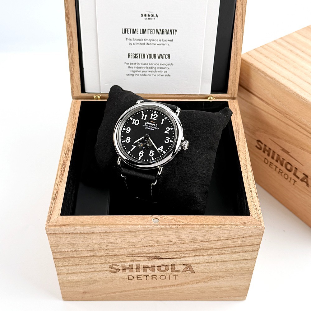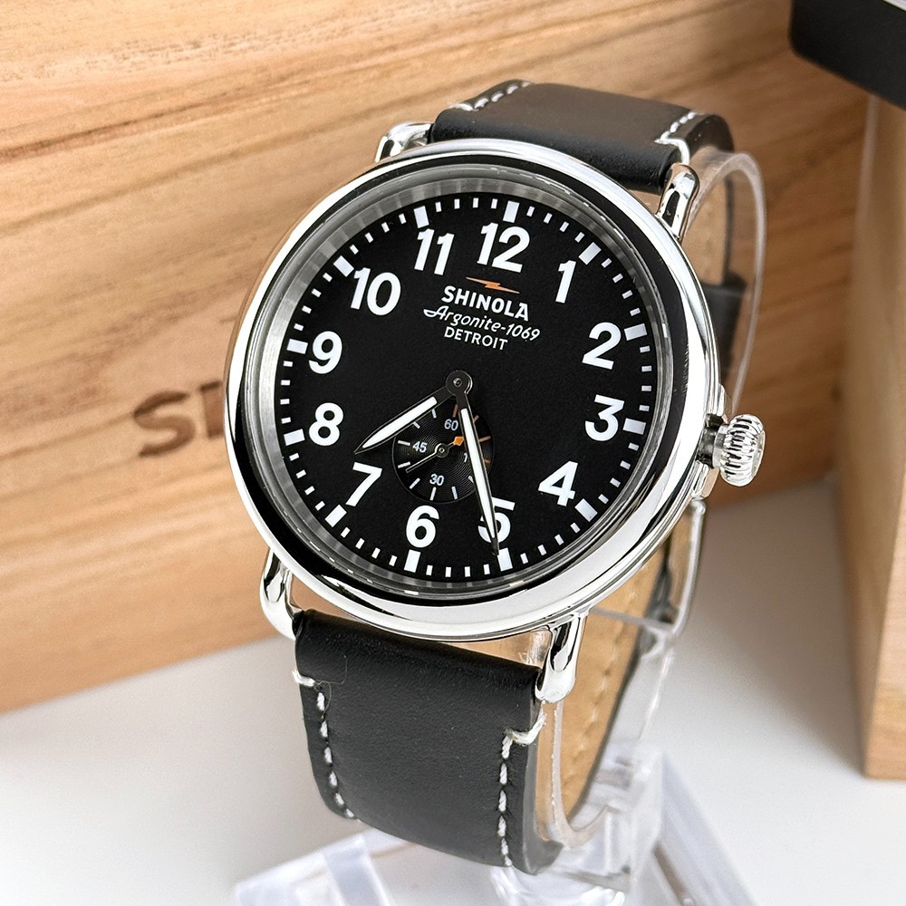 Shinola Runwell Men's Black Dial Black Leather Strap Quartz Watch 47mm Life needs a sense of ritual.🎁 Movement Type:Argonite 1069 Quartz Crystal:Double-domed Sapphire Depth Rating:5 ATM Case Case Material:Stainless Steel Plating:Polished Stainless Steel Size:47mm Thickness:10.32mm Back:Signature Iconic Caseback Plate with Laser-Etched Serial Number Crown Construction:Screw-down Details Material:Stainless Steel Band Material:Leather Color:Black with Contrast Stitch Length:120mm x 80mm Width 24mm Exterior Maintenance: The exterior of the watch includes components such as the case, dial, strap, and crystal, which require regular cleaning and upkeep. The case and strap should be frequently wiped with a soft cloth to prevent the buildup of grease and dust. The dial and crystal should be cleaned with a clean cloth to avoid water droplets and dust ingress. 💙Your package will be shipped within 1-3 business days after payment is received. 💙We offer returns and refunds within 30 days of delivery confirmation. 💙Feel free to contact me anytime with any questions!