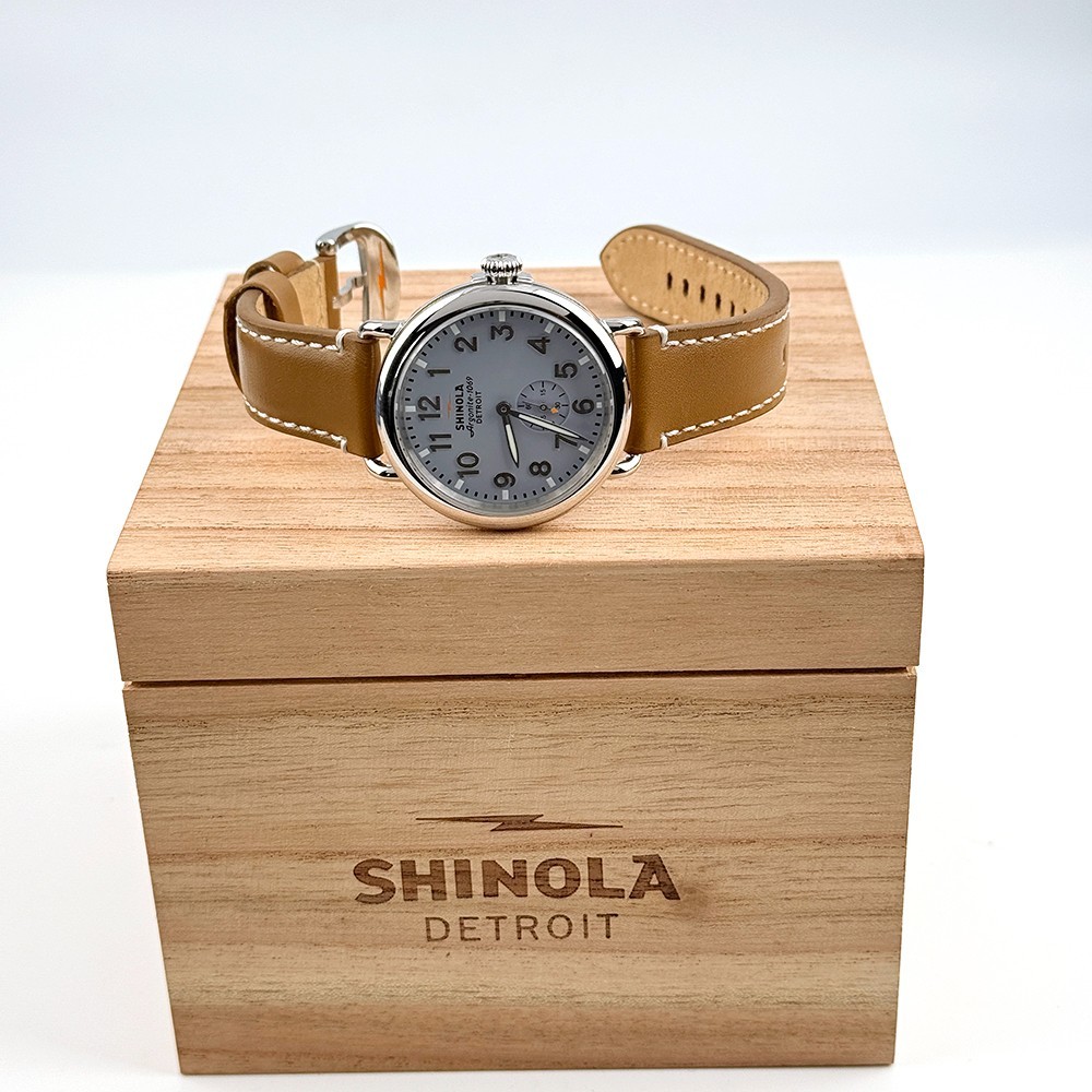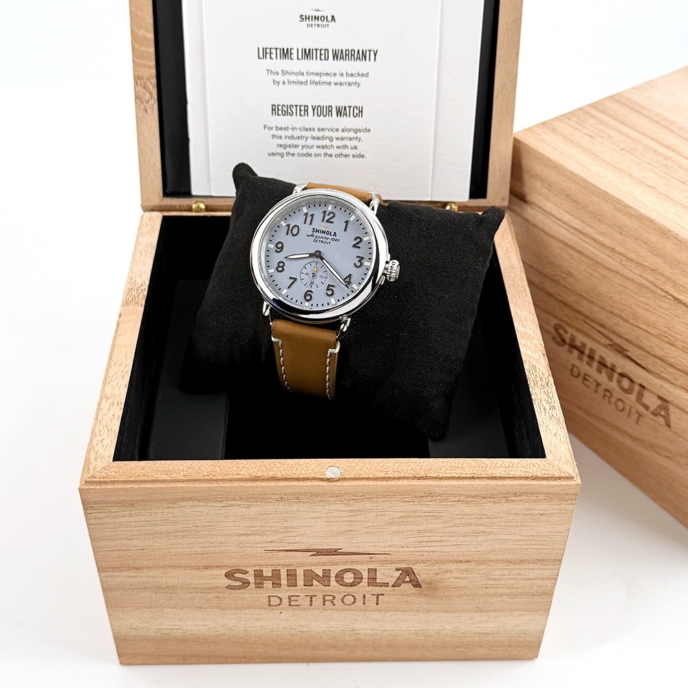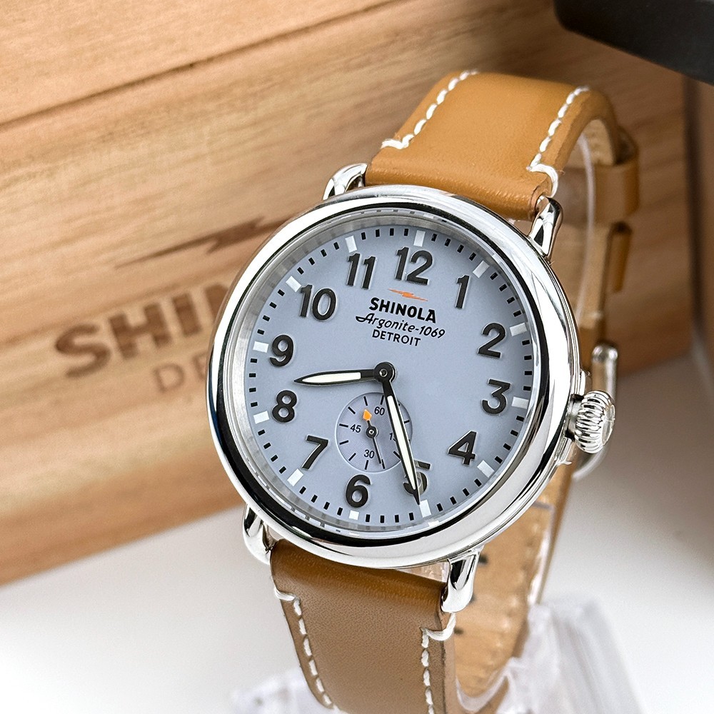 Shinola Runwell Men's Slate Blue Dial Tan Leather Strap Quartz Watch 41mm