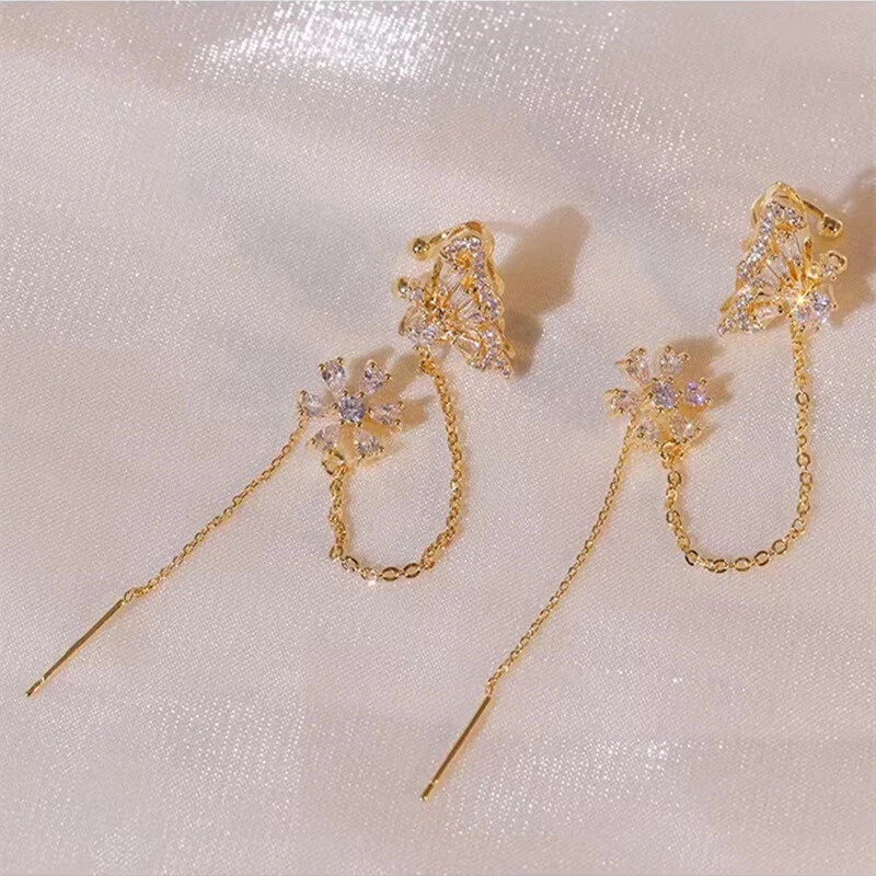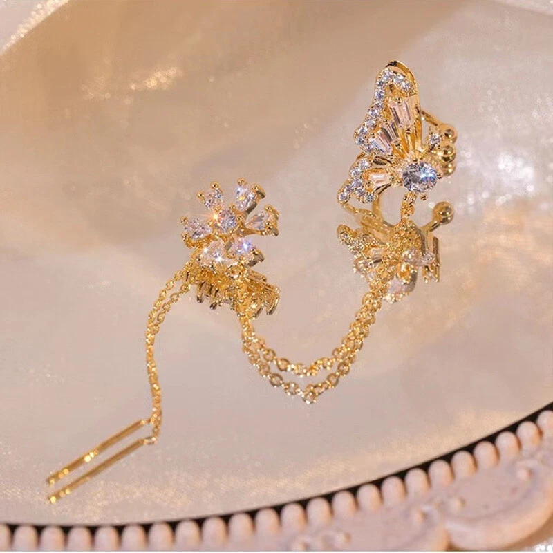 Shiny Crystal Butterfly Ear Cuff Clip Earrings For Women Fashion Tassel Chaa5