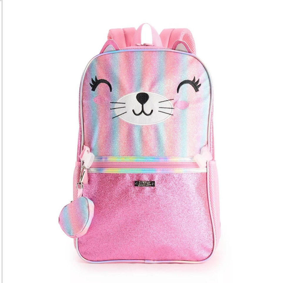 Your student will be looking stylish with this 2-piece backpack set. Backpack and Lunch bag included Zipper closure 5 external pockets, 1 internal Adjustable straps DETAILS Backpack 17" x 12" x 5", Lunch bag 8.75" x 8" x 6" PVC Spot clean Imported