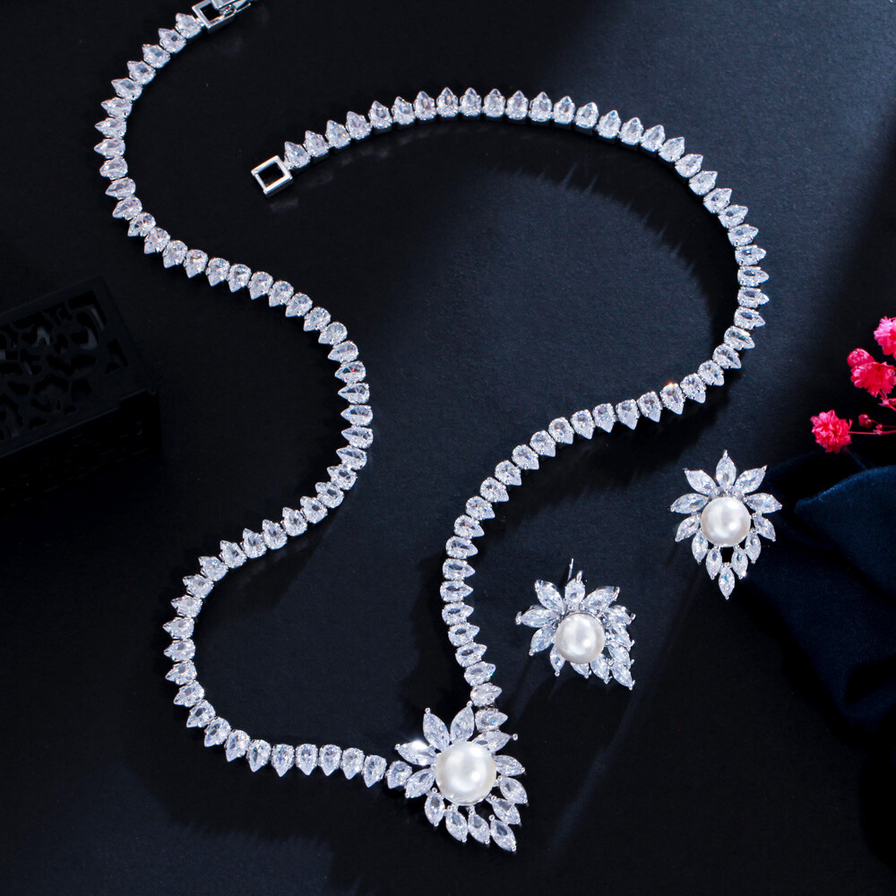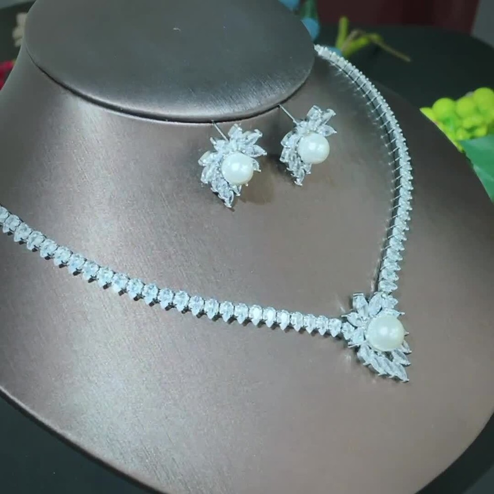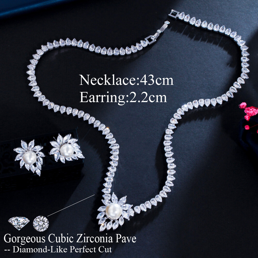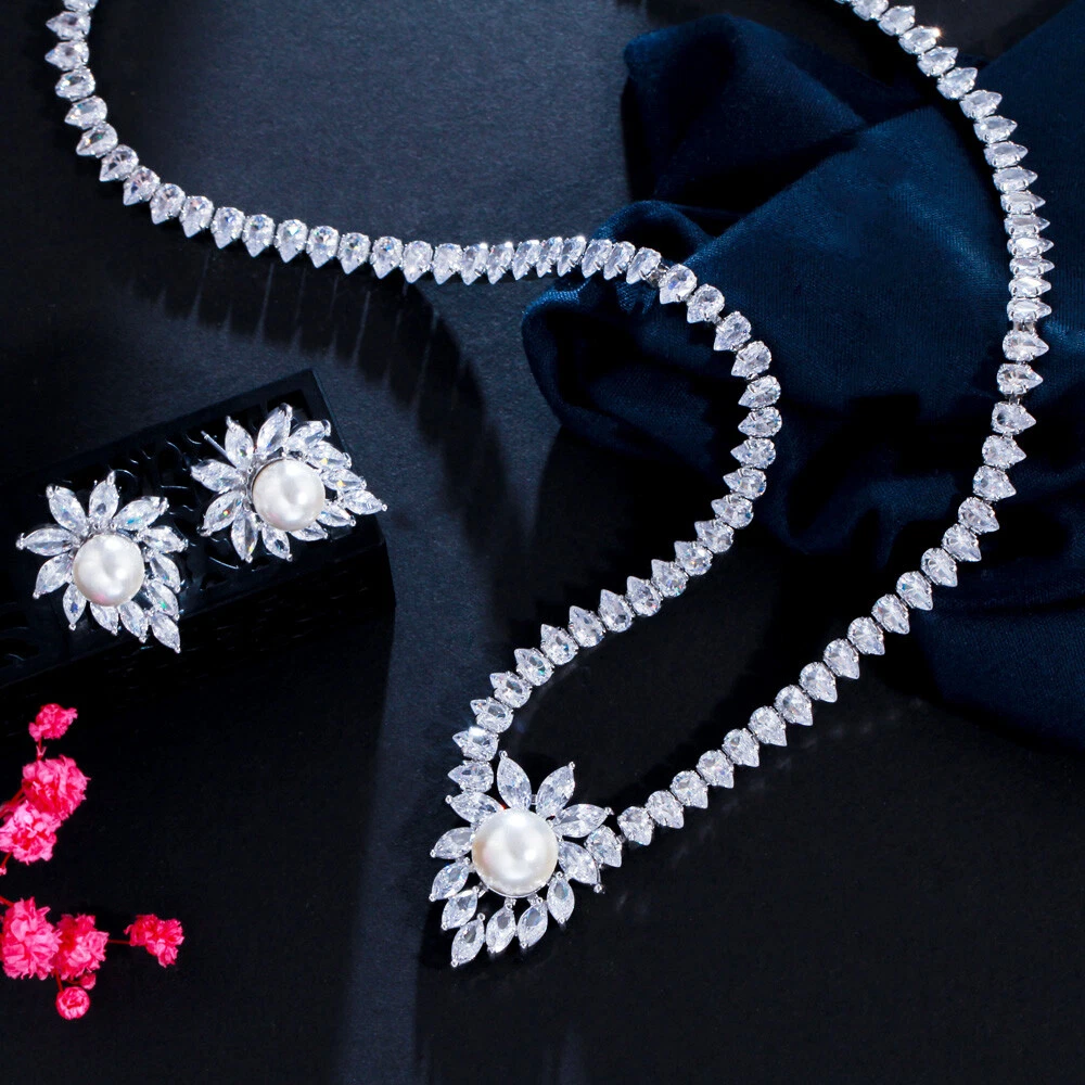 Shiny Marquise Cut CZ Bridal Wedding Pearl Earrings Necklace Costume Jewelry Set Specifications : Condition:New Necklace Length : 43 cm Earring Size :2.2 cm Material : Cubic Zirconia Features : 1. 100% Brand New and high quality. 2. Luxury and Gorgeous design, you deserve it 3. Brillant Simulated Diamond - Top Level Cubic Zirconia. Enjoy the Dazzling Sparkle from Cubic Zirconia. 4. Our Fashion Necklace and Earrings sets are perfect gift for Women , Brides , Mother , Girls . 5. Perfect for Various Occasions: Ideal for Bridal, Wedding, Prom, Pageant, Bridesmaids, Parties, Proms, Homecoming, Black Tie Formal Affairs, Holidays, Special Occasions, Birthday, Valentine's Day, Mother's Day or Anniversary Gifts. Package Includes: 1Pcs Necklace 1Pair of Earrings Payment Delivery details Terms of sales & Feedbacks About us & Contact us Our commitment Payment 1. We only ship item to your Ebay verified address . Please Make sure all address are the same 2.Please leave note in ebay when making the payment if you have any special request (colors/size). Delivery details We only send items to the registered eBay address.Items will be shipped within 2 business days from the date payment is received (not include public holiday and weekend) . As per eBay regulations, import duties, taxes, and customs charges are the buyer's responsibility. Please check with your country's customs office to determine what these additional costs may be prior to bidding or buying. Terms of sales & Feedbacks After-Sale Please contact us to request a return/replace/refund authorization .It will be best if you use ebay message to contact me. 1, Return and replacement request is available only the requests within 30 days after parcel received. 2, Returning the item as the same condition as received. Situation and solution Defectives ---Please contact us and provide a photo of the defective part. After situation confirmed,we will offer you refund/return/replacement according to the situation Not as Described ---Please contact us and provide a photo of the wrong part. After situation confirmed,we will offer you refund/return/replacement according to the situation Not Received ---Please undersatnding shipping on the way was out of our control ,because of the busy shipping season,holidays,bad weather or force majeure etc. It may be delay for days. But if it took too much time and not deliveried, Please message me, I will offer you solution for it. Feedbacks 1. If you are satisfied with our service, please leave us a + Good feedback and rate the details of the transaction (DSR) with a. . When you rate the shipping time part please take international transit into consideration.] Your recognition will make us more confident to develop business and serve you better. 2. Please contact us first if you have any problem with the items,we will solve it in time ! 3. Please do not leave Neutral or Negative Feedback before you contact us, Thanks For Your Business ! About us & Contact us Working time: Chinese time(Eastern eight zones):Monday to Friday ,9:00 am to 6:00 pm. We do not work on chinese legal holiday. Message reply: We will reply all messages within 24 hours of business time. Please contact us via ebay message, it was the best way for both you and us to solve problems. Any questions or anything you need, please feel free to contact us. Our commitment 1.Wholesale price will be offered to you if you need in bulk ! 2.About Size