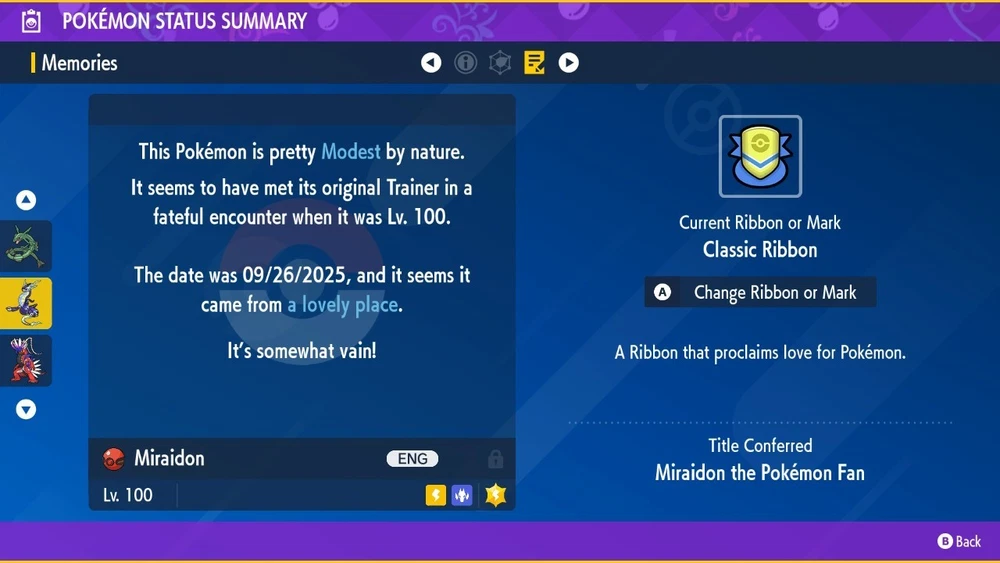Free eBay listing template designed by dewiso.com FulaCity PokeCenter For all your Pokémon needs Details You will receive it via trade on the game, NOT CODES This Pokemon you'll receive has the following details: OT: Paldea ID: 250926 Event: Mystery Gift American GameStop distribution This trade is for game: Scarlet & Violet This event is 100% legal and untouched. For further details on this event you can use Bulbapedia. If you want to see my other listings for Events in Pokémon Scarlet & Violet [click here] . If you have further questions [click here] to contact me. Handling information To trade: * You need NSO subscription to use internet to trade. * Go in-game, Press X, Select "Poké Portal". Press "L button" to connect INTERNET * Select "Link Trade", Enter the code I'll give you * Press "+" and select "Begin Searching" No shipping involved at all since this is a virtual trade. Why buy from me? Over 3000+ positive feedback with over 10.000+ sales. Fast delivery 100% legal Pokemon (!!!) safe to use anywhere. Use them in Pokemon Home, GTS, Pokemon Online Battles, Online Raids, Online Trades without issues! Disclaimer: I'm not affiliated with Nintendo, Creatures Inc, The Pokémon Company or GAMEFREAK. You are paying for the time and effort I spent breeding/obtaining the listed Pokémon.