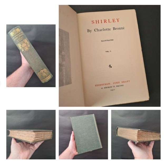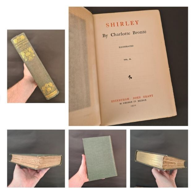 A charming decorative two volume set. Title: Shirley Author: Charlotte Brontë Publisher: John Grant Year: 1911 Binding: Hardback Approx. Size: 22cm X 16cm Condition: Overall the books are in good condition for their age, with some marks, fading and rubbing to the covers/spine. There is also some bumping to the spine ends and rounding of the corners. Internal pages are in good condition overall with some heavy foxing to the endpapers and minor page edge tears/indents in places.