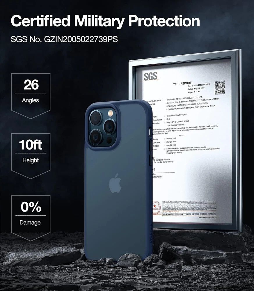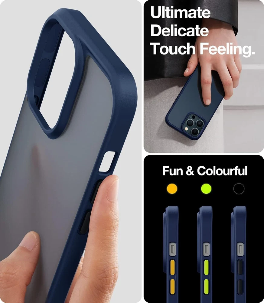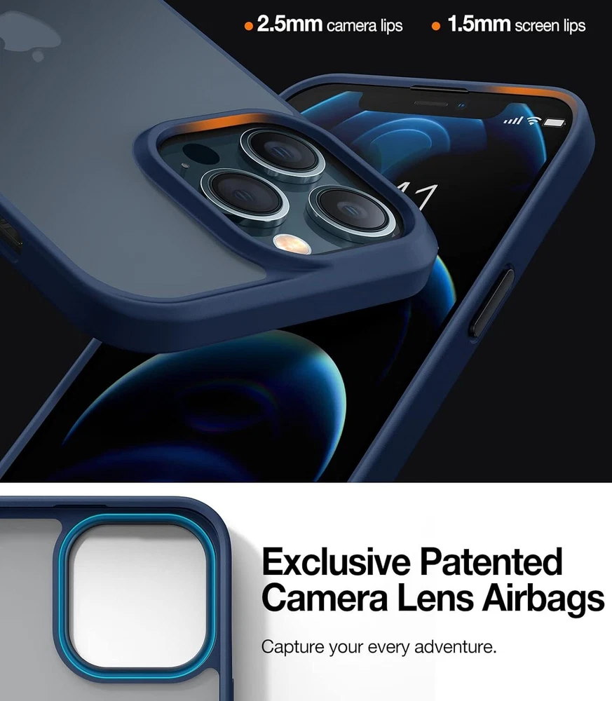 Shockproof Compatible for iPhone 12 Case for iPhone 12 Pro Case, [Military Grade Drop Tested] Translucent Matte Hard PC Back with Soft Silicone Edge Slim Protective Guardian, Blue swipe to view Previous page Next page