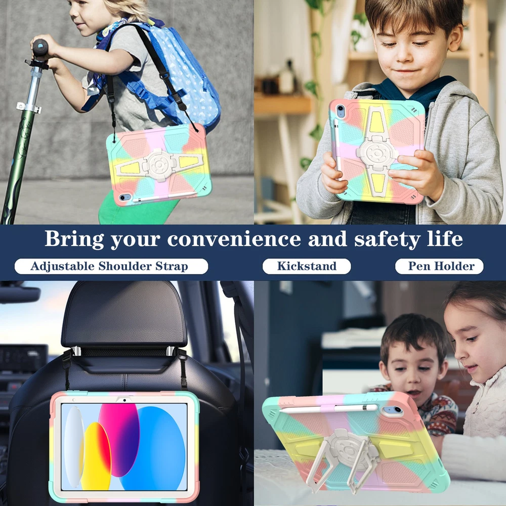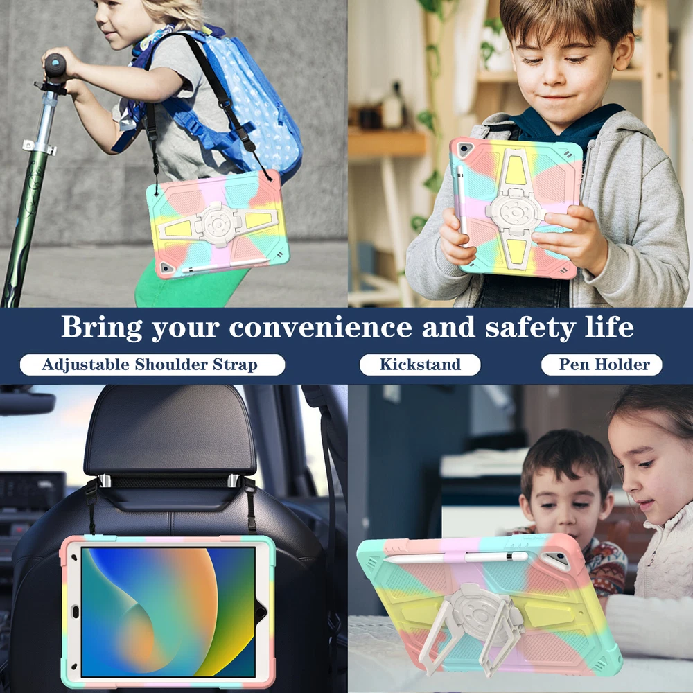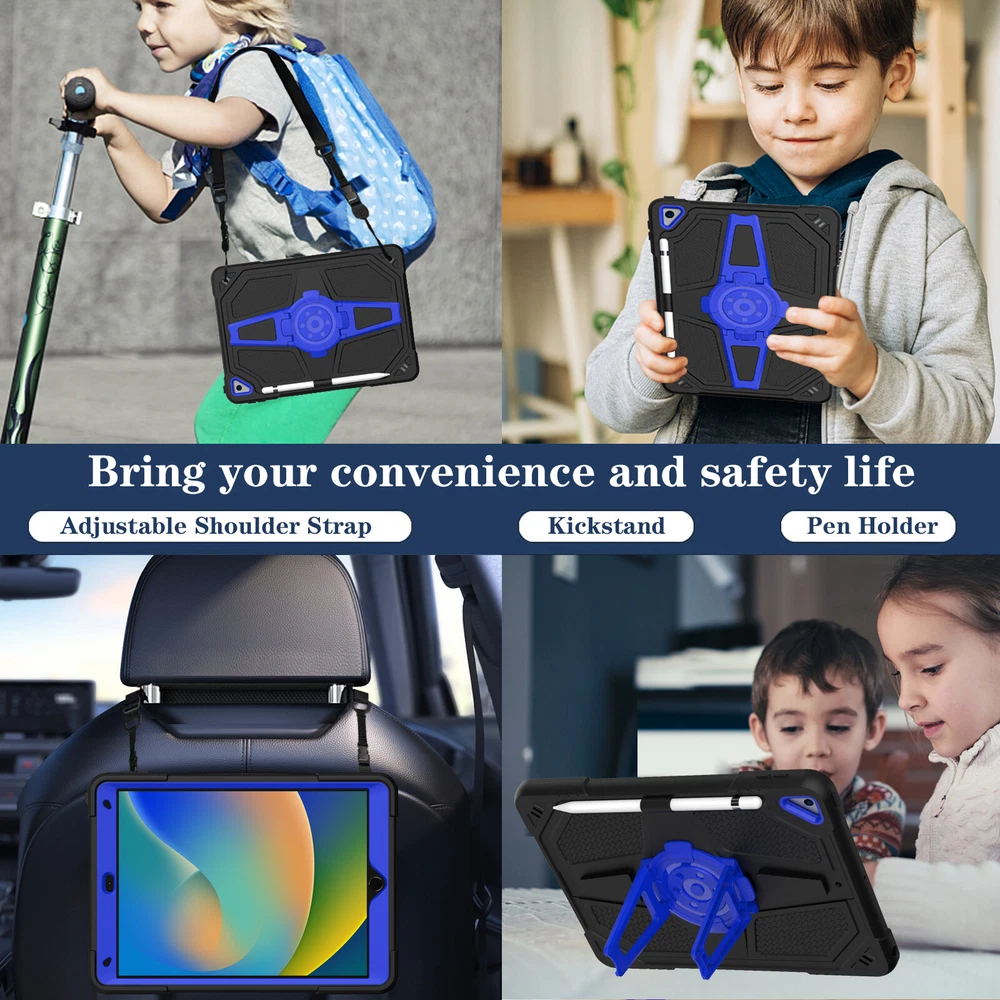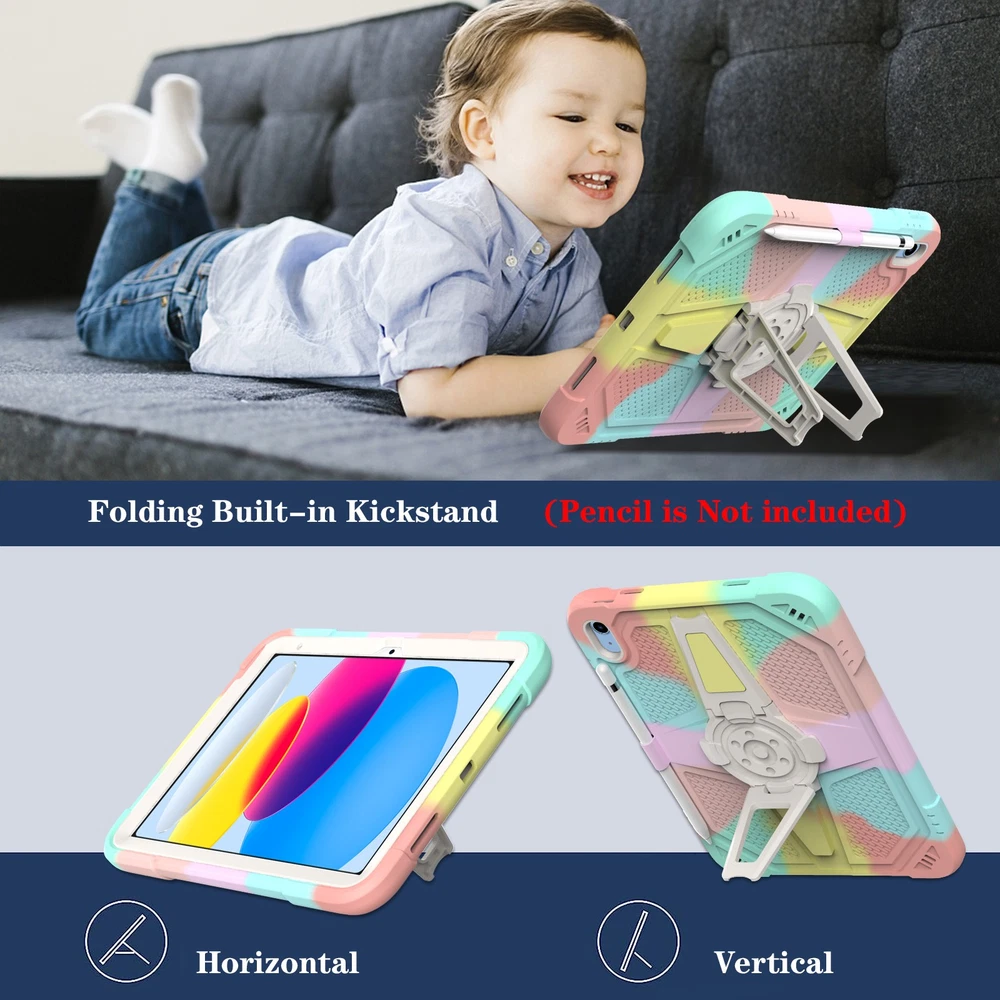 Description : -100% Brand New and High Quality. -Material: Only Premium Soft silicone rubber and hybrid hard PC + front hard PC b umper 2 in 1 design. -Double-Layer Protection: Military Grade Drop Case protect to your ipad from all angles while the kids children are having fun. Shockproof/Drop-proof/Impact resistant/Scratch-proof. -Built in Pencil Holder &Punk Stand: Cases built-in Pencil holder allows you to store and carry your Apple pencil easily.The stand design frees your hands and makes your iPad unique. Adjust the best angle to watch the video, working and typing.(APPLE Pencil is NOT included!) -Adjustable Shoulder Strap: Adjustable shoulder strap offers much more convenience for carrying your iPad when you are on a business trip or doing outdoor activities. It can be also hung on the car headrest for back-seat passengers’ entertainment.utdoor activities. -Comprehensive Protection:The double-layer material design provides more comprehensive protection for your iPad. -Foldable Stand:The case comes with a foldable stand that supports both horizontal and vertical angles, providing suitable angles for watching videos, painting, and working. 📱 Model Compatibility Check your iPad’s back for the model number: Please check back bottom of your iPad to find one of these model numbers Choose Model Name iPad Model Number Screen Size(inch ) For iPad 10th Gen (10.9" 2022) A2696/A2757/A2777 10.9 For iPad 11" (A16) 2025 A3354 / A3355 / A3356 11 For iPad 7th Gen (10.2" 2019) A2197/A2198/A2199/A2200 10.2 For iPad 8th Gen (10.2" 2020) A2430/A2429/A2428/A2270 10.2 For iPad 9th Gen (10.2" 2021) A2602/A2603/A2604/A2605 10.2 For iPad Pro11 2018 A1979/A1980/A1934/A2013 11 For iPad Pro11 2020 A2228/A2068/A2230/A2231 11 For iPad Pro11 2021 A2301/A2377/A2459/A2460 11 For iPad Pro11 2022 A2759/A2435/A2761/A2762 11 For iPad Air 4(10.9"2020) A2316/A2324/A2325/A2072 10.9 For iPad Air 5(10.9"2022) A2588/A2589/A2591 10.9 📦 Package Includes 1x Protective Case Cover 1x Adjustable Shoulder Strap (iPad, Apple Pencil, and Screen Protector NOT Included)