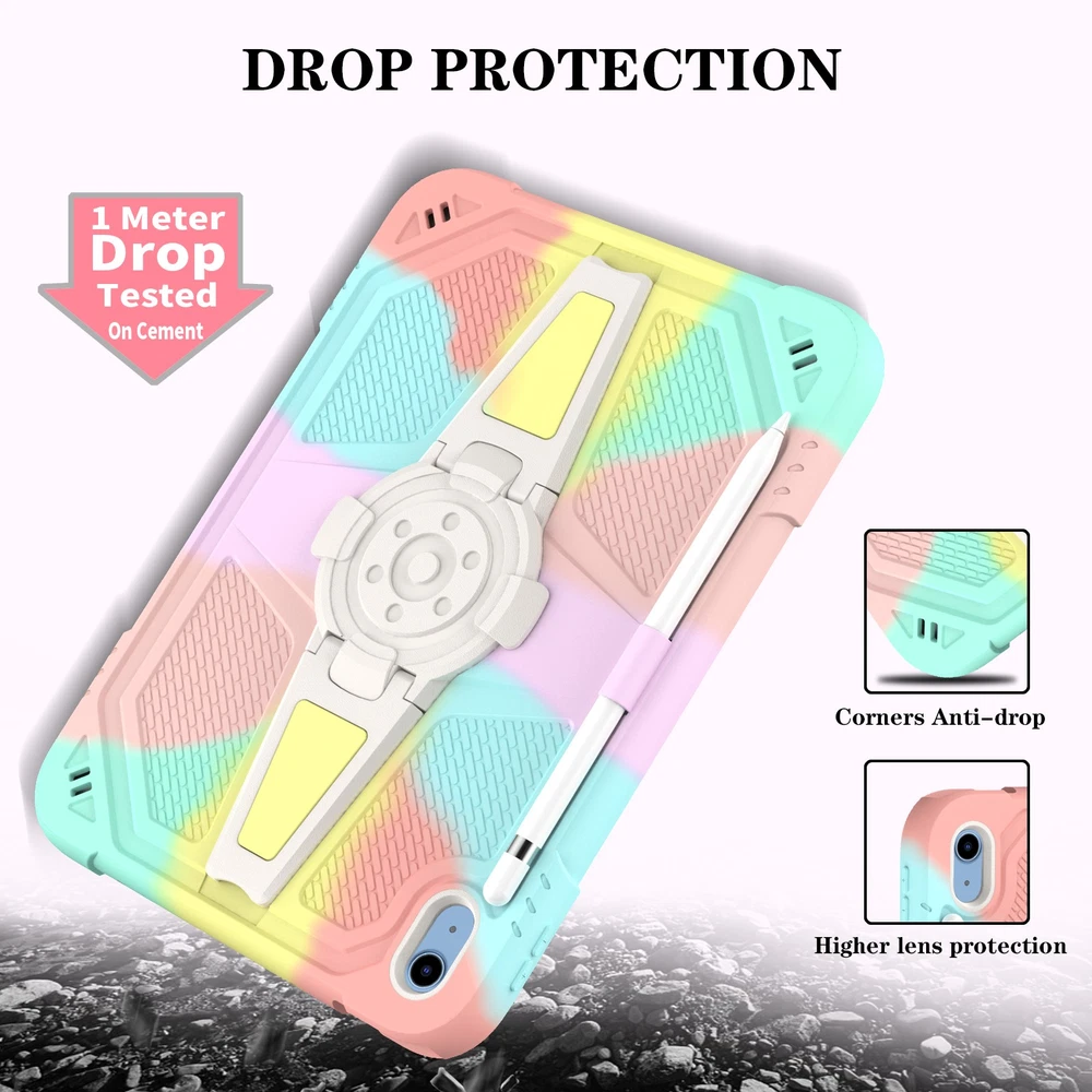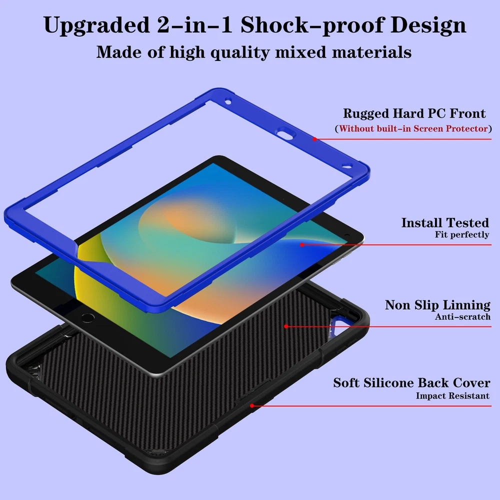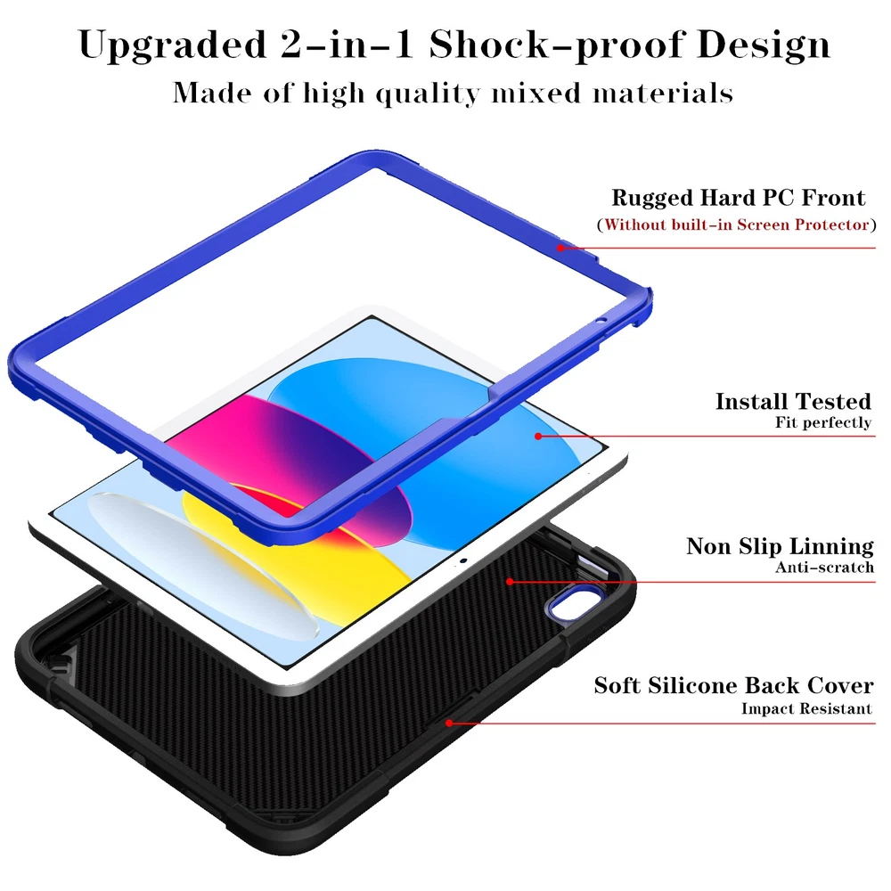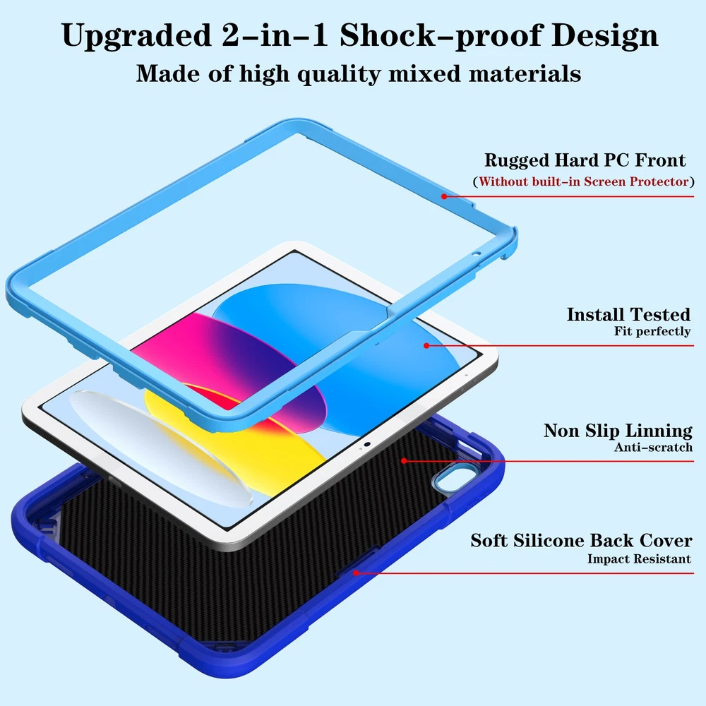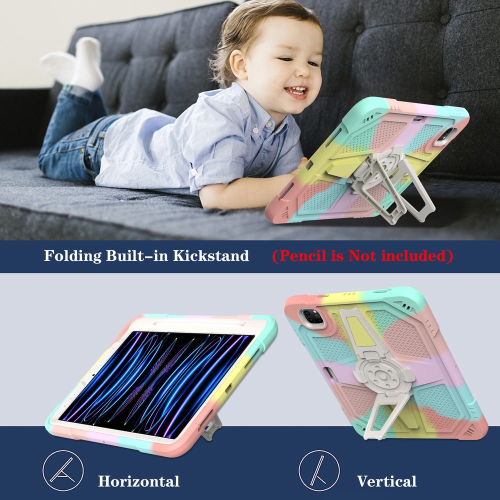Description : -100% Brand New and High Quality. -Material: Only Premium Soft silicone rubber and hybrid hard PC + front hard PC b umper 2 in 1 design. -Double-Layer Protection: Military Grade Drop Case protect to your ipad from all angles while the kids children are having fun. Shockproof/Drop-proof/Impact resistant/Scratch-proof. -Built in Pencil Holder &Punk Stand: Cases built-in Pencil holder allows you to store and carry your Apple pencil easily.The stand design frees your hands and makes your iPad unique. Adjust the best angle to watch the video, working and typing.(APPLE Pencil is NOT included!) -Adjustable Shoulder Strap: Adjustable shoulder strap offers much more convenience for carrying your iPad when you are on a business trip or doing outdoor activities. It can be also hung on the car headrest for back-seat passengers’ entertainment.utdoor activities. -Comprehensive Protection:The double-layer material design provides more comprehensive protection for your iPad. -Foldable Stand:The case comes with a foldable stand that supports both horizontal and vertical angles, providing suitable angles for watching videos, painting, and working. 📱 Model Compatibility Check your iPad’s back for the model number: Please check back bottom of your iPad to find one of these model numbers Choose Model Name iPad Model Number Screen Size(inch ) For iPad 10th Gen (10.9" 2022) A2696/A2757/A2777 10.9 For iPad 11" (A16) 2025 A3354 / A3355 / A3356 11 For iPad 7th Gen (10.2" 2019) A2197/A2198/A2199/A2200 10.2 For iPad 8th Gen (10.2" 2020) A2430/A2429/A2428/A2270 10.2 For iPad 9th Gen (10.2" 2021) A2602/A2603/A2604/A2605 10.2 For iPad Pro11 2018 A1979/A1980/A1934/A2013 11 For iPad Pro11 2020 A2228/A2068/A2230/A2231 11 For iPad Pro11 2021 A2301/A2377/A2459/A2460 11 For iPad Pro11 2022 A2759/A2435/A2761/A2762 11 For iPad Air 4(10.9"2020) A2316/A2324/A2325/A2072 10.9 For iPad Air 5(10.9"2022) A2588/A2589/A2591 10.9 📦 Package Includes 1x Protective Case Cover 1x Adjustable Shoulder Strap (iPad, Apple Pencil, and Screen Protector NOT Included)