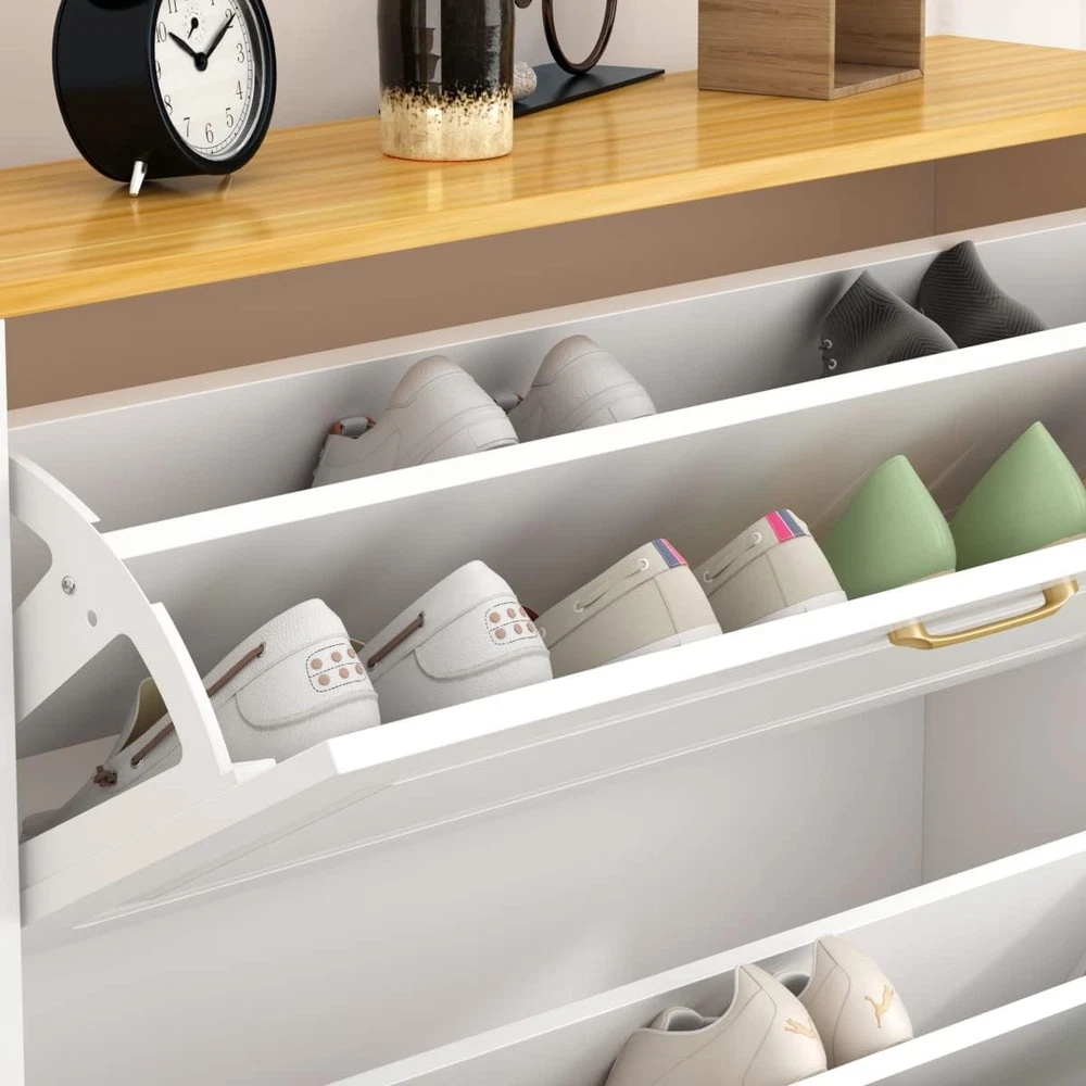 Product Description Name: Hitow Shoe Cabinet Made of safety and solid MDF, sturdy and durable. Made of friendly paint-free material, which is convenient for daily care. Embossed dust-proof cabinet door, stylish and generous, easy to match with home decoration style. It can be placed at the door, corridor, living room, entrance. Easy to assemble. On Aug 12, 2025 at 02:00:55 PDT, seller added the following information: