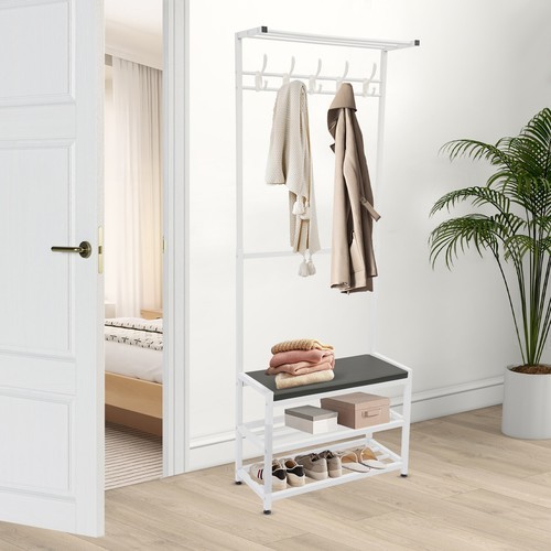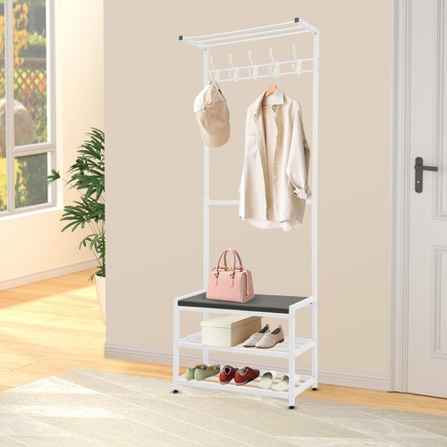 Specifications Color: White Style: Modern Process: Painting Material: Iron, PU, Sponge, Wood Board, Plastic Shape: Rectangular Assembly Required: Yes Mount Type: Freestanding Number of Hooks: 5 Number of Shoes Accommodated: About 6 Pairs Overall Load-bearing Capacity: About 100kg/220.46lbs Product Size: 60*25.5*160cm/23.62*10.04*62.99in Package Size: 91*26*8cm/ 35.83*10.24*3.15in Gross Weight: 4.5kg/9.92lbs Net Weight: 3.75kg/8.27lbs Package Included 1* Coat Shoe Rack with Stool Welcome to zhuzhubang!Have a nice day! Description Are you still struggling with chaotic shoes, coats, and hats, this coat shoe rack with stool is for you. The premium materials and painting process ensure high durability and easy cleaning. The pleasing and generous appearance can match your home decoration. Strong load-bearing capacity is a truly exceptional find. All in all, it is a very practical and functional piece of furniture that can provide storage space to organize clothes and shoes, while adding a beautiful and comfortable atmosphere to your home environment. Details Raised Bottom: It is conducive to moisture resistance and facilitates cleaning. Soft Cushion: The soft cushion with built-in sponges allows you to comfortably sit and change your shoes, which is very convenient. Plastic Foot Pads: They can stabilize the product better and make it less likely to slide. Smooth Edge: The rounded and smooth edges not only add to the aesthetics of the product but also improve the safety of use. Specifications Color: White Style: Modern Process: Painting Material: Iron, PU, Sponge, Wood Board, Plastic Shape: Rectangular Assembly Required: Yes Mount Type: Freestanding Number of Hooks: 5 Number of Shoes Accommodated: About 6 Pairs Overall Load-bearing Capacity: About 100kg/220.46lbs Product Size: 60*25.5*160cm/23.62*10.04*62.99in Package Size: 91*26*8cm/ 35.83*10.24*3.15in Gross Weight: 4.5kg/9.92lbs Net Weight: 3.75kg/8.27lbs Package Included 1* Coat Shoe Rack with Stool All Accessories for Assembly Notes Please do not hang heavy clothing or other overweight items on the top bar or hooks. Please do not exceed its weight limit. Please note that children are not allowed to climb or play on the product for safety reasons. Please be careful during assembly and disassembly. Please allow the slight color difference caused by the shooting light and 1-3cm error due to manual measurement, and make sure you do not mind before you order. Build to Last: It is mainly made of high-quality iron with a painting process, which is less prone to rust, wear, and deform, and has a long service life. Strong Load-bearing Capacity: The high-quality material and strong connection between parts make this product hold about 220.46 lbs, so you can use it with confidence. Highly Practical: The top tier can be used for shoeboxes and other infrequently used items, 5 hooks can be used to hang commonly used clothes, hats, bags, etc.(not included), the bottom 2-tier shoe rack with a stool can be used for easy access to and change of shoes. Space Saving: With a small footprint (23.62*10.04 inches) and a vertical design, it's suitable for small rooms without taking up much space. Stylish Style: The simple look, elegant white color and minimalist lines make the product stylish and elegant, which can fit well with your existing furniture and add sophistication to your room. Easy to Install: A simple construction and complete accessories help you achieve a quick installation, and you just need to make sure all parts are properly nested. Easy to Clean: Thanks to its smooth surface and simple structure, you can easily clean it with a rag(not included). Ideal Gift: With a beautiful appearance and practical performance, it is a great surprise for your wife, mother, daughter, friend or loved one. Payment Delivery details Terms of sales About us Contact us Payment We accept ebay payment 。 Fees such as import duties, taxes are not included in the item price or shipping costs. These charges are the buyer's responsibility. Delivery details Shipping: 2-9 working days to: USA Terms of sales We maintain high standards of excellence and strive for hundred percent customer satisfaction. Feedback is very important to us. We hope that you contact us immediately before you give neutral or negative feedback, so that we can address your concerns. It is impossible to address issues if we do not know about them! About us Your satis faction is our ultimate goal. We work hard to earn your trust and future business. Our certified technicians have tested each item before shipping. The unit comes with 1 year limited warranty on all manufacturing defects. a) If you receive a defective item, you may return it or ask for a discount. Please contact us within 14 days after you receive the package. b) What you returned must be intact and in its original packaging as re? u. Customer is responsible for shipping costs of the returned item. c) We will cover the cost of shipping back t with the shipping rate indicated in the registration page. We will send you a new unit or refund the full payment you paid. Thank you. Contact us Business Hour Business Hour: Monday To Friday: 8:30 AM to 5:00 PM (Beijing China time) Due to time zones, our reply to your questions may not be immediately. But within above working time, we will reply your email within 24 hours. If it's non-workdays, please kindly be patient and wait till Monday. Please contact us with ebay message. Please feel free to contact us if you have any questions. Monday To Friday: 8:30 AM to 5:00 PM (Beijing China time) Due to time zones, our reply to your questions may not be immediately. But within above working time, we will reply your email within 24 hours. If it's non-workdays, please kindly be patient and wait till Monday. Please contact us with ebay message. Please feel free to contact us if you have any questions.