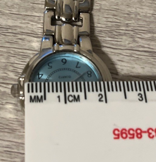 This Geneva women's silver watch features a light blue face, quartz movement, and a stainless steel case. The watch has a two-piece metal strap with a buckle closure, and it is designed for casual style. It has a round shape with Arabic numerals on the indices, and the case size is 20mm. The watch is not vintage, and it does not come with papers, service records, or the original box. This stylish timepiece is perfect for everyday wear and adds a touch of elegance to any outfit. ***See photos for additional details. The watch is fully functional even has a fresh battery. The bracelet clasp needs some adjustment. See photos for additional details. Buyer pays for shipping. Sold as is. Will entertain serious offers.***