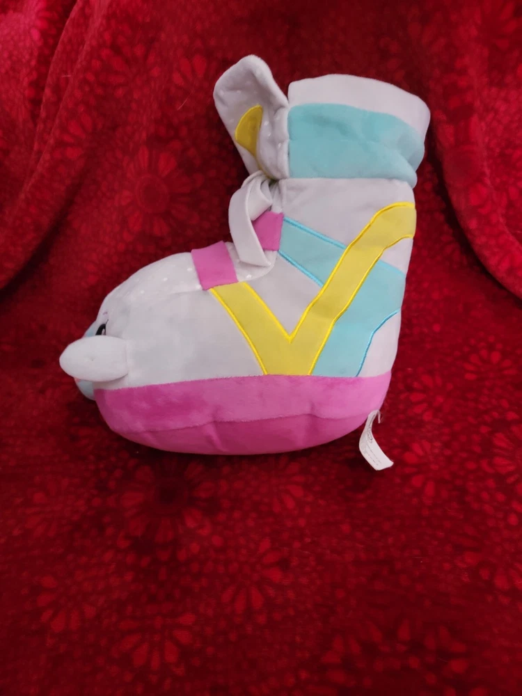 Pet friendly home. Normal wear and tear. The Shopkins Sneaky Wedge Sneaker Plush Stuffed Animal Toy is a 6 inch plush figure from the Shopkins Shoppies line by Moose Enterprise. This toy is based on the character Sneaky Wedge, a food-themed character from the Shopkins TV show. It is suitable for both boys and girls and is part of the Shopkins franchise, featuring cute and colorful designs.