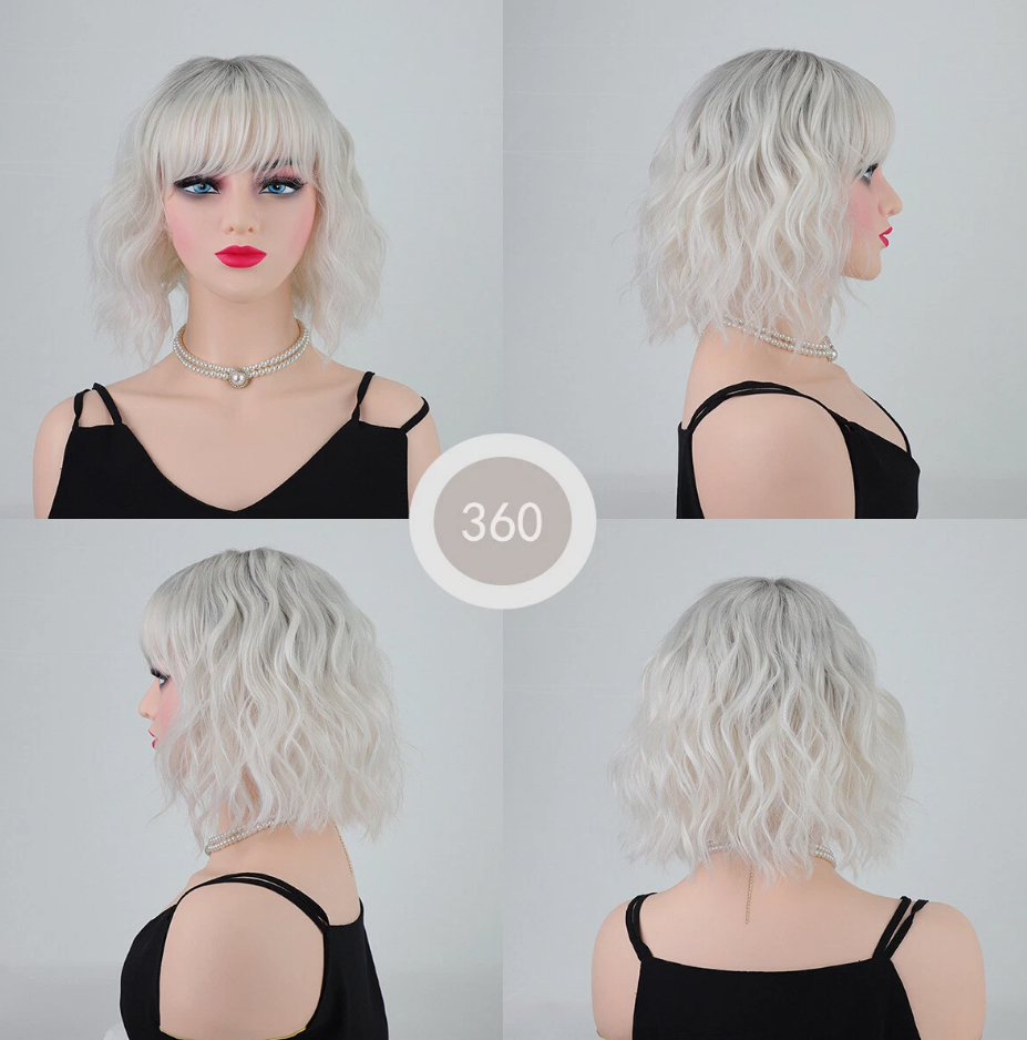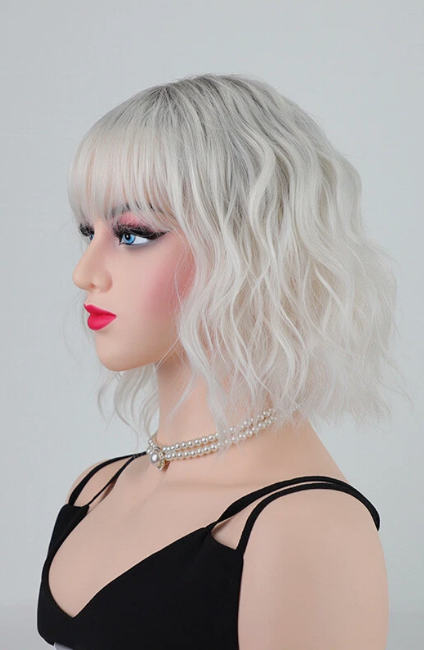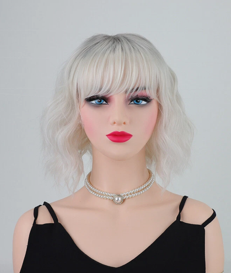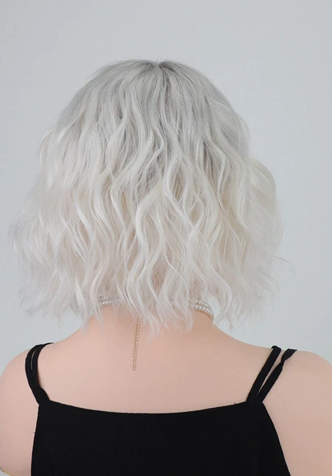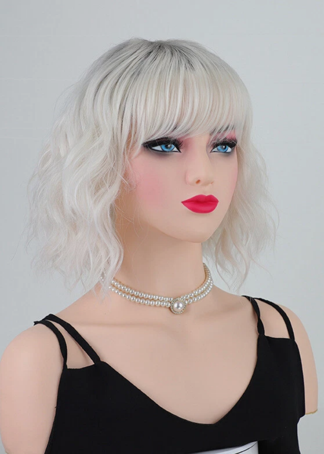 Shor Wavy Rooted Pale Blonde Hair Synthetic Wigs Women Soft Natural Soft