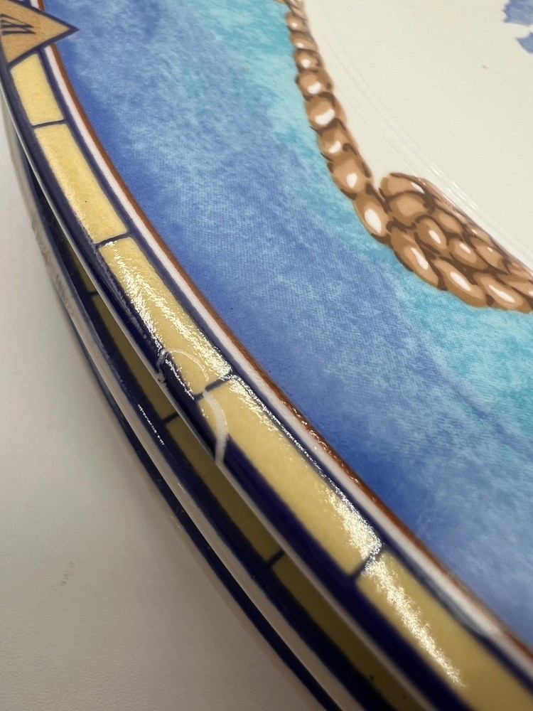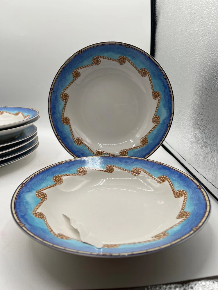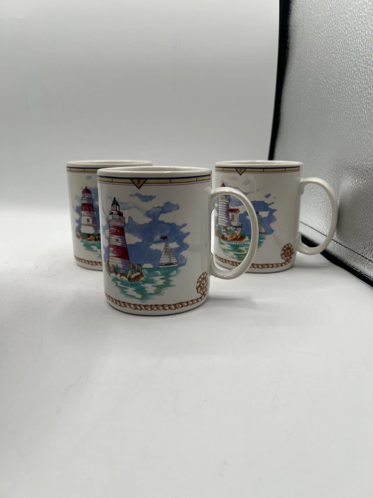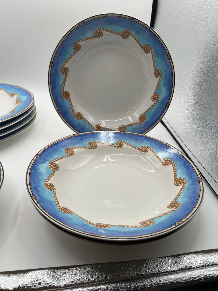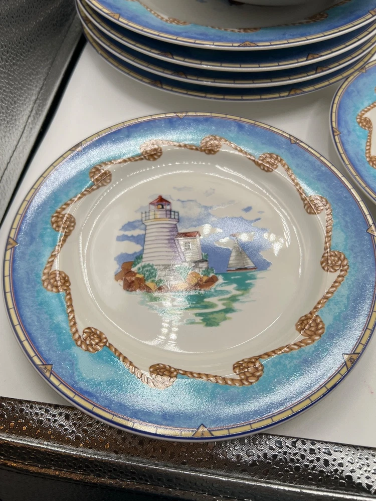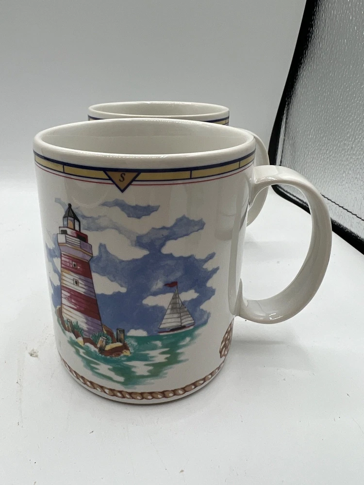 The Shore Lights Omnibus by Fitz & Floyd Stoneware service set of 4 includes dinner, salad plates and 4 soup bowls, and 3 coffee mugs all featuring a nautical theme in a multi-color design. Made of ceramic and porcelain, these original pieces are crafted with pottery in Indonesia, making them a unique and decorative addition to any collection. Perfect for serving up your favorite meals in style, this set is sure to be a conversation starter at any table setting.