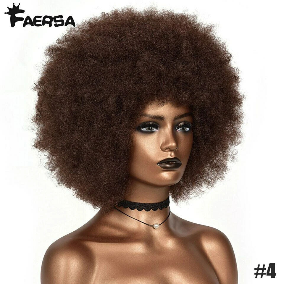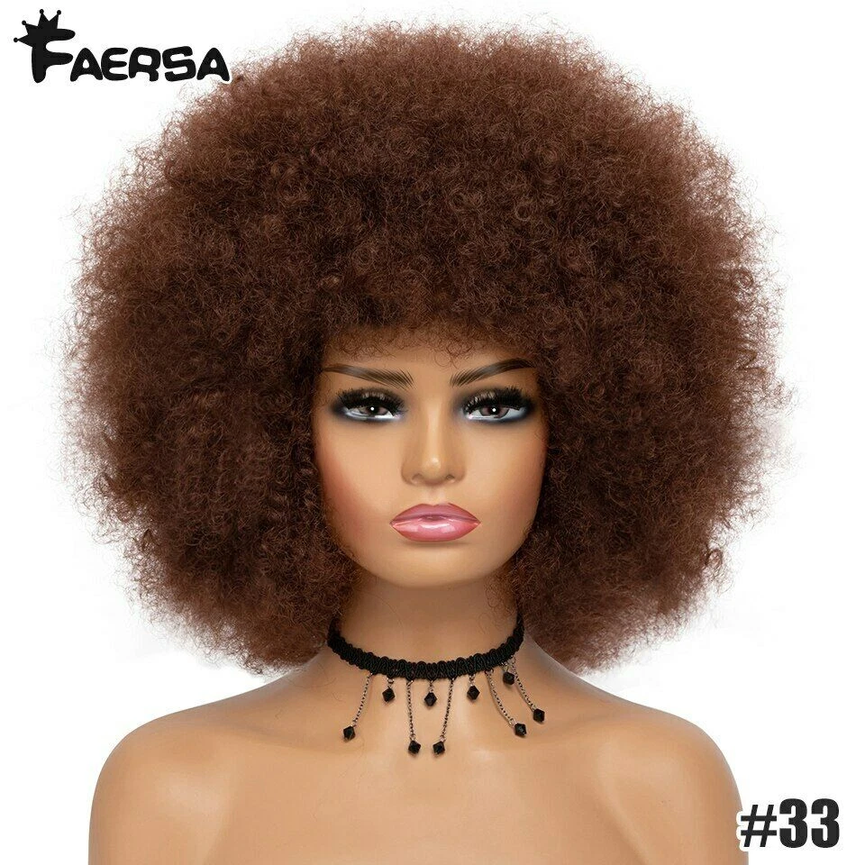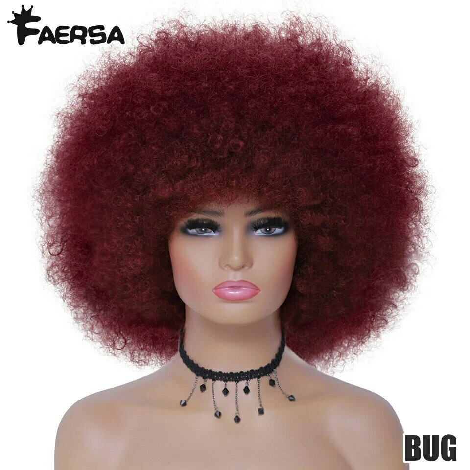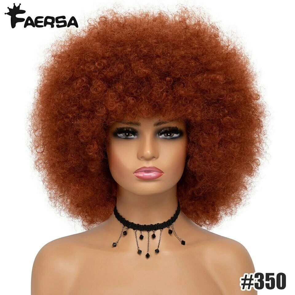 Short Hair Afro Kinky Curly Synthetic Wigs With Bangs Ombre Glueless Cosplay Wig