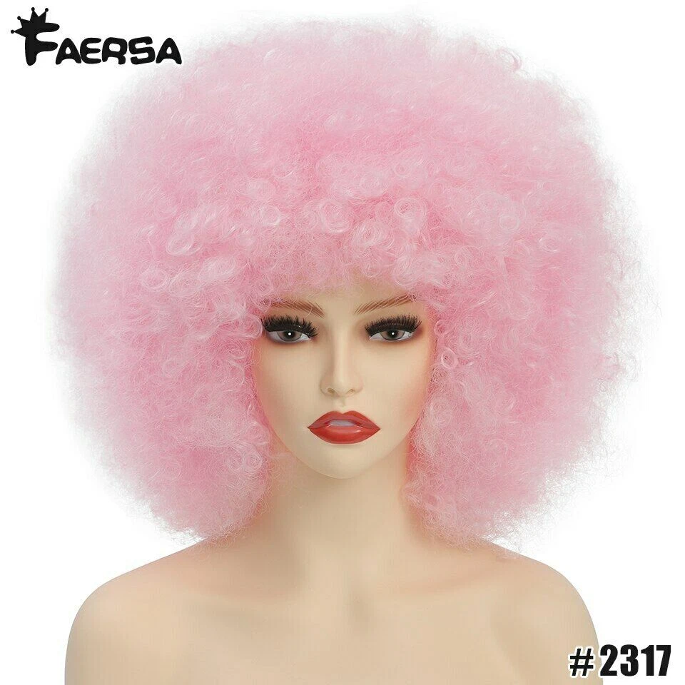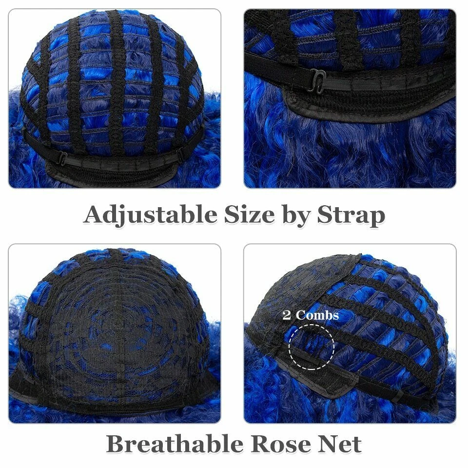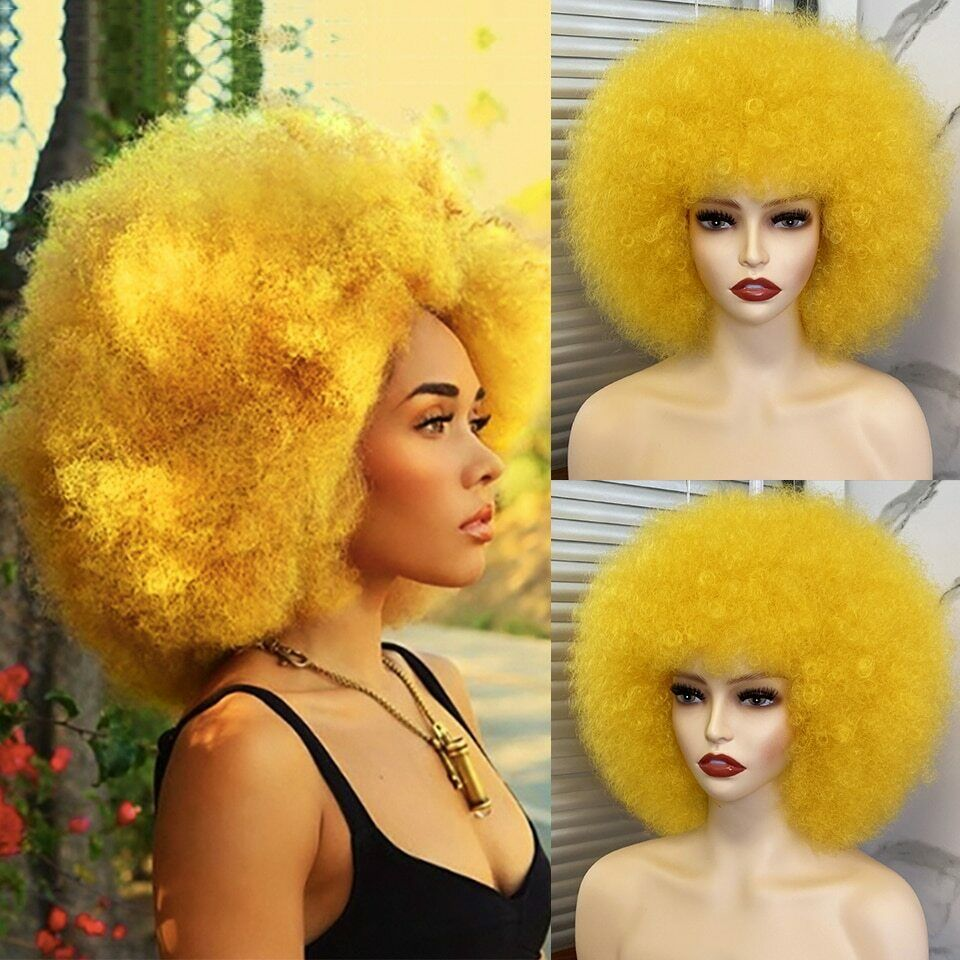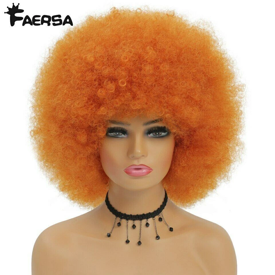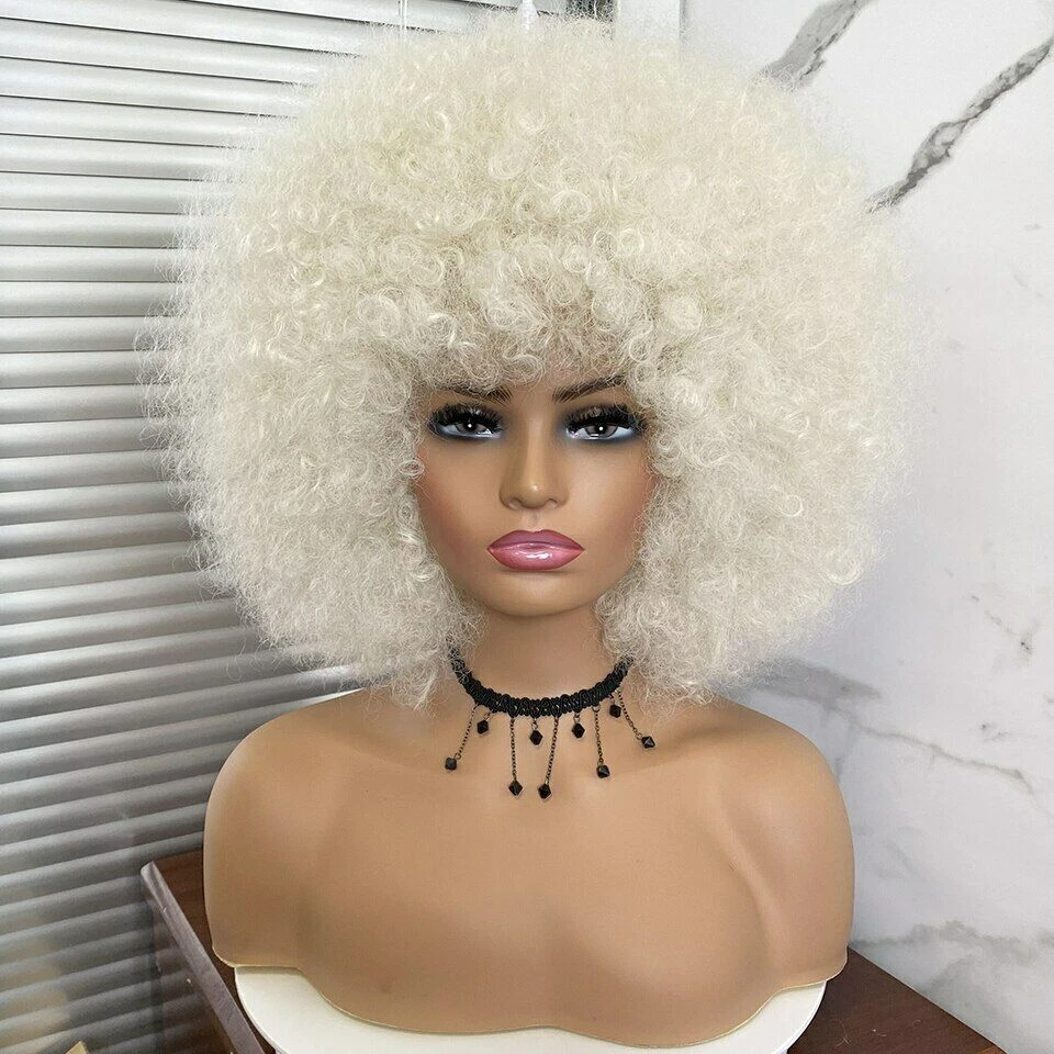 Short Hair Afro Kinky Curly Synthetic Wigs With Bangs Ombre Glueless Cosplay Wig