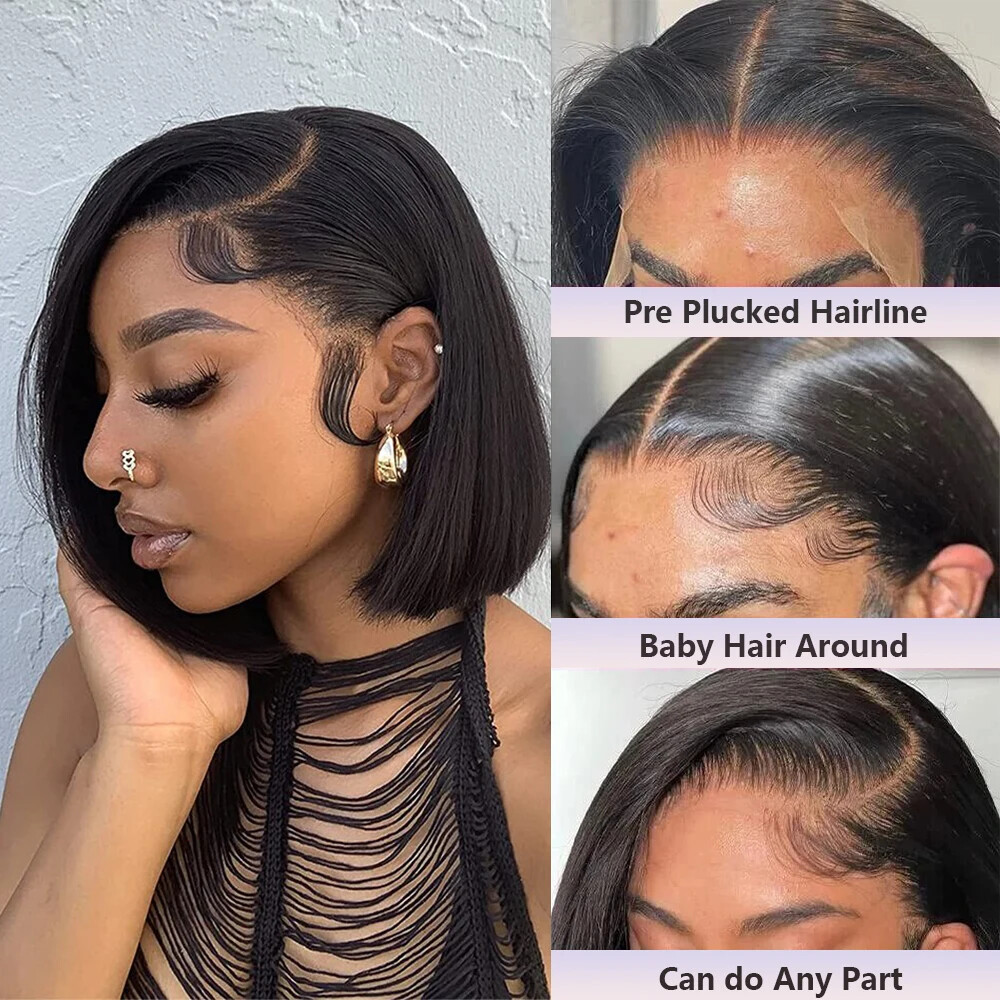 $ 59.99Glueless Short Bob Wig Straight Lace Front Human Hair Pre Plucked