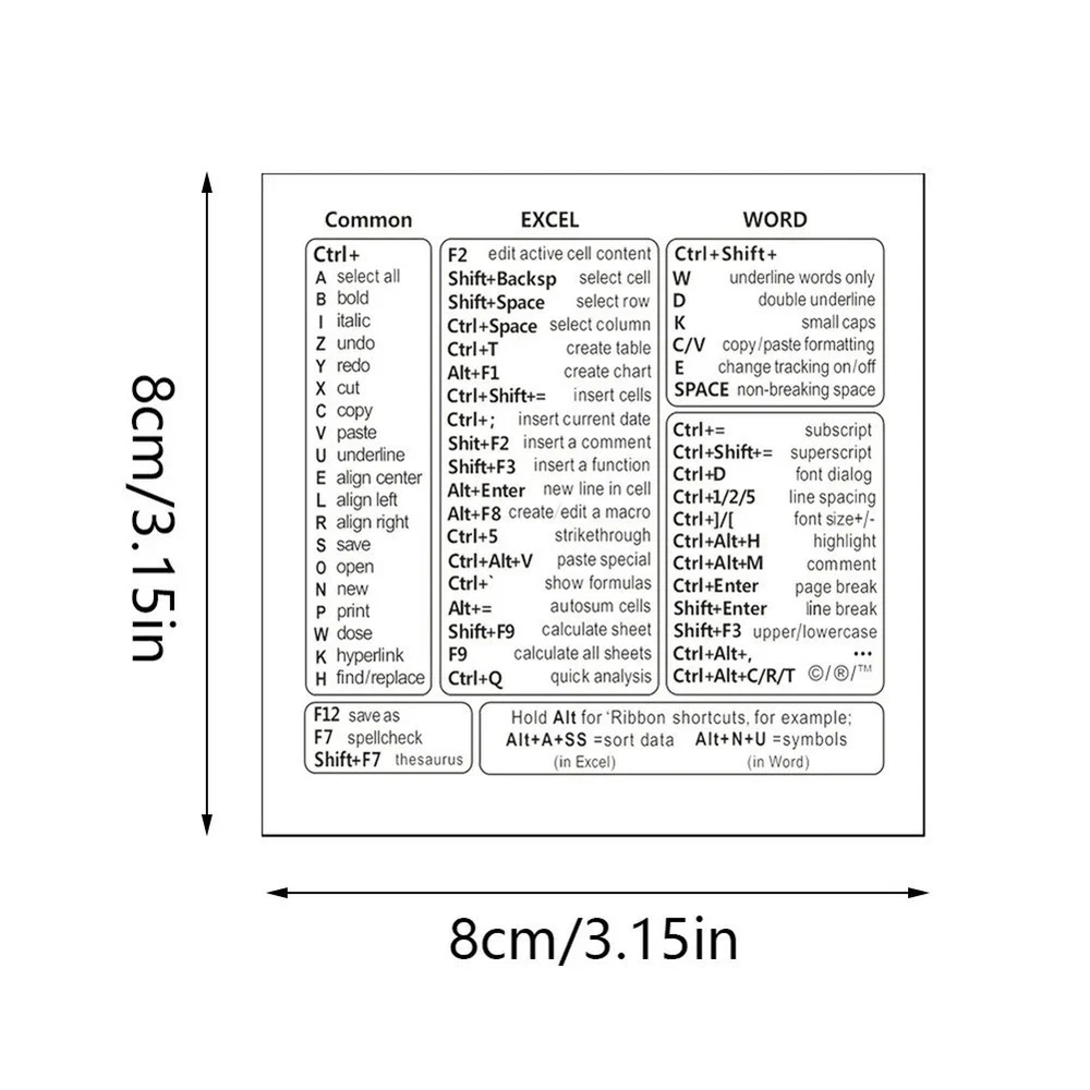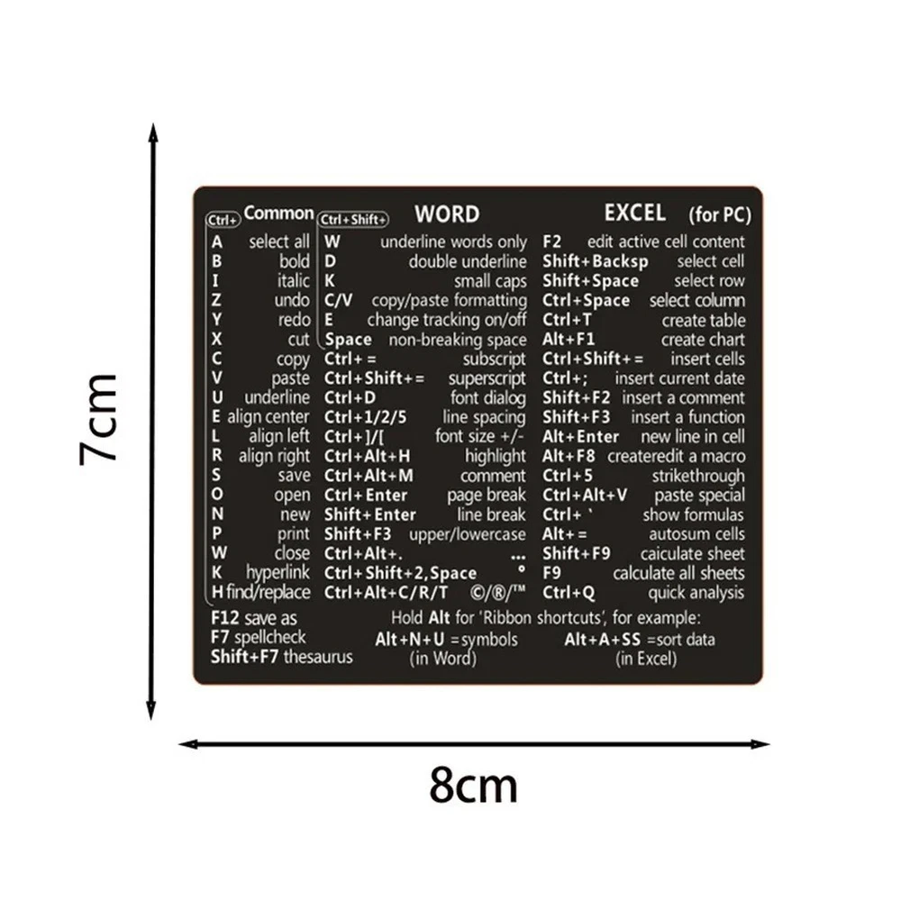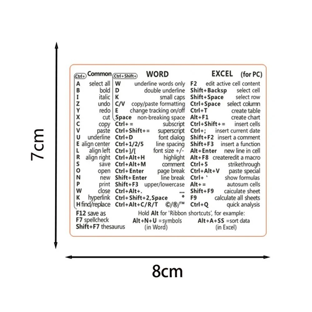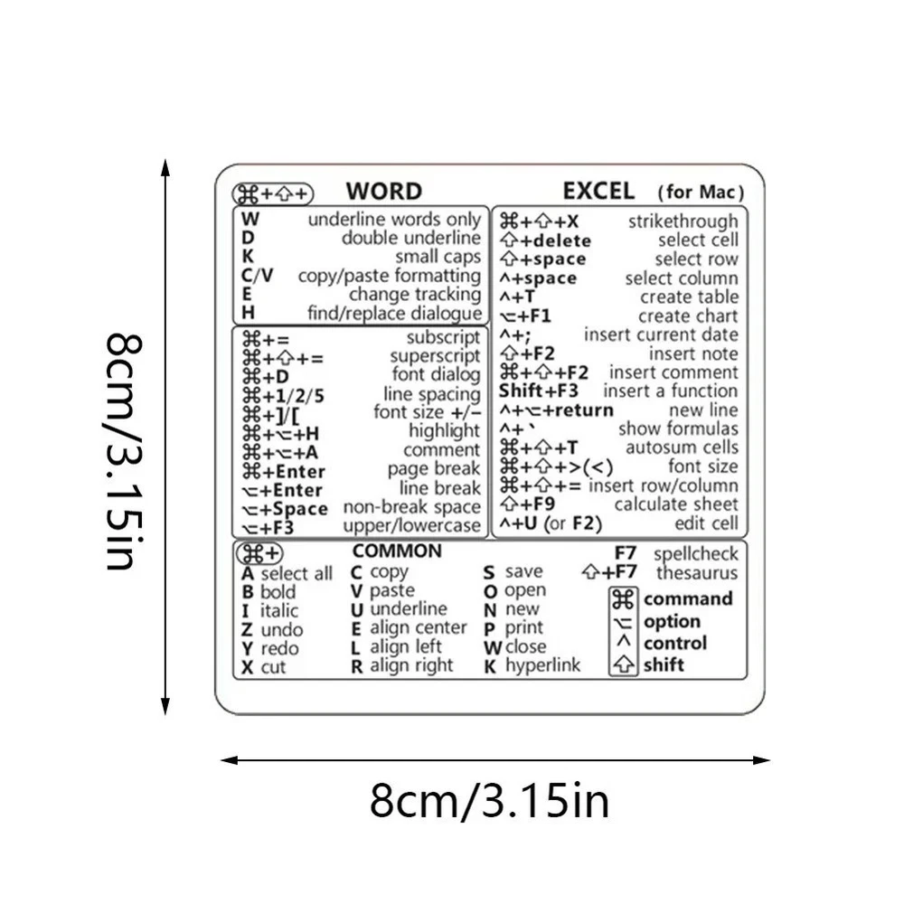 Shortcuts Sticker for Mac OS System 2025 – New Shortcut Key Sticker for 13–16" MacBook Pro/Air & Windows Word Excel Decal Upgrade your laptop productivity with this Shortcuts Sticker for Mac OS System 2025 , designed to give instant access to essential Mac keyboard commands. This updated shortcut key decal is compatible with 13–16" MacBook Pro, MacBook Air 13" , and also includes reference shortcuts for Windows Word and Excel . Perfect for students, professionals, and anyone wanting to work faster and smarter. ✅ Product Highlights: 2025 Updated Mac OS Shortcuts: Features the latest Mac OS system keyboard commands for faster navigation, multitasking, and workflow efficiency. Fits 13–16" MacBook Pro & Air: Designed to align perfectly with most MacBook layouts, including Pro 13/14/16 and Air 13. Word & Excel Shortcut Guide: Includes essential formatting, editing, and navigation shortcuts for Microsoft Word and Excel—ideal for office work and studying. Easy Application & Removal: Made with high-quality adhesive that sticks securely without leaving residue. Ultra-Thin & Durable: Slim, comfortable surface that doesn’t interfere with typing or the MacBook’s keyboard backlighting. Improve Productivity Instantly: Perfect for beginners learning Mac OS or advanced users wanting faster command access. Portable Quick-Reference Tool: Great for travel, study sessions, office work, and remote work environments. 🛠 Specifications: Type: Shortcut key sticker / keyboard decal Compatibility: MacBook Pro 13–16", MacBook Air 13", Word & Excel shortcut users Material: Thin, durable vinyl decal Features: Mac OS 2025 shortcuts, Word/Excel commands Use Case: Productivity, study aid, office work, laptop enhancement, gift item ⌨️ Boost your typing efficiency and master Mac OS & Office tools with this all-in-one Shortcut Sticker—perfect for students, professionals, and power users!