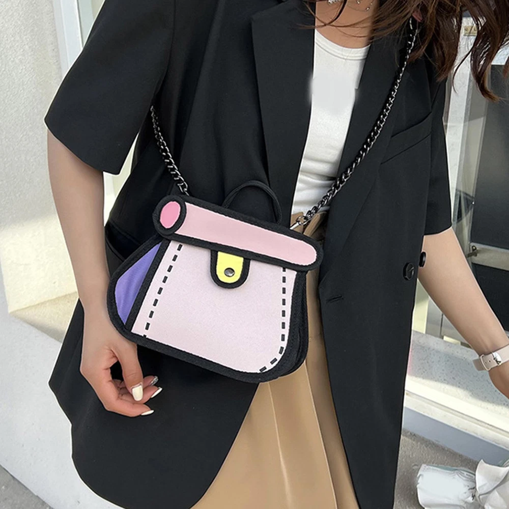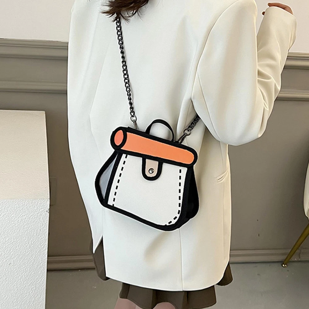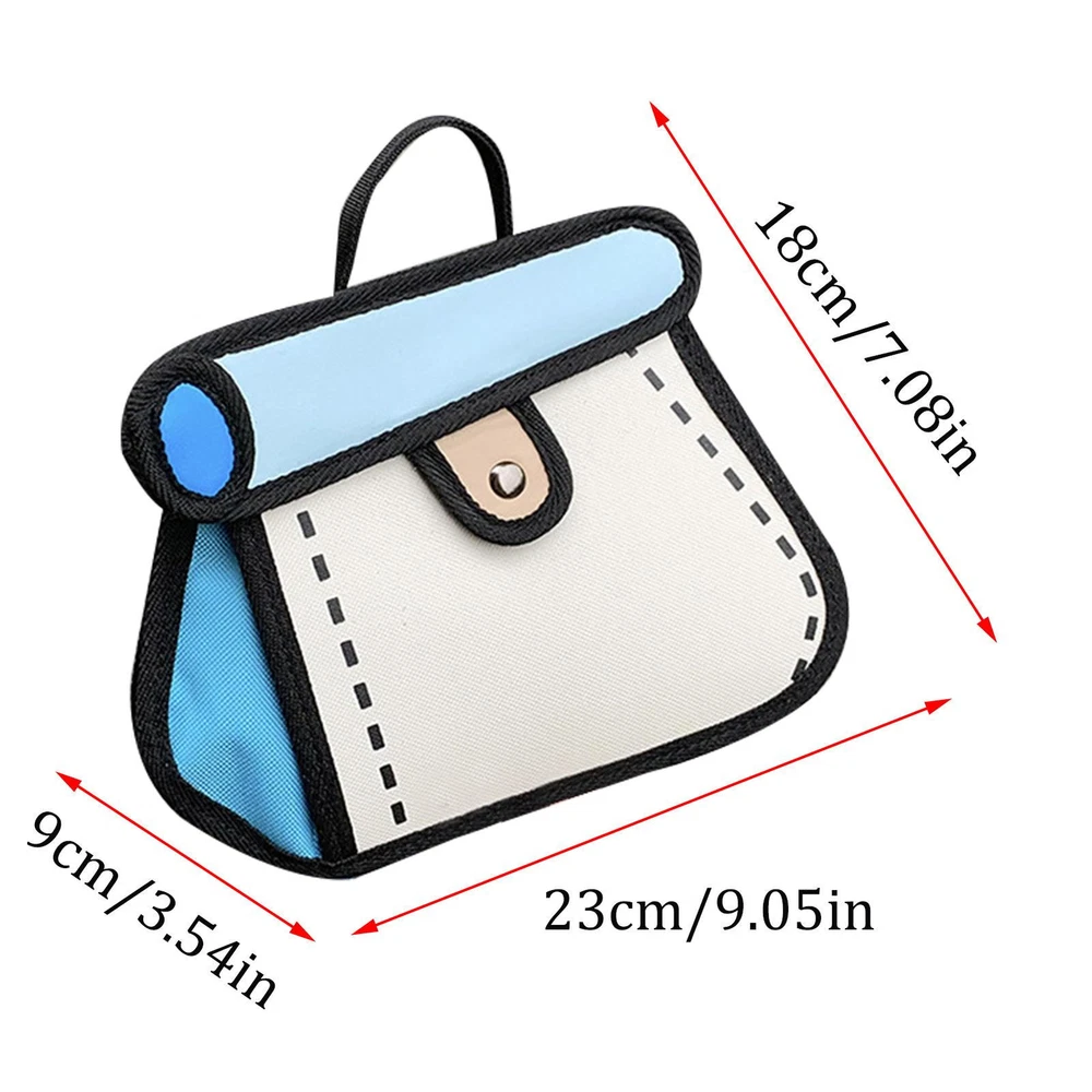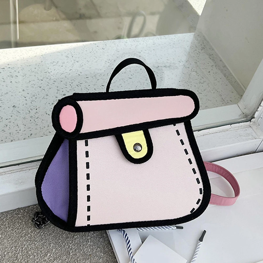 Bullet Points: Fun and Fashionable : Pack of 2D comic style shapes and colors will complement your clothes, making your life full of fun. These bags have a unique design that will improve your happiness and boost your confidence. Convenient and Organized: The 2D drawing bag provides a perfect organization for your tools. Made of waterproof canvas fabric that ensures the safety of your materials under any weather conditions. Functionality: Keep your essentials organized with this 2D drawing bag that can accommodate your cosmetic, business cards, keys, bank cards, and cell phone. It's a versatile and multifunctional accessory suitable for travel, work, or daily use. Beautiful Present: 2D Drawing Bag. This bag lets you show your style by drawing on the front panel with the pens that are provided. This bag is a fun and stylish gift for any occasion, such as Halloween, birthday, Valentine's Day, New Year, and Christmas. Vast Application: Whether you are on a business trip, at the beach, traveling, or just having a daily use, this 2D drawing bag can suit your needs. It can be easily transformed into different shapes and styles to match any outfit and occasion. This women's tote bag is perfect for daily use! Its comfortable shoulder strap makes carrying your essentials a breeze. With space for your bank cards and other accessories, this bag will complement your clothes for any occasion. it also makes a great gift for someone special. Specification: Product name: 2D cartoon handbags Material: waterproof canvas Weight: about 270g Size: (approx.)18*23*9cm/7.09*9.06*3.54 inches Shoulder strap: not adjustable Packing List: 1pc * 2D drawing bag