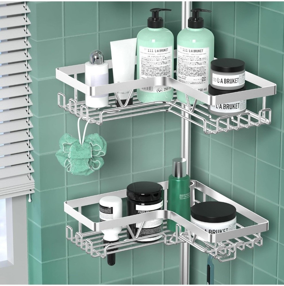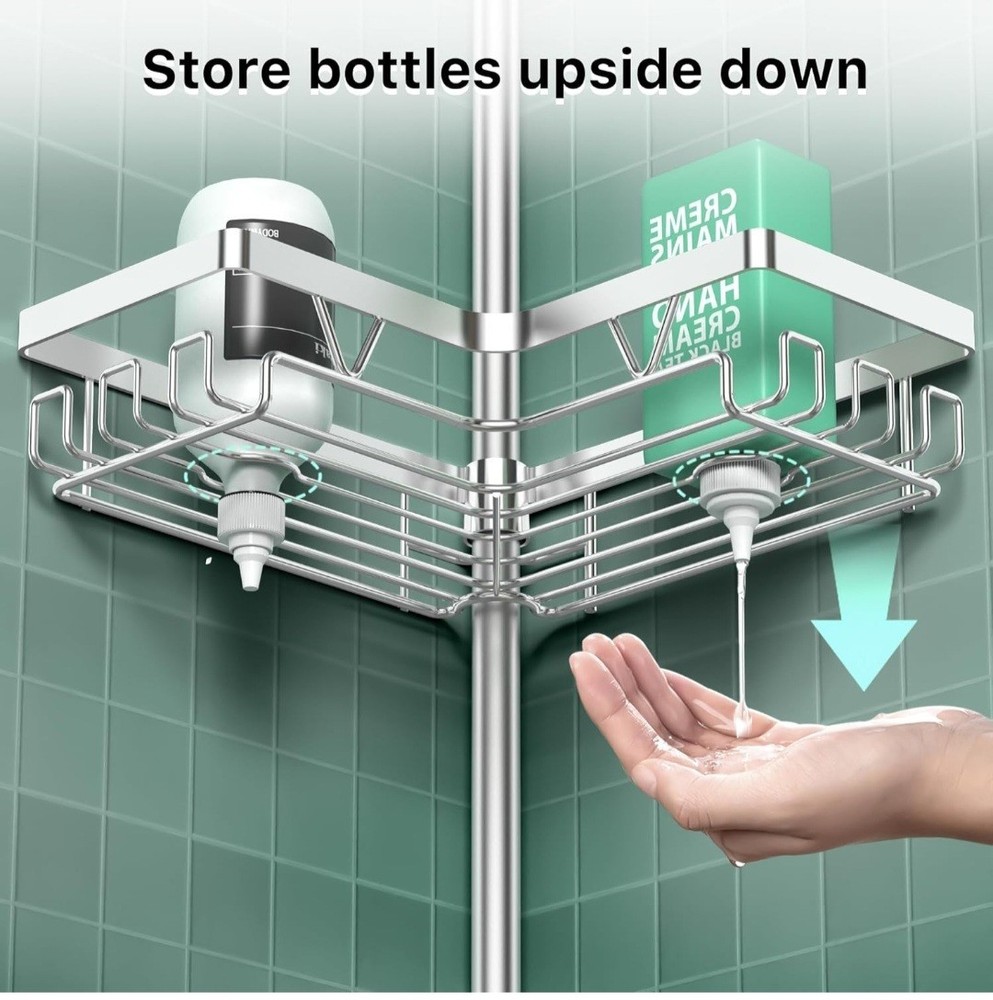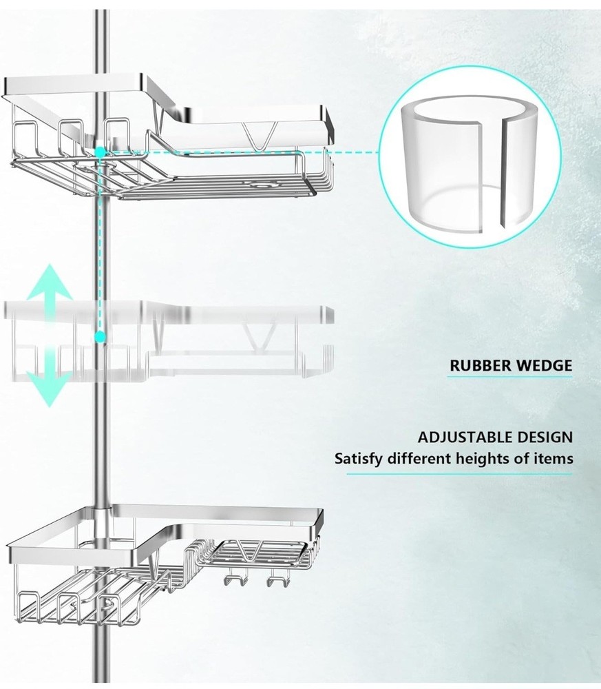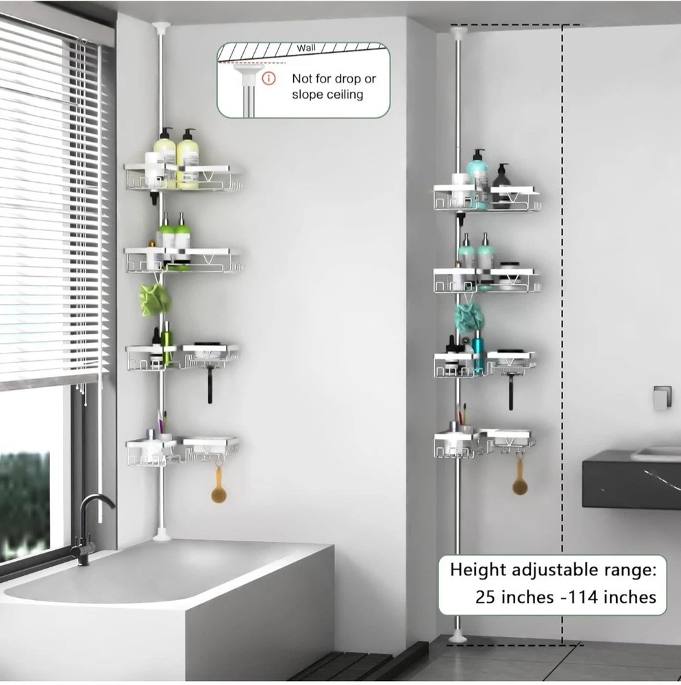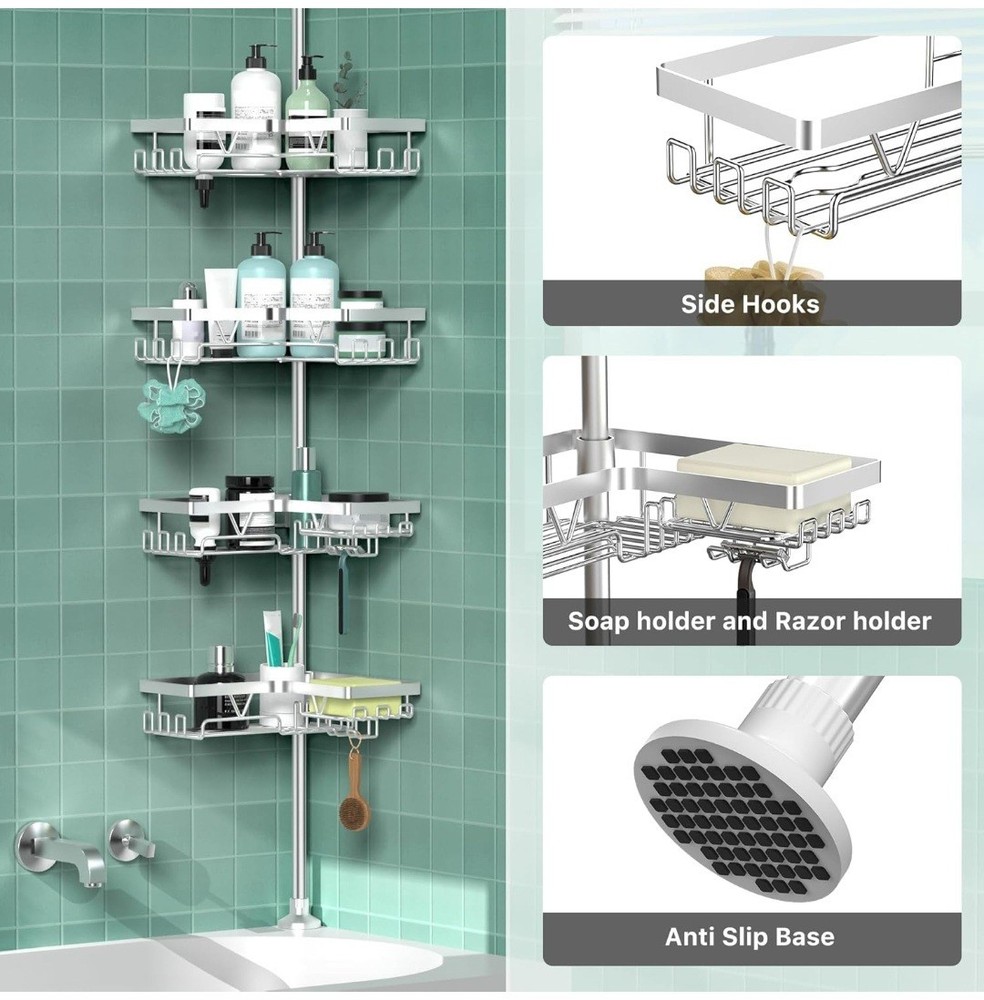 Shower Caddy Tension Pole - Corner Shower Shelves with Soap Holder Bathroom Shower Organizer for Tub (Stainless Steel, Silver, Floor to Ceiling 25-114.2 inch) #17.28.26
