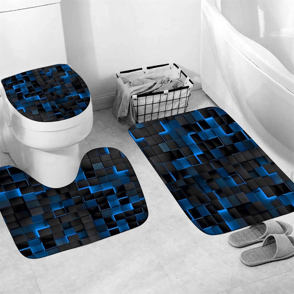Shower Curtain Set Blue 3D Cubes - Bathroom Sets