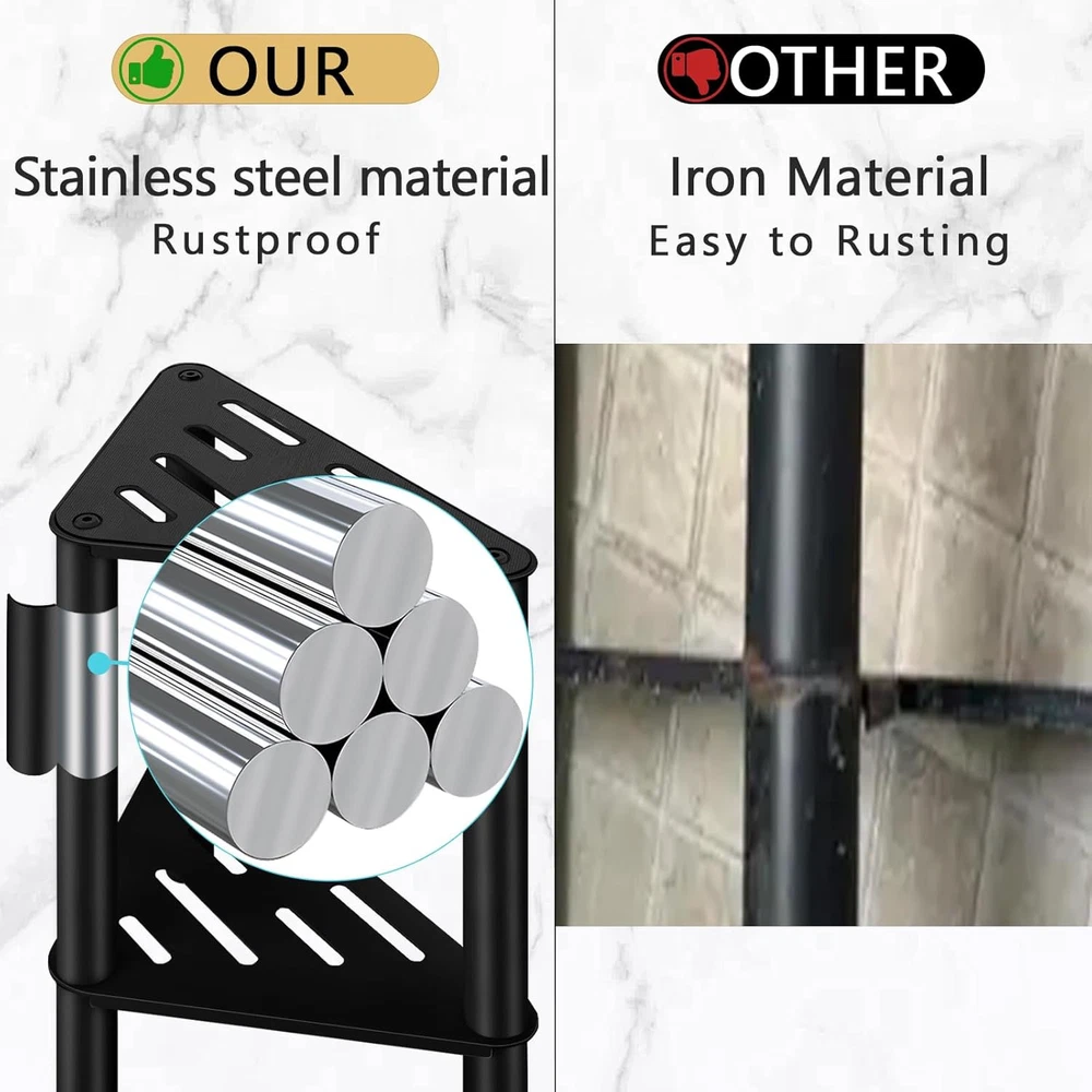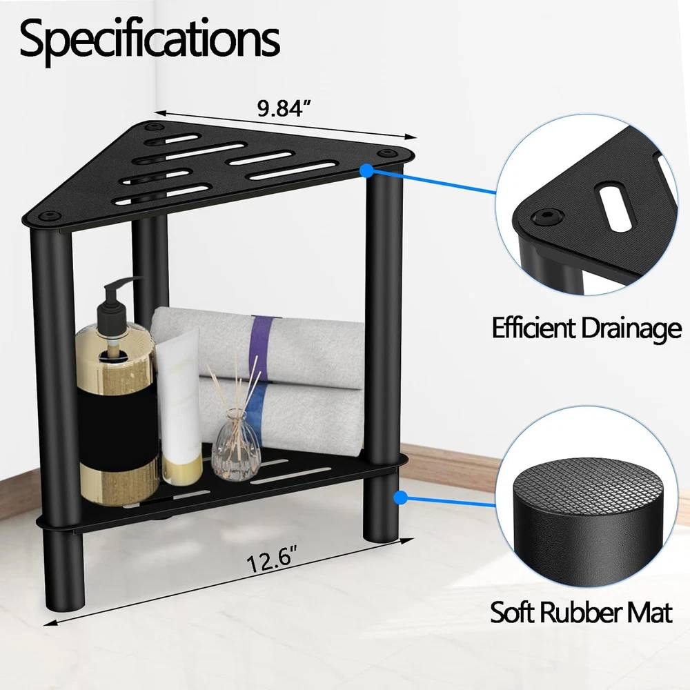 Shower Foot Rest 15 in - 15'' H - Stainless Steel, Black Product Details Product Dimensions: 13.38"D x 8.66"W x 1.96"H Color: Black Brand: VOTZAAQ Size: 15'' H - Stainless Steel Style: Modern Furniture Finish: Stainless Steel Seat Height: 15 Inches Leg Style: Sled Seat Width: 13 Inches Product Care Instructions: Wipe with Dry Cloth Assembly Required: Yes Number of Pieces: 1 Item Weight: 2.29 pounds Manufacturer: VOTZAAQ Fabric Type: Stainless Steel Batteries required: No Frame MaterialSeat Material Type: Stainless SteelStainless Steel ShapeMaximum Weight Recommendation: Triangular250 Pounds Stainless Steel RUST-RESISTANT DESIGN: Our VOTZAAQ corner shower stool is crafted from high-quality stainless steel, preventing moisture, rust, and rot. With dimensions of 15Hx13Lx8.66W in, this shower foot rest is perfect for small shower spaces. Its sturdy construction ensures long-lasting use, making it an ideal shower stool for inside shower setups and a reliable shower step for shaving legs, nail polish, razors CONVENIENT EXTRA STORAGE: This stainless steel shower bench, features a 2-tier design, providing extra storage shelf for your bathroom essentials. Use it as a to store toiletries, towels, and more, keeping your shower organized . The triangle design allows it to fit neatly into any corner, maximizing your shower space and functionality SAFE AND ANTI-SLIP FOOT REST: The small corner shower stool features an anti-slip rubber pad on its surface and adopts a partially hollow design, providing a better touch sensation. Whether you're using it as a shower foot rest or a shaving stool for inside shower, it's a great leg grooming tool. Each leg of the stool is also equipped with anti-slip pads to make the product more stable and prevent slipping. The corner stool can be assembled in just 2-3 minutes without any additional tools MULTI-SCENARIO USABILITY: This versatile waterproof shower corner stool is designed for multiple scenarios. Use it as a shower bench, a shower stool for shaving legs, or a general spa bathroom bench. You can also turn it into a side table, bookshelf or plant stand, and with endless uses both indoors and outdoors, you'll love the versatility and convenience of this stool PURCHASE GUARANTE: The shower stool is specifically designed to serve as a shower shaving foot rest. Its optimal 15 in height and sturdy build make it easy and comfortable to shave legs to save your back. Any issues of the shower step stool, please contact us! Thanks for shopping VOTZAAQ