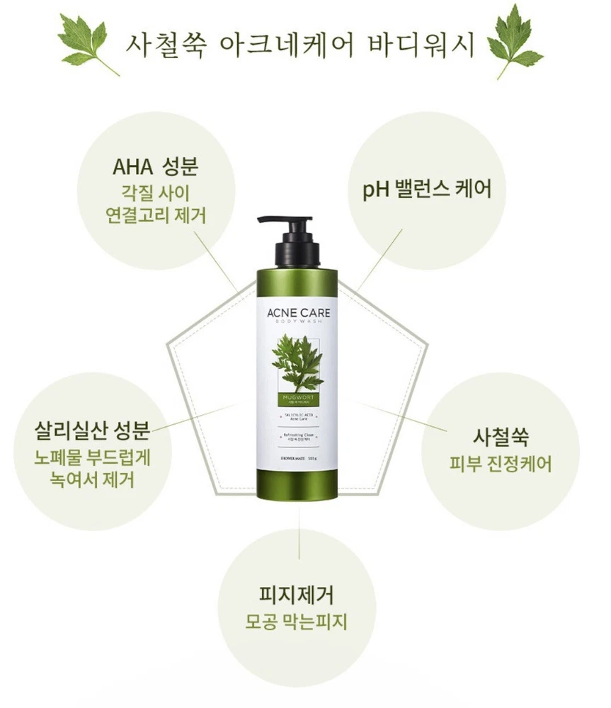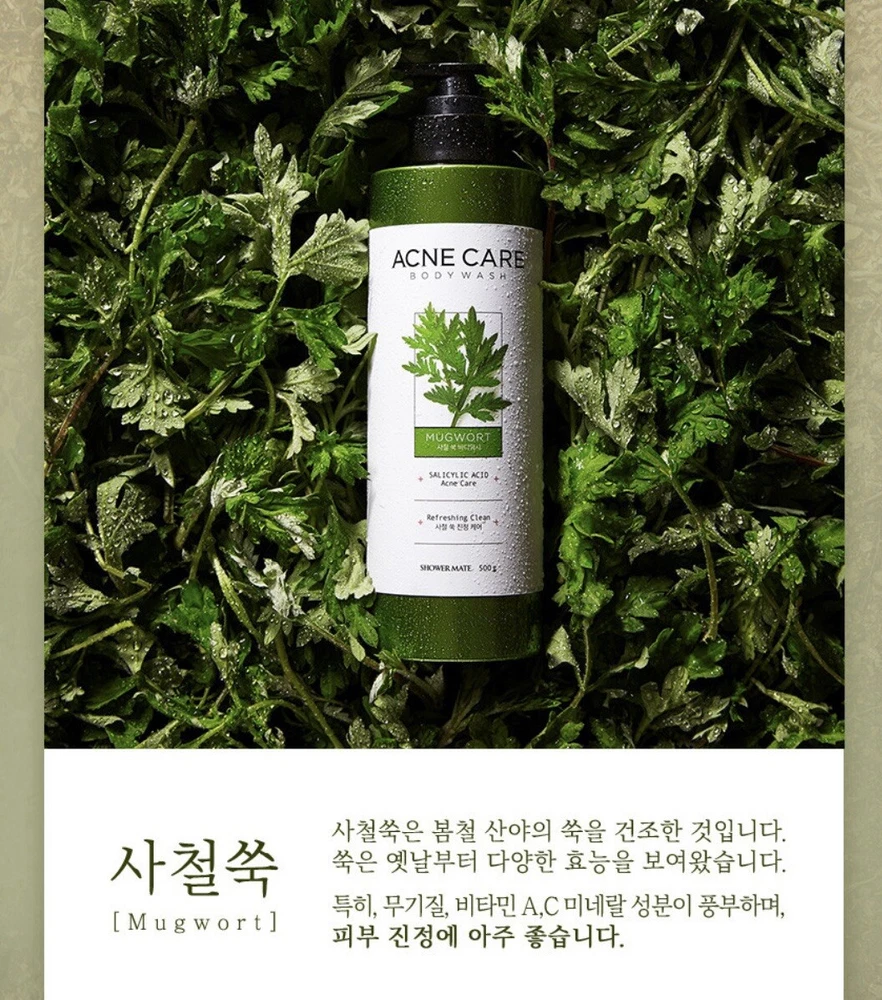 Shower Mate Acne Care Mugwort Body Wash 500ml Shower Gel Woman Man.
