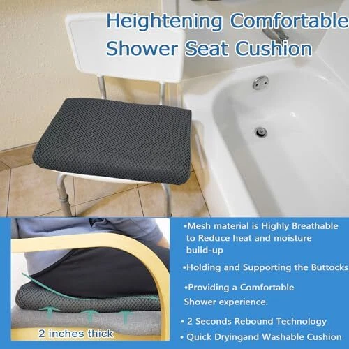Return Policy Fast Delivery Trusted seller Shower Seat Cushion with Non-Slip Silicone Bottom,Soft 4D Mesh Fabric,Bathtub Chair Pad for Elderly,Quick Drying and Washable Shower Seat Mat, Design for Elderly, Senior, Handicap,Disabled Product Description Heightening Design: This shower seat cushion is specifically designed to provide extra height. It elevates the user, making it easier to sit and stand while showering. The increased height enhances comfort and convenience Soft and Comfortable: The shower chair cushion is designed to offer a soft and comfortable seating experience. It provides a gentle and supportive surface to sit on while showering, reducing pressure points and promoting relaxation. The cushion's softness adds an extra layer of comfort to enhance the overall showering experience 4D Mesh Material: The shower chair pad is made of high-quality 4D mesh material. This innovative material offers exceptional breathability, allowing air to circulate freely. It ensures that the cushion remains cool and comfortable, even during long showers Washable and Quick Drying: The mesh material is also washable, making it easy to clean and maintain. The open mesh construction rapidly wicks away water and condensation, keeping the mat and surrounding area dry Silicone Anti-slip Design: The bottom of the shower seat mat is equipped with a silicone anti-slip design.It won't move when you sit in your shower chair.(Please use on a clean chair, if t is grease or mud it will affect the anti-slip effect of the product Shipping Returns Payment Shipping Shipping is FREE to all addresses other than APO/PO boxes in the lower 48 states. All our stock ships from US-based warehouses. Shipped via USPS or UPS (depending on location and package weight) Unless stated otherwise, all orders will ship within 24-72 hours of your payment being processed. Check our feedback to see the great reviews of FAST shipping we offer. Returns Seller does not accept returns Payment We currently accept payment via eBay managed payments only. Once payment is cleared, we will dispatch your shipment within 1-3 business days. Please refer to the "Shipping" tab for more information regarding shipping speed to your destination.