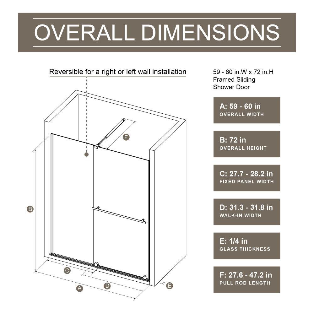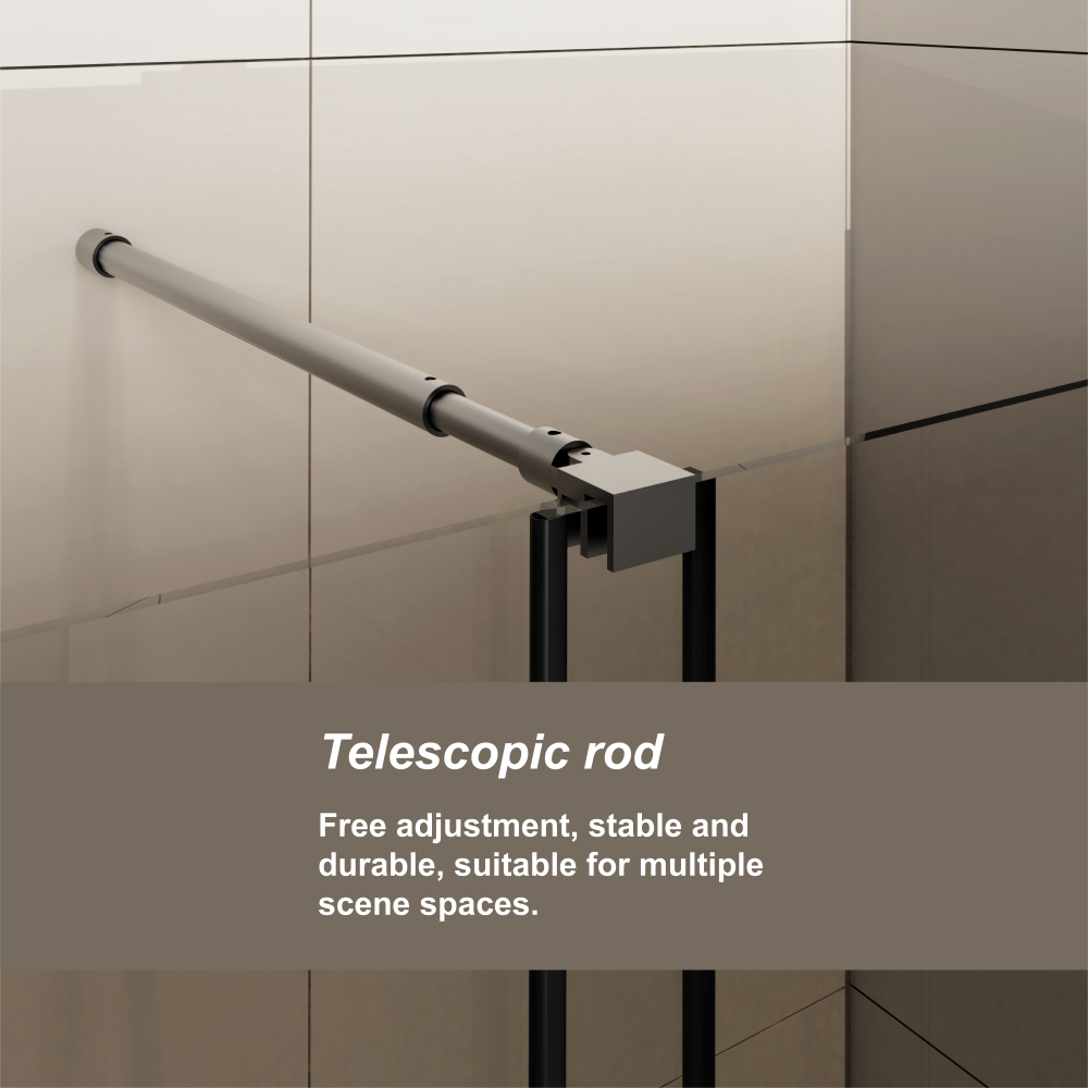 Key Specifications Feature Details Color Matt Black Material Stainless Steel (Handle & Supporting Bar) + 1/4” Tempered Glass + Aluminum Alloy Frame Assembled Dimensions 60” (Length) x 0.25” (Width) x 72” (Height) | Adjustable Width: 30” to 60” Product Weight 105 lbs Package Dimensions 77.30” (L) x 37.40” (W) x 2.90” (H) Package Weight 109 lbs Supporting Bar Adjustment 27.5” to 47.2” (Wall or Ceiling Mountable) Why Choose This Dual-Usage Shower Door? ✅ Dual Usage & Adjustable Design for Custom Fit With an assembled size of 60” x 72” and an adjustable width from 30” to 60”, this shower fixture easily transforms from a walk-in shower screen to a sliding door—perfect for adapting to different shower spaces. Whether you prefer a spacious walk-in setup or a secure sliding door, you can DIY your ideal configuration anytime, no extra tools needed! ✅ Modern Elegant Matt Black Aesthetic The sleek matt black stainless steel handle and supporting bar add a touch of luxury and modern charm to your bathroom. This timeless design seamlessly complements any decor style, from traditional to modern, elevating the overall look of your space without sacrificing functionality. ✅ Sturdy & Safe Construction Made with 1/4” thick tempered glass, this shower door is shatter-resistant and highly durable, ensuring long-lasting use and maximum safety for you and your family. The high-quality aluminum alloy frame provides extra protection for the glass, while the adjustable supporting bar (27.5” - 47.2”) can be mounted to either the wall or ceiling—keeping the door steady and stable even during daily use. ✅ Leak-Free Design for a Clean Bathroom No more messy water spills! The door is securely fixed to the wall and sealed with silicone at the bottom and wall sides, creating a fully waterproof barrier. The glass panel effectively separates the wet and dry areas of your bathroom, keeping the outside clean, tidy, and slip-free. ✅ Reversible Installation for Flexible Layouts Designed for versatility, this shower sliding door supports both left-fixed/right-sliding and right-fixed/left-sliding configurations. All glass panels are clearly labeled (fixed vs. movable) to ensure a hassle-free, intuitive installation process—even for beginners! Premium After-Sales Guarantee We stand behind our product quality! Enjoy 1-Year Quality Warranty for peace of mind—covers any manufacturing defects or hardware issues. Plus, take advantage of our 30-Day Free Return & Exchange Policy : if you’re not completely satisfied with your purchase, simply return it within 30 days for a full refund or free exchange, no questions asked. Package Includes 1 x 1/4” Tempered Glass Panel (Fixed + Movable) 1 x Matt Black Stainless Steel Handle 1 x Adjustable Matt Black Supporting Bar (27.5” - 47.2”) Aluminum Alloy Frame Silicone Seals (for Leak-Proof Installation) All Mounting Hardware & Detailed Installation Instructions Upgrade your daily shower experience with a door that’s functional, stylish, and built to last. Order now and enjoy a cleaner, more elegant bathroom—backed by our unbeatable warranty and free return policy!