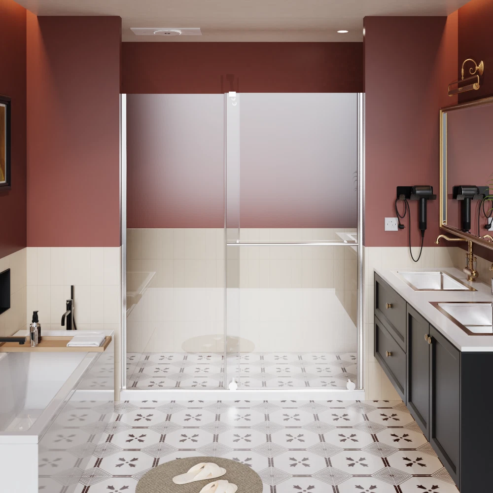 Frame Double Sliding Shower Door W 6mm Tempered Glass Explosion Proof Film