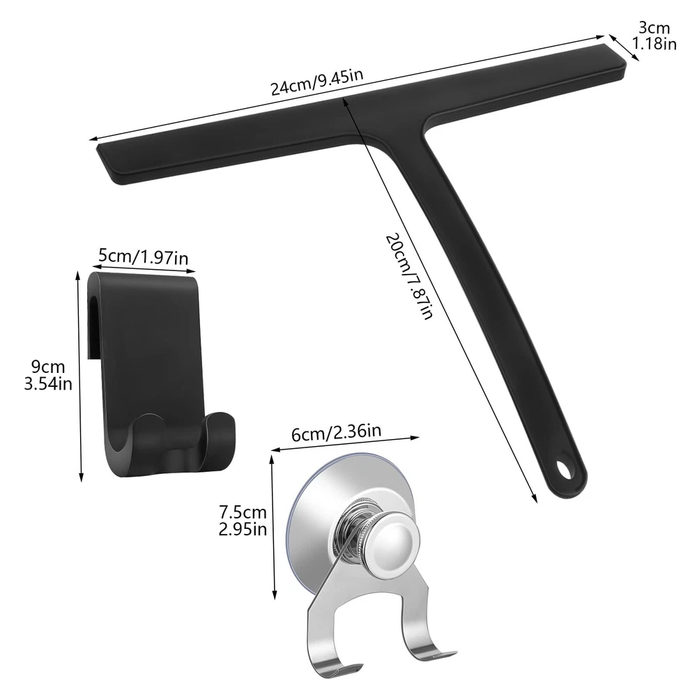 Shower Squeegee Glass Doors,Silicone Shower Squeegee Glass Cleaner Tool Holder 【General Cleaning Tools】The silicone shower squeegee is not only suitable for glass window cleaning, but also suitable for glass walls, car windshields and windows, shower doors, foggy bathroom doors, marble counters and vanities, mirrors and tiles or whatever you may want any other place. 【Double Hook Design】Comes with 1 silicone hook and 1 stainless steel suction cup hook, no drilling or gluing required, you can easily remove and reinstall the suction cup hooks to smooth surfaces, such as window panes, tiles, shower walls, shower Glass surfaces, doors, compartments and enclosures are very convenient for daily use and storage. 【Shiny and Streak-Free】No pushing required, the silicone squeegee for window cleaning removes water well without leaving streaks. Use it with household cleaners to make glass surfaces sparkle. 【Efficient Size】The silicone shower squeegee measures 9.45 inches x 7.87 inches and has a slim design that fits any space,perfect for your home. 【No Noise】The unique design and soft silicone material allow this wiper blade squeegee to fit perfectly on glass or tiles, so you don't have to worry about making squeaking sounds during the cleaning process, giving you a comfortable cleaning experience. Shipping We offer FREE shipping on all orders! We ship within Three business days of payment, usually sooner. We use a selection of shipping services such as UPS, FedEx, USPS etc. We only ship to the lower 48 states, no APO/FPO addresses or PO Boxes allowed. Local pickups and combined shipping options are not provided at this time. Return You can return a product for up to 30 days from the date you purchased it. Any product you return must be in the same condition you received it and in the original packaging. Please keep the receipt. Payment We accept payment by any of the following methods: PayPal Please pay as soon as possible after winning an auction, as that will allow us to post your item to you sooner! Feedback Customer satisfaction is very important to us. If you have any problem with your order, please contact us and we will do our best to make you satisfied. Contact Us If you have any queries, please contact us via ebay. We usually respond within 24 hours on weekdays. Please visit our eBay store to check out other items for sale! Thank you for shopping at our store.