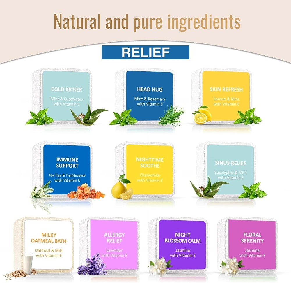 1-Column Ebay Template dewiso.com Shower Steamers 10 Pack - Aromatherapy Gifts for Women, Men, Girl, Stress Relief How to use? Place the shower steamer in the shower, turn on the water, and allow the steam to fill the shower. Item description Various Scents : Infused with natural essential oils. Includes Mint, Eucalyptus, Rosemary, tea tree, Lemon, Lavender, Chamomile, Jasmine, Oatmeal, Milk, and more. Each Shower Steamers is individually wrapped, making it an essential item for relaxation during travel. Wash Away Stress and Fatigue : Our shower bombs help relieve stress, relax your body, and wash away the day’s pressure and fatigue—spa gifts for women and man. The Aroma of Shower Steamers Lasts 2 Times : After years of research and refinement, we utilize small-batch steam distillation to concentrate natural essential oils. Our higher-concentration, all-natural formula ensures the fragrance from our shower steam machine lasts 2 times longer than competing products. Natural Formula : The shower steamer is crafted from 100% plant-based oils with no synthetic additives, dissolving cleanly without leaving stains or residue. Immerse yourself in deep relaxation as the shower steam envelops you. Perfect Gift: Our Shower Steamers feature exquisite packaging, making them the perfect gift for loved ones or friends. Each box contains 10 sachets with a variety of scents, delivering a spa-like experience at home. Whether as a birthday gift, relaxation present for woman, or stress-relief gift for man, our shower steamers aromatherapy are your ultimate choice. Delivery within 3-4 days. Shipping as fast as possible Please contact if you have a question! HAVE A NICE SHOPPING! Calverra