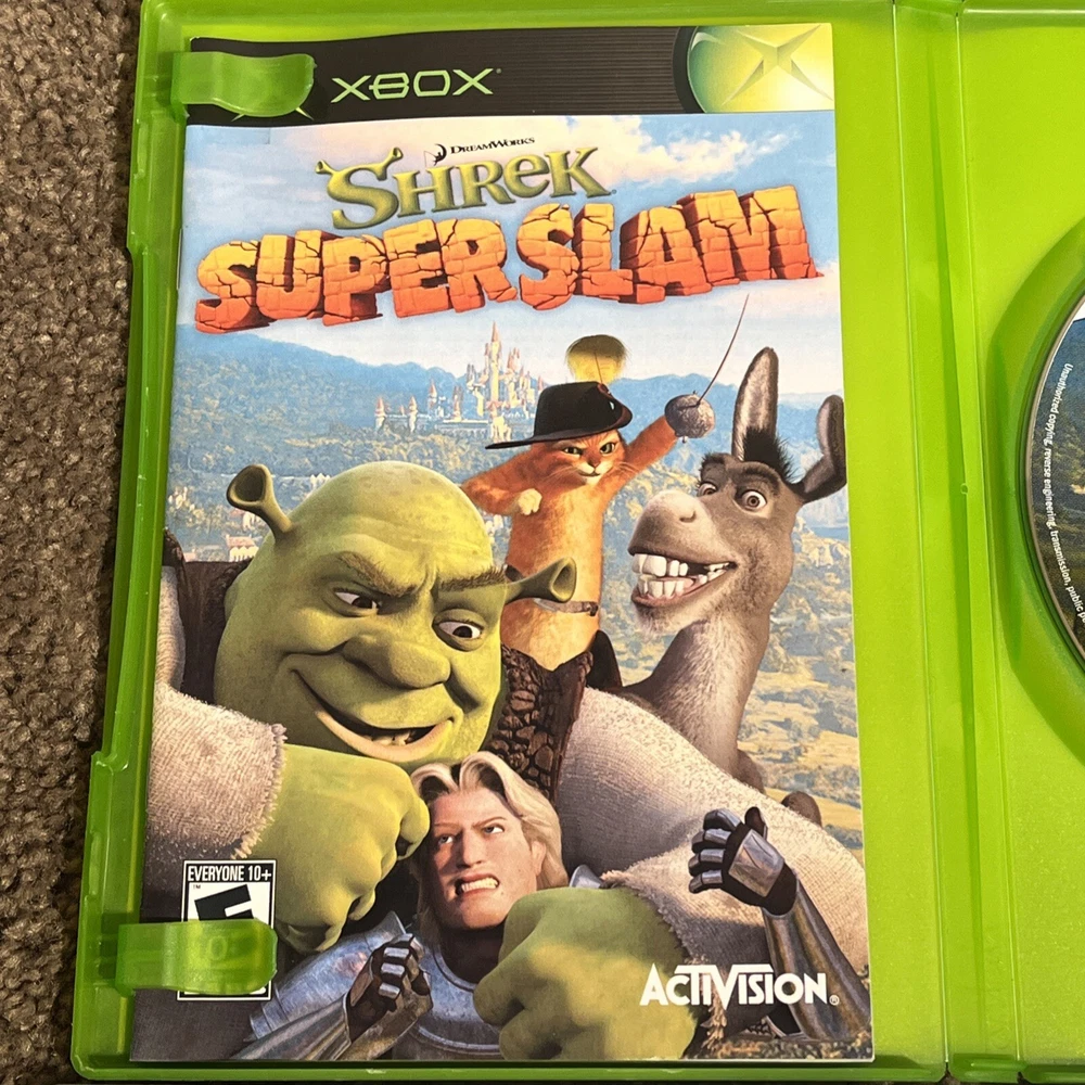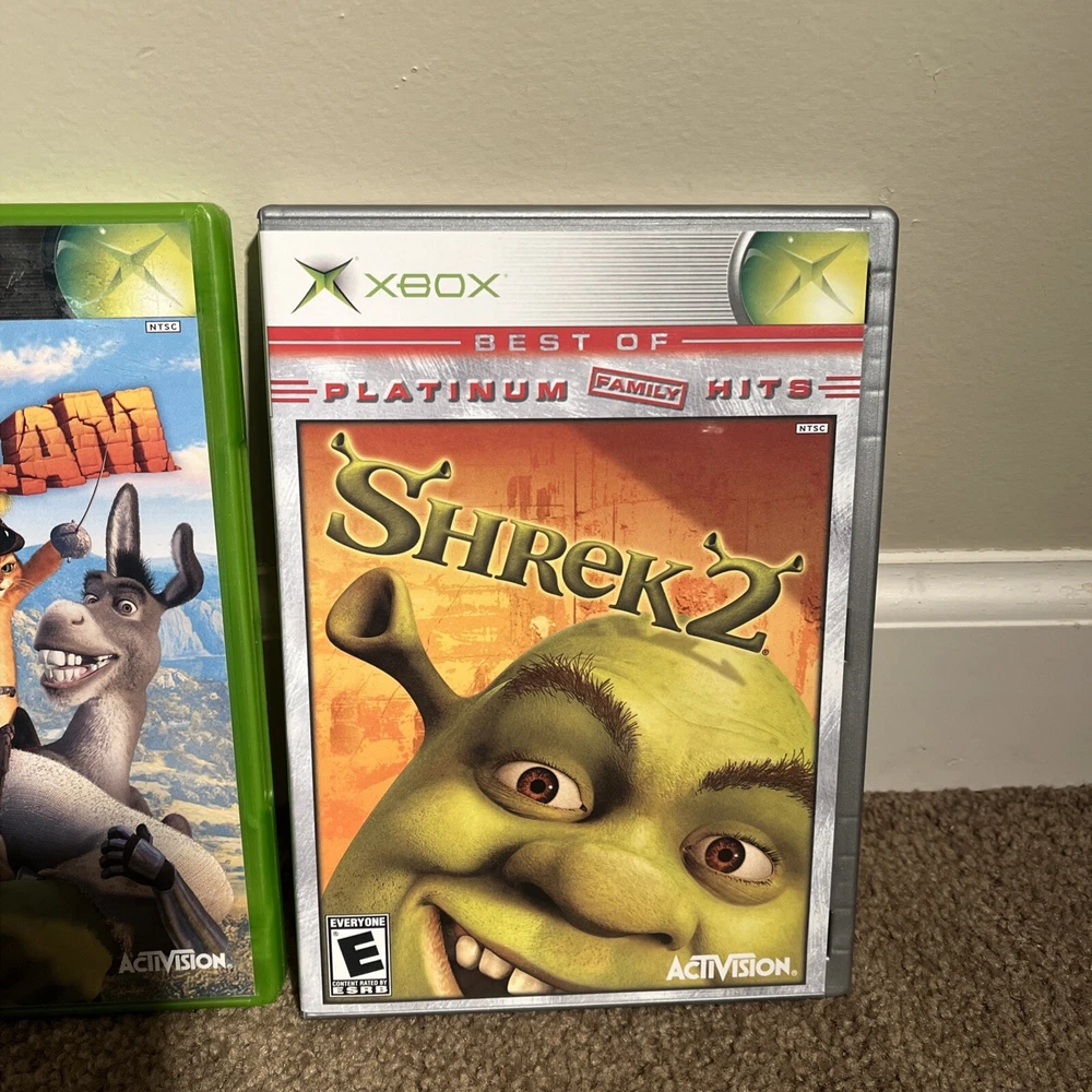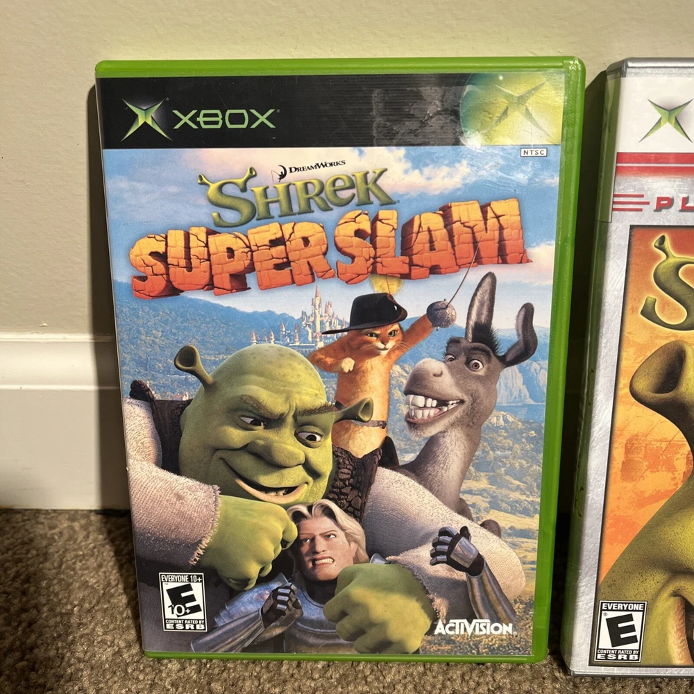 The product is a bundle of two Xbox games, "Shrek SuperSlam" and "Shrek 2," both published by Activision. They are both complete with the manual included and have been tested. The games are part of the Shrek video game series and fall under the genre of Action & Adventure. Rated E10+ (Everyone 10+), the games are designed for the NTSC-U/C region (US/Canada) and are compatible with Microsoft Xbox consoles. This bundle offers a fun gaming experience for Shrek fans looking for some action-packed entertainment on their Xbox console.