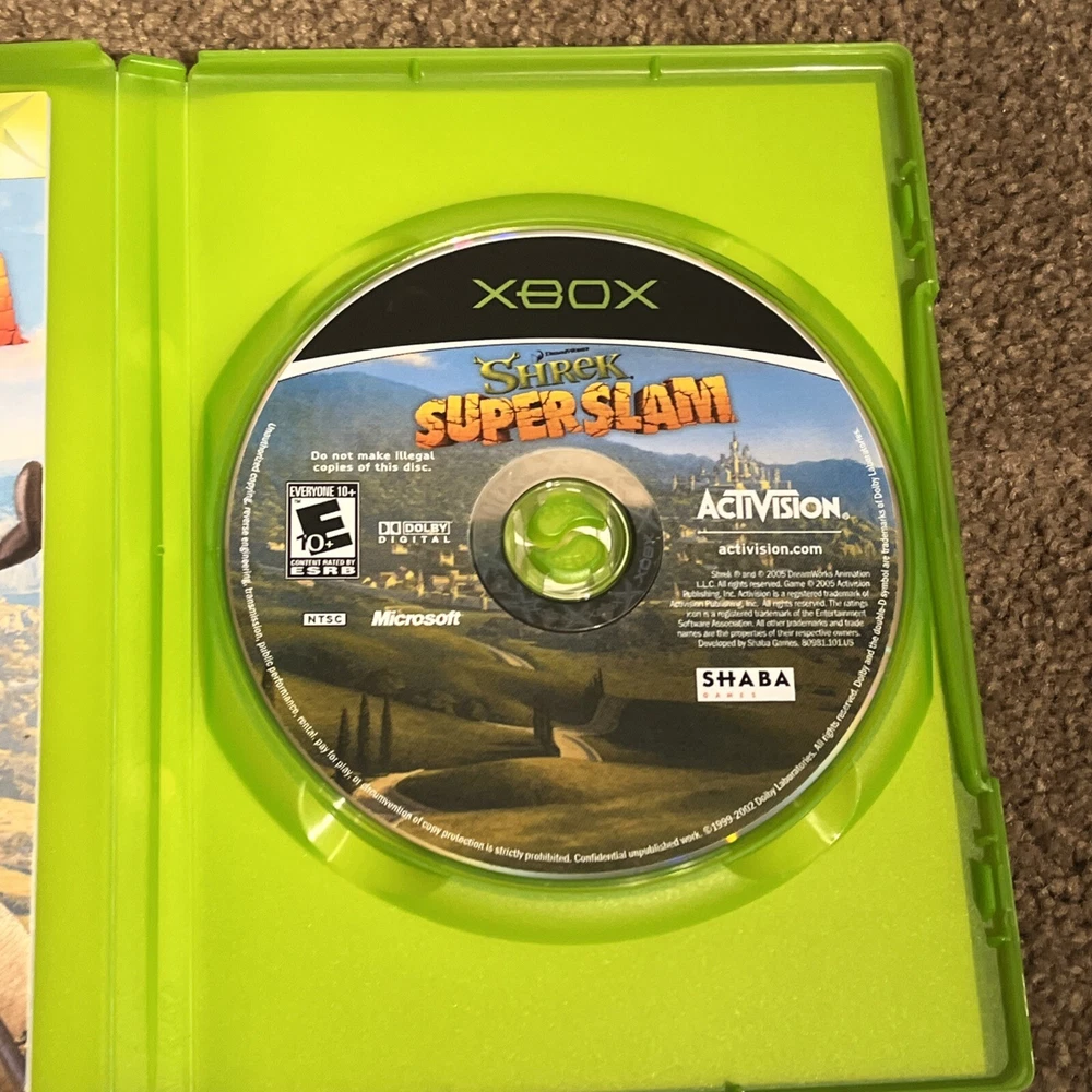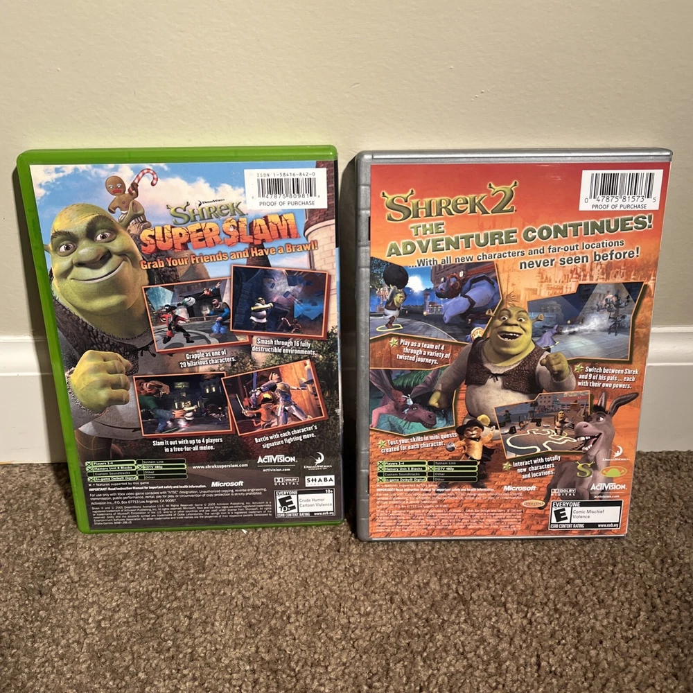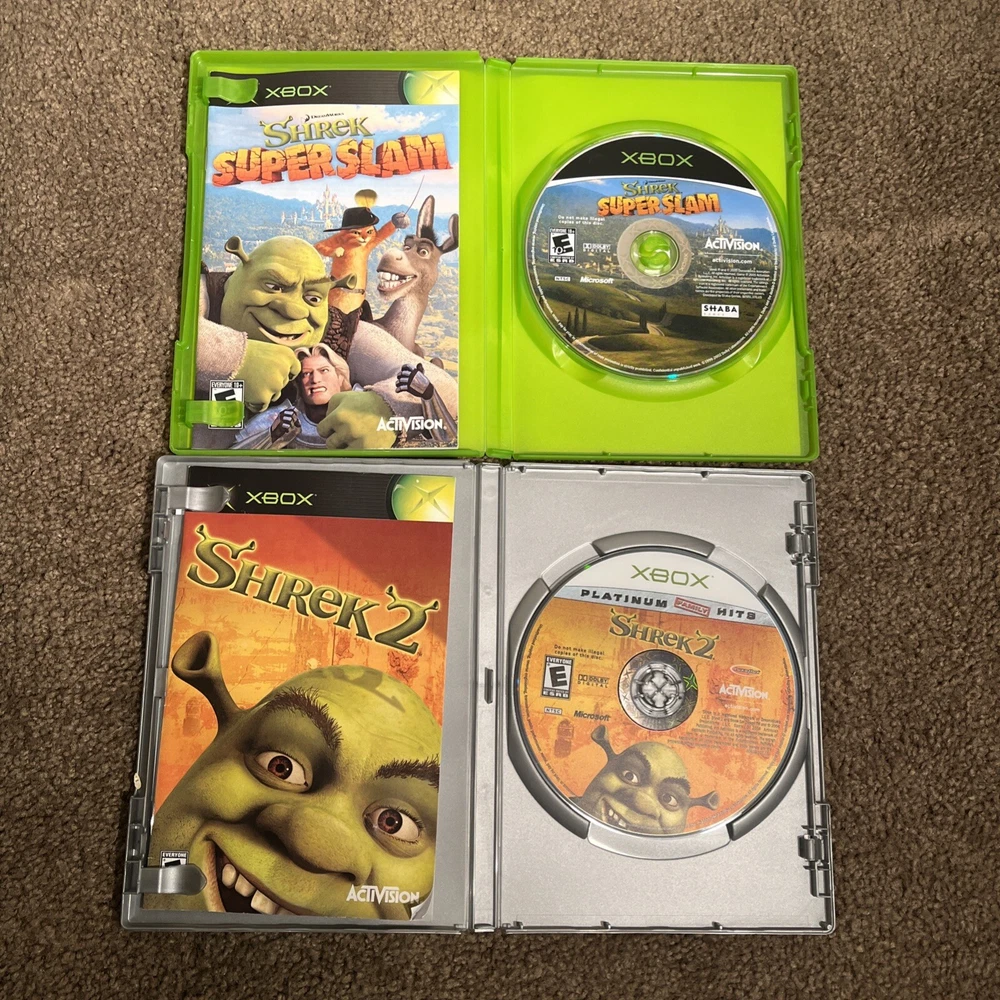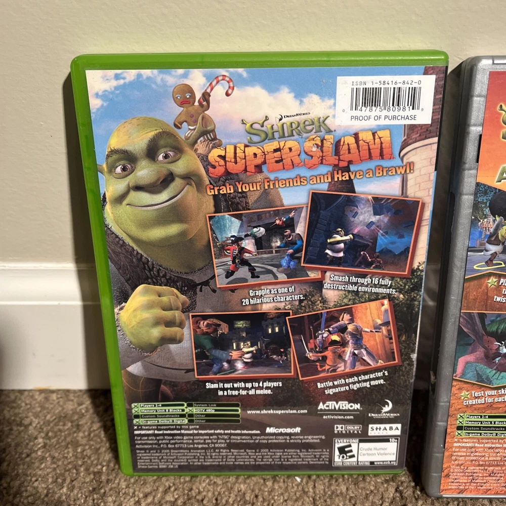 The product is a bundle of two Xbox games, "Shrek SuperSlam" and "Shrek 2," both published by Activision. They are both complete with the manual included and have been tested. The games are part of the Shrek video game series and fall under the genre of Action & Adventure. Rated E10+ (Everyone 10+), the games are designed for the NTSC-U/C region (US/Canada) and are compatible with Microsoft Xbox consoles. This bundle offers a fun gaming experience for Shrek fans looking for some action-packed entertainment on their Xbox console.