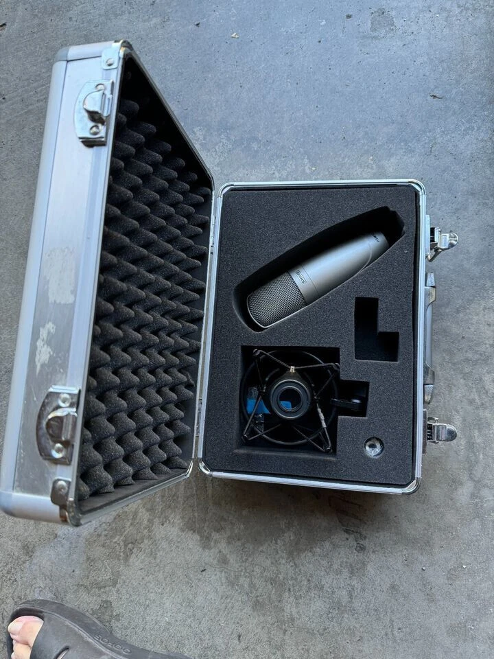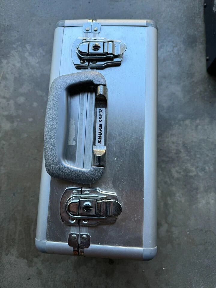 Used Shure KSM32 large diaphragm condenser microphone with shock mount in case. Champagne color. Please see photos.