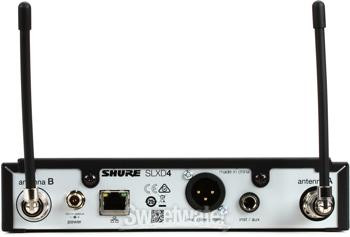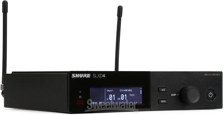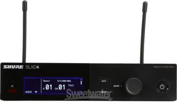 Pure Wireless Performance The Shure SLXD24/SM58 Wireless Handheld Microphone System includes the Shure SM58 Handheld Transmitter and the SLXD4 Digital Wireless Receiver. The SM58 is seen on stages around the world because of its legendary sound and its go-anywhere, do-anything construction. If you love the SM58 already and want a wireless version, this is the system to choose. Shure's cutting edge digital wireless technology delivers 24-bit audio resolution with an almost imperceptible 3.2ms of latency. Add in the working range of 100 meters (328 feet), and you've got a recipe for serious wireless potential. If you're ready to take the plunge and give your system a much-needed upgrade, you can't go wrong with a Shure SLX-D wireless setup.The sound you know without the dropouts Shure's been at the forefront of the wireless movement for more than three decades. Over the years, Shure's learned a thing or two about providing reliable Sweetwater is an Authorized Shure Dealer Genuine New Item Sweetwater's 2-year warranty Shure SLXD24/SM58 Digital Wireless Handheld Microphone System - H55 Band SLXD Series Wireless System with SM58 Handheld Transmitter and SLXD4 Wireless Receiver - H55 Band (514-558MHz) Pure Wireless Performance The Shure SLXD24/SM58 Wireless Handheld Microphone System includes the Shure SM58 Handheld Transmitter and the SLXD4 Digital Wireless Receiver. The SM58 is seen on stages around the world because of its legendary sound and its go-anywhere, do-anything construction. If you love the SM58 already and want a wireless version, this is the system to choose. Shure's cutting edge digital wireless technology delivers 24-bit audio resolution with an almost imperceptible 3.2ms of latency. Add in the working range of 100 meters (328 feet), and you've got a recipe for serious wireless potential. If you're ready to take the plunge and give your system a much-needed upgrade, you can't go wrong with a Shure SLX-D wireless setup. The sound you know without the dropouts Shure's been at the forefront of the wireless movement for more than three decades. Over the years, Shure's learned a thing or two about providing reliable signal and is pleased to report that SLX-D experiences fewer dropouts than ever before. Here at Sweetwater, we chalk the impressive performance up to the sheer transmission strength and the natural resistance to RF interference. One thing's for sure; you can trust SLX-D to deliver a clear and rock-solid signal night after night. Get heard loud and clear One of the chief advantages of using the SLX-D series is the immense dynamic range. Since Shure SLX-D systems transmit digitally, you can use its entire dynamic range without worrying about the effects of companding and compression. And thanks to its 120dB dynamic range, your system will be able to handle whisper-quiet performers and rock bands alike. No matter what performers are onstage, SLX-D makes sure that they're heard loud and clear. Ready to go the distance Shure's SLX-D systems are versatile and expandable to fit the needs of any venue. Single-channel and dual-channel receivers and vocal, guitar, headset, and lavalier options let you choose the setup that's right for you. Once you get everything you need, getting set up is a breeze. One-touch synchronization and IR scan make pairing a transmitter and receiver a walk in the park. With a pair of AA batteries, Shure's SLX-D transmitters provide up to eight hours of non-stop operation that's perfectly suited for conferences, extended performances, and Sunday mornings. Shure SLXD24/SM58 Wireless Handheld Microphone System Features: Complete digital wireless system for live performance SLXD4 wireless receiver pairs easily with any transmitter SM58 transmitter delivers stage-ready sound Transparent 24-bit digital audio provides high-quality signal resolution Digital predictive switching diversity keeps your signal strong Low-profile design is comfortable to wear for extended periods Scan and IR sync provide easy pairing to a transmitter Tour tough construction stands up to punishment 32 available channels per frequency band (region dependent) Up to 10 compatible systems per 6MHz TV band; 12 systems per 8 MHz band Specification Detail Simultaneous Systems Per Band 32 System: Analog/Digital Digital System: Frequency Range 514-558 MHz System: Operating Range 328 ft. Line-of-sight System: Frequency Response 20Hz-20kHz System: Microphone Included SLXD2 Transmitter with SM58 Capsule System: Channel Selection Auto Microphone: Type Dynamic Microphone: Polar Pattern Cardioid Microphone: Frequency Response 50Hz-15Hz Transmitter: Form Factor Handheld with Mic Capsule Transmitter: Dynamic Range 120dB (A-weighted) Transmitter: Battery Type 2 x AA, SB903 Rechargeable Li-ion Transmitter: Battery Life Up to 8 hours Transmitter: Dimensions 6.9" x 1.4" Transmitter: Weight 0.32 lbs. Receiver: Antenna Type Detachable Receiver: Type Rackmount, Table Top Receiver: Rackmountable Yes Receiver: Rack Spaces Half-rack Receiver: Displays LCD Receiver: Outputs 1 x XLR, 1 x 1/4 Receiver: Data I/O 1 x Ethernet Receiver: Power Source 15V DC power supply Receiver: Dimensions 1.65" x 7.7" x 5.9" Receiver: Weight 1.8 lbs. RETURN INFORMATION We want you to be completely happy with your purchase from Sweetwater. If you are not satisfied with your product, you may return it for a refund of the purchase price within 30 days. If your purchase was eligible for Free Shipping, the shipping cost will be deducted from your credit or refund. Returns must be in the complete and original packaging with all accessories and complete documentation (Owner's Manual, warranty card, quick start guides, etc.), show no signs of wear or use, and include a Return Authorization number or be subject to a restocking fee.