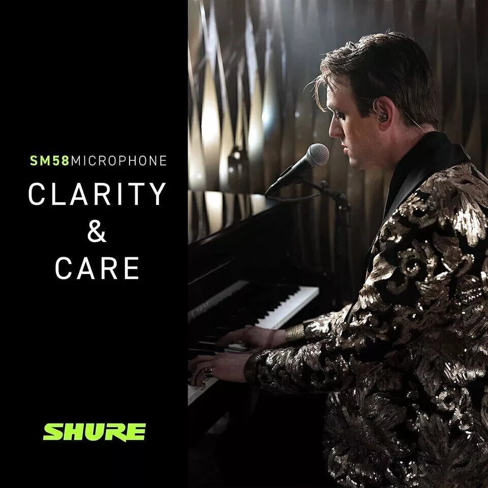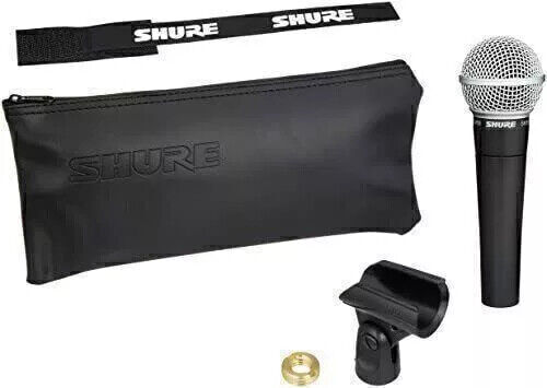 The packaging includes: 1 X Microphone clip 1 X Microphone 1 X Storage bag 1 X User Guide BRAND NEW SM58LC Shure Dynamic Wired XLR Professional Microphone If you’ve ever heard someone sing or speak into a live microphone, there’s an excellent chance it was an SM58LC. Rock stars. Pop idols. Comedians. Presidents. Popes. Immortal words have passed through its iconic grille for generations. And with engineering and durability that set the world standard, it’s sure to keep turning up at legendary performances. Made to handle voice with clarity and care, the uniform cardioid polar pattern reproduces every note as it was intended. And it leaves background noise behind. On any stage — from the club show to the stadium — the SM58LC delivers warm, crisp sound, time after time. Handling noise gets absorbed by the pneumatic shock mount, keeping the sound free of vibration.When wind and plosives try to take over, the spherical mesh grille and built-in pop filter keep them out of the mix. Taking the show on tour? The mic’s durable construction and the break-resistant stand adapter keep the SM58LC going strong through the toughest performances.