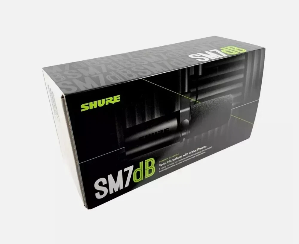 Product Description Shure SM7dB Dynamic Microphone Built in Preamp Streaming Podcast Recording Black LEGENDARY SOUND - The SM7dB delivers the familiar warm tone adored by broadcasters, vocalists and content creators alike. Shure engineers have painstakingly ensured that it has the same sound signature as the original SM7B. BUILT-IN PREAMP - Providing up to +28 dB of low-noise, flat, transparent gain, the onboard preamp preserves the mic’s frequency response for a clean, classic sound. All you need is an interface or mixer offering +48V phantom power to operate the preamp. GAIN LEVEL - Choose between +18dB or +28dB from the preamp. Loud sound sources like a guitar cab or snare drum? Use +18dB or bypass the preamp for the original SM7B output level. Podcasting or recording quiet vocals? Select the built-in boost of +28dB BYPASS SWITCH - A convenient bypass mode allows you to forego the built-in preamp in case you prefer to feed the mic’s unboosted signal into your professional console or interface. Bypassing the preamp reverts the SM7dB to original SM7B performance. WIDE FREQUENCY RESPONSE - Whether you’ve activated the preamp or not, you’ll get the same great detail in your recordings from a proven dynamic cartridge and frequency range of 50 to 20,000Hz. Hear all the highs and lows for truly natural sounding audio. CARDIOID POLAR PATTERN - Excellent rear-rejection and textbook cardioid pick-up pattern isolates your voice from any background noise, allowing the SM7dB to capture warm, crisp audio in any environment. Ideal for less-than-ideal spaces. FIND YOUR IDEAL TONE - Just like the SM7B, the SM7dB offers multiple sound signatures using switches on the back of the microphone to suit any type of voice or instrument. Find your ideal tone by cutting the lows or boosting the presence. Contact Us: 1.We strive to satisfy every customer.we will do our best to solve your problem. 2.Before leaving us neutral or negative feedback, please contact us first. We will do everything we can to give you a satisfying solution. 3.Please don't open case via ebay or paypal. 4.Please don't open any return request before contact us. 5.We do our best to resolve any issue. Leaving negative feedbacks and low ratings doesn't get things solved. So please talk with us and we will not let you down. On Jan 30, 2025 at 08:33:23 PST, seller added the following information: