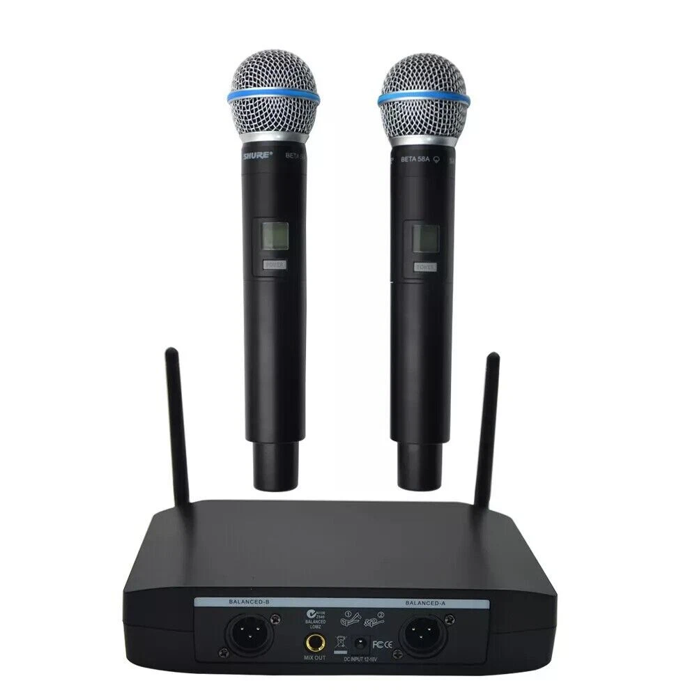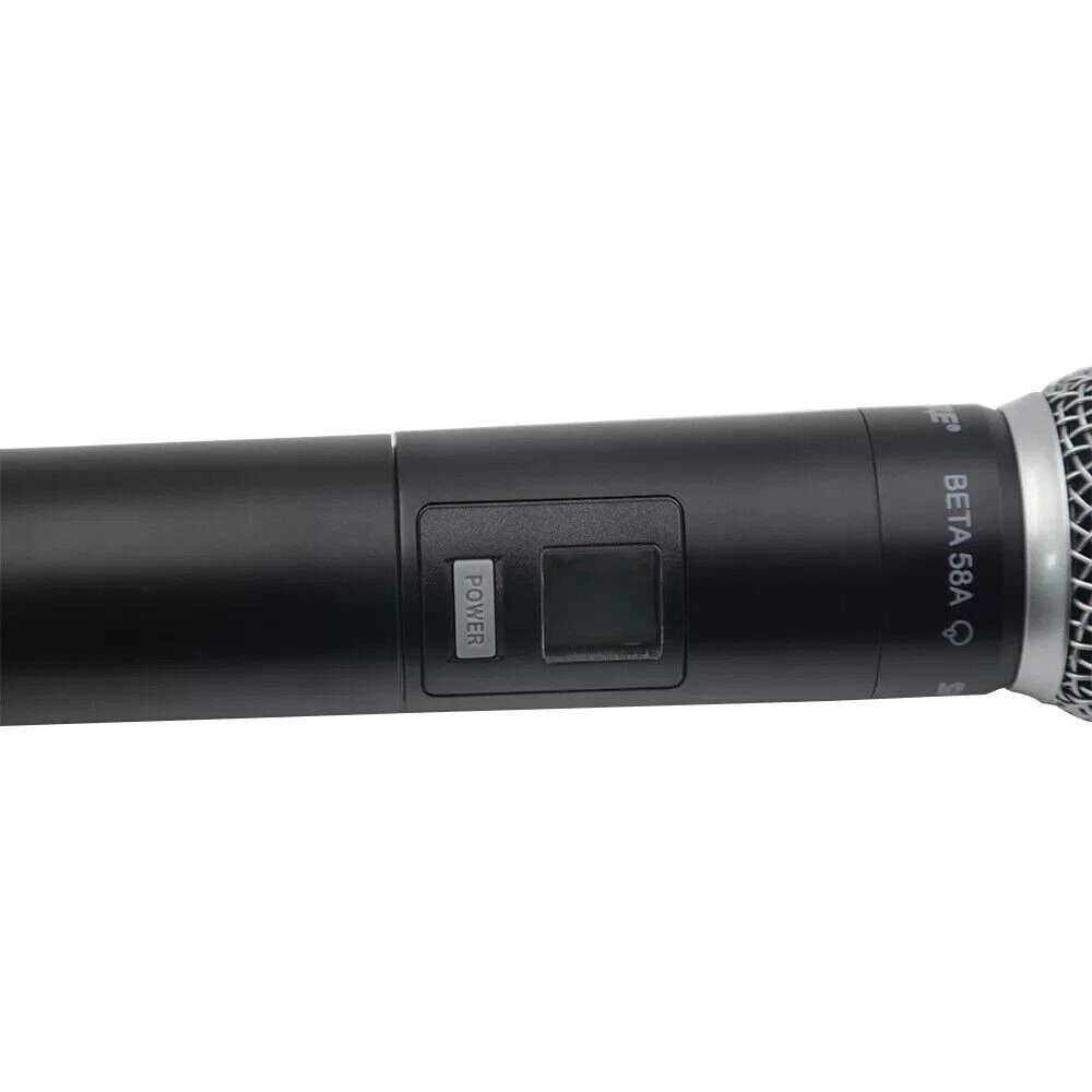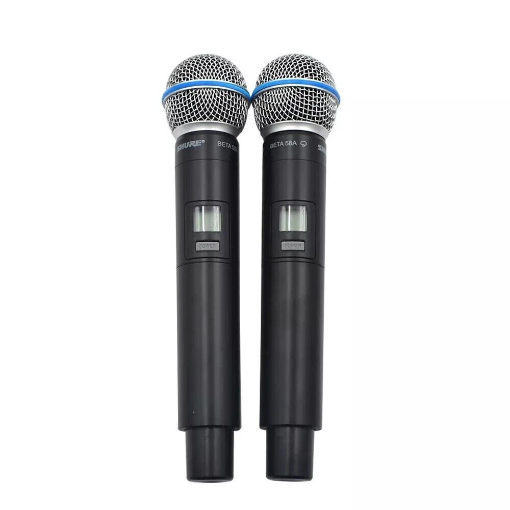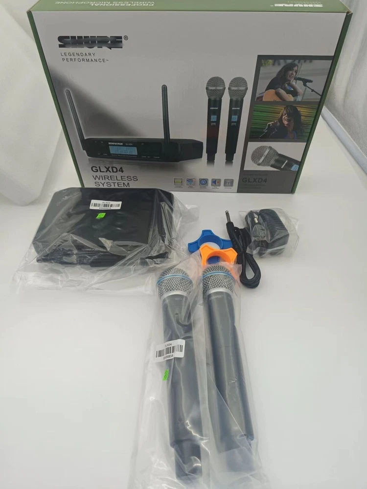 Shure Vocal Dual Channel Wireless Microphone System UHF Handheld GLXD4+BETA58A Specifications: - Style: Handheld Microphone - Transducer: Dynamic microphone - Use: Karaoke microphone - Set Type: Pairing - Polar Pattern: Cardioid - Diaphragm: Small - Communication: Wireless - Model: GLXD4 - Frequency: adjust the frequency - Frequency range: 510-590MHZ - Use distance: 50m/164ft - Use: KTV, stage, performance, church, wedding, performance, band, and family - Material: ABS engineering plastic - Number of microphones: 2 Package Included: As shown in the figure On Jan 4, 2025 at 00:37:18 PST, seller added the following information: