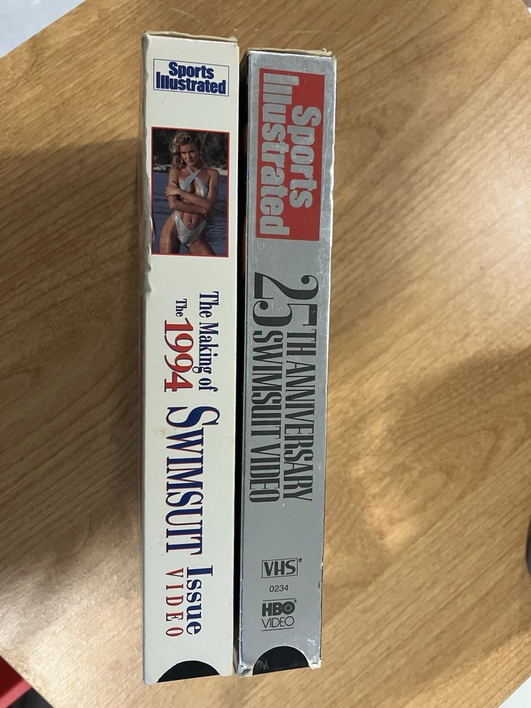 This lot includes two VHS tapes of the Sports Illustrated-25th Anniversary Swimsuit Video from 1989 and 1994. The tapes feature English language with NTSC signal standard and are rated as NR. They are former rental copies from HBO Home Video. This collection captures the iconic swimsuit photography and interviews from the magazine, making it a nostalgic and entertaining watch for fans of fashion and beauty.