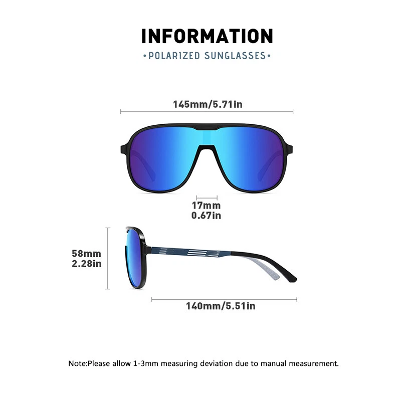 Description Brand: FELRES Frame Material : Metal + Plastic Lens Material: Plastic Anti-UV rating: UV400 Whether polarized : Yes Gender: Men/Women Lens Width : about 64 mm Lens height: about 58 mm Bridge: about 17 mm Frame Width: about 145 mm Temple Length : about 140 mm Package included: 1* Sunglasses(Not include boxes and other accessories) Note: 1. Due to the different monitor and light effect, the actual color of the item might be slightly different from the color showed on the pictures. Thank you! 2. Please allow 1-3mm measuring deviation due to manual measurement. Payment Shipping Address About Item Shipping Contact us Payment We accept payment through Paypal ONLY.which is both safe and efficient and it is also the only online payment method We ship to your eBay or Paypal address. Please make sure your eBay and Paypal address is correct before you pay. IF you do not have Paypal account, please registered with. Please be notified that if we do not receive your payment within 1 week, we’ll send a request to eBay Resolution Center to cancel this deal as an “Unpaid Bidding” case which may heavily affect both of our credits. Customs Duties& Taxes Import duties, taxes and charges are not included in the item price or shipping charges. These charges are the buyer's responsibility. Please check with your country's customs office to determine what these additional costs will be prior to biddingying. These charges are normally collected by the delivering freight (shipping) company or when you pick the item up – do not confuse them for additional shipping charges. Shipping Address We ship to your eBay or Paypal address. Please make sure your eBay and Paypal address is correct before you pay. Items will be shipped within 1-5 business day when we received payment. Delivery time depends on destination and other factors; About Item Please send us an ebay information if you wish to change shipping address. All items sold by us are being described to the best of our abilities, as accurate as possible, and with utmost conscientiousness on our part. However, to avoid any potential oversights, I respectfully request your assistance in helping us to make this a mutually satisfactory transaction by THOROUGHLY reviewing item description and photos, and asking all questions PRIOR TO BIDDING. We provide native-speaking customer service in English . Please Note that size and color representation are subject to manufacturing variance and may not be exact. Also note that monitor settings may vary from computer to computer and may distort actual colors. Please read these terms thoroughly before placing your bid. Shipping The items will be shipped by Air Mail, which usually takes 15-30 business days to USA, Canada,Europe, Australia by economic delivery.And ,it will takes longer (20-50 working days) to Russia and Brazil. If you want to be more fast,please select faster shipping way,it could have arrived within 15 days . Shipping may influenced by holidays, events and other uncertainties. We could not guarantee the arrival time.If you dislike the seemingly long shipping time, please think twice before bidding. We do not want to because of shipping time. Get a negative or neutral or low star rating. Contact us Do not hesitate to contact us anytime before and after In case you received a defective item,received a wrong item, there be occasion when you receive items that are different from the description.In such case,contact us immediately so we may remedy the situation. Your satisfaction is important to us and we value your business.Bid With Confidence! Brand FELRES MPN Does Not Apply Model 3020 Type Sunglasses Frame Material Metal, Plastic Lens Material Plastic Department Unisex Adults Style Oval Country/Region of Manufacture China Lens Width 64 mm Lens height 58 mm Bridge 17 mm Frame Width 145 mm Temple Length 140 mm UV Protection UV400 Features Full Frame Lens Technology Anti-Reflective, Polarized Personalized No Theme Classic, Designer, Outdoor, Retro Frame Color Multicolor