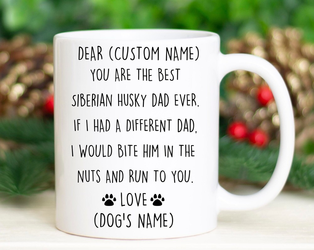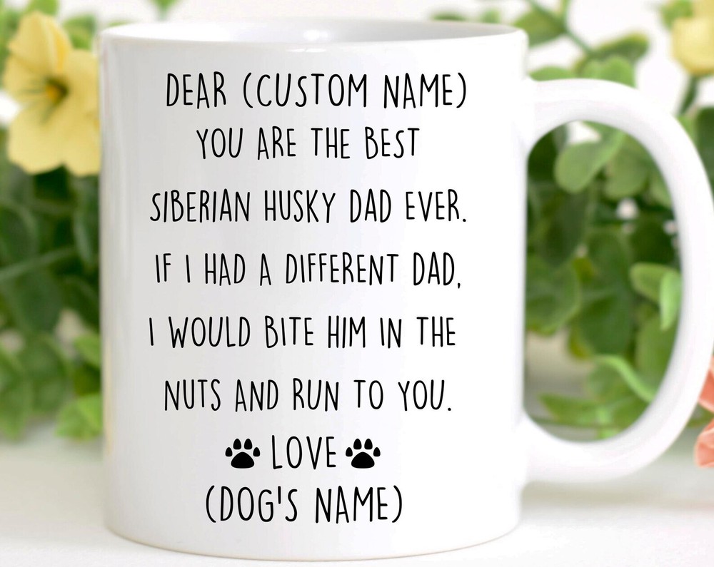Siberian Husky Dad Birthday Gift Siberian Husky Dad Christmas Gift Husky Dad Valentine Siberian Husky Dad Appreciation Sib Husky Dad Mug Product Details.. This high quality 11oz. ceramic white mug has a premium hard coat that provides crisp and vibrant color reproduction sure to last for years. Perfect for all hot & cold beverages. The highest quality printing possible is used. It will never fade no matter how many times you wash it. Material: 100% Ceramic. Print both sides. Dishwasher and Microwave Safe. High Gloss + Premium White Finish. Printed in the U.S.A. Personalized & Custom. We support personalized and custom mug to add custom, when placing an order, you can add notes to the "order note" in shipping address section. Also you can contact us directly via message. Shipping Info. Ready to ship in 1 to 2 business days, All products are made-to-order and proudly printed in the United States. Shipped by USPS and DHL, You will receive your order in 5-7 days. Replace & Refund. All products are defective during shipping broken, chipped will be replaced free of charge. You are not satisfied with the product, we will refund 100% money to you. If any other issues arise, please do not hesitate to message, we would be more than happy to assist you.
