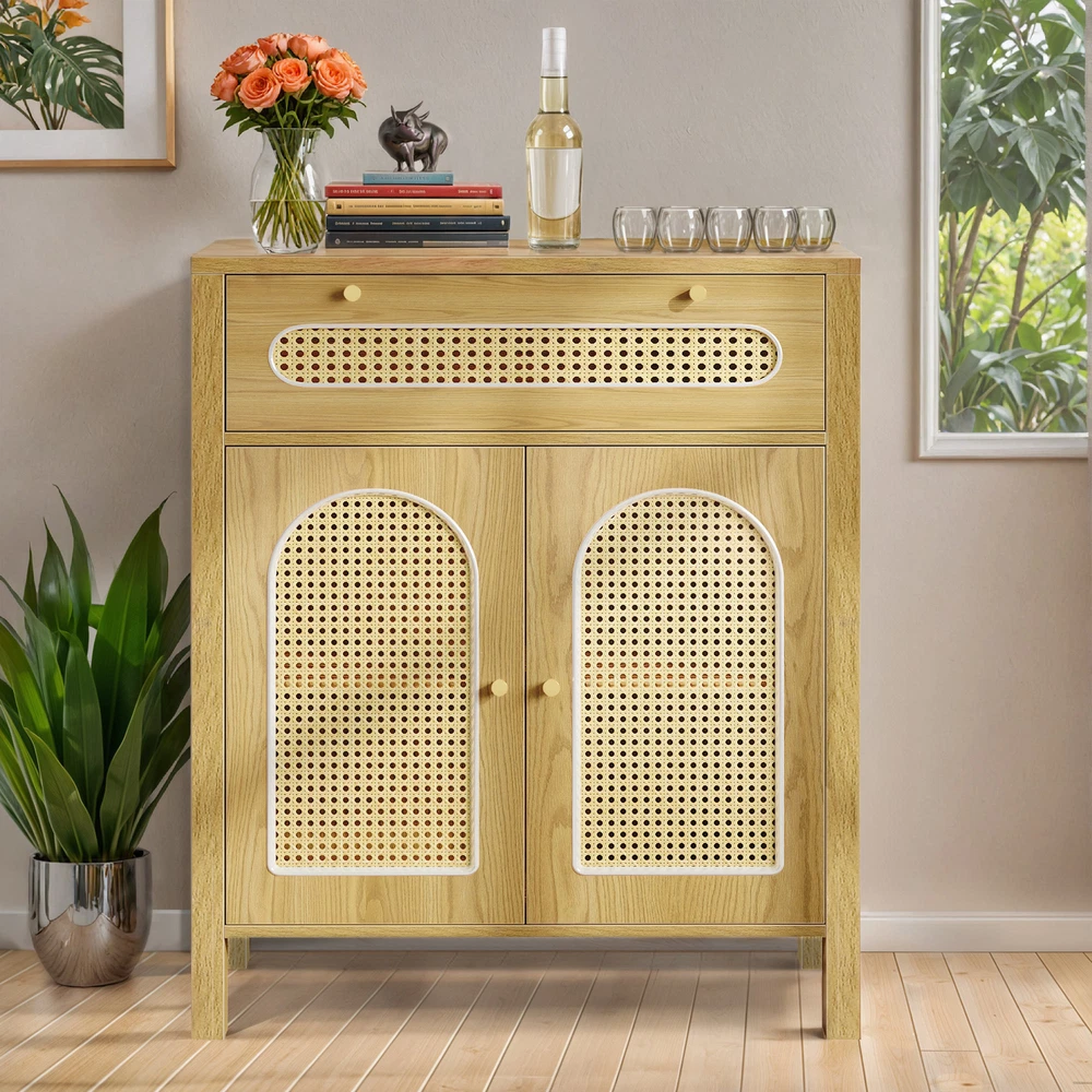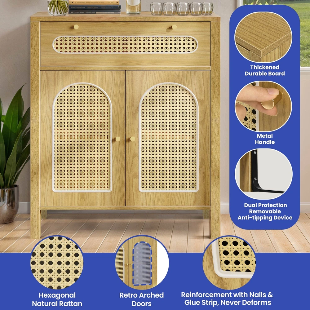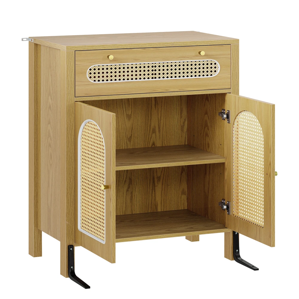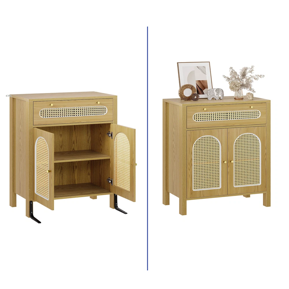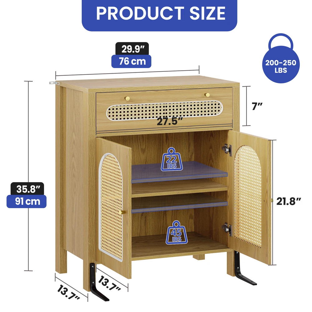 gtin13: 197839650206 Ideal for: Chest of Storage, Storage Cabinet, Sideboard, Chest of Drawers, Drawer Cabinet, Drawer Dresser Shape: Rectangular Item Weight: 60.84 lbs UPC: 197839650206 Door Mechanism: Hinge and Sliding Height Bottom to Floor: 7 Inch Item Width: 13.7 Inch Original/Reproduction: Original Item Height: 35.8 Inch Manufacturer Warranty: 1 Year Era: 21st Century (2000-now) Handle Material: Iron Assembly Required: Yes Wood Tone: Medium Wood Drawer Dimensions: 27.5" L x 13.7" W x 7" H Number of Drawers: 1 Required Tools: Screwdriver Features: With Drawers, With Adjustable Shelves, With Anti-Tipping Device, Easy to Clean, Carvings Additional Parts Required: No Mounting: Free Standing Handle Finish: Painted Room: Living Room, Home Office/Study, Entryway, Kitchen, Dining Room, Bedroom Color: Natural Number of Shelves: 2 Item Length: 29.9 Inch Item Height (Interior): 21.8 Inch MPN: BEYSHrEX0c Style: Contemporary/Modern Department: Adults Model: New Care Instructions: Easy Care Type: Sideboard Brand: Homnia Personalized: No Item Length (Interior): 27.4 Inch Handle Type: Door Knob Maximum Weight Capacity: 250 lbs Item Width (Interior): 13.7 Inch Material: Particle Board, MDF/Chipboard, Rattan Finish: Oak