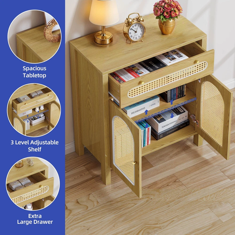 30" Classic Chest of Drawers Dresser Rattan Wood Drawer Storage Adjustable Shelf Product Description NOTE: Professional Installation would be Highly Recommended. Description: 1. Color: Oak Natural 2. Material: MDF Wood, Particle Board, and Rattan 3. Ideal for: Chest of Storage, Storage Cabinet, Sideboard, Chest of Drawers, Drawer Cabinet, Drawer Dresser 4. Room Type: Entryway, Bedroom, Kitchen, Living Room, Home Office, Hallway, Living Room 5. Special Features: With Drawers, With Adjustable Shelves, With Anti-Tipping Device, and Easy to Clean Features: 1. Ample and Adjustable Storage: Elevate your storage game with our stunning rattan cabinet! Boasting a spacious drawer and 3 adjustable shelves, this piece offers ample room for your essentials. The harmonious blend of natural wood and warm rattan infuses a touch of boho chic into your living space. 2. Versatile Functionality: Embrace versatility with this multifunctional storage solution! Whether as a bookshelf, buffet, sideboard, or general storage unit, this adaptable cabinet seamlessly fits into any room—be it the living room, dining area, or bedroom. 3. Robust and Stylish Design: Crafted from durable P2 MDF and natural rattan, this cabinet is built to withstand up to 250 lbs of weight. The elegant gold handles and intricately woven rattan details exude a luxurious charm, enhancing the aesthetic appeal of your home decor. 4. Effortless Assembly: Say goodbye to assembly woes! Our cabinet comes with clear instructions and pre-labeled parts, making setup a breeze. Enjoy the convenience of a quick and easy assembly process, allowing you to relish your new cabinet in no time. Dimensions: 1. Product Dimensions: 29.9 '' L x 13.7'' W x 35.8" H 2. Drawer Dimensions: 27.5" L x 13.7" W x 7" H 3. Overall Product Weight: 60.84 lbs 4. Weight Capacity: 200-250 lbs Package Included: 1 x Chest of Drawer 1 x Instructions 1 x Accessory Kit Shipping 1. Normally the item will be dispatched within 1 business day if payment is cleared before 12pm PST. 2. Please verify the correct shipping address in your PayPal account before making the payment. 3. We only dispatch the item to the address that is sent to us at the time of checkout. 4. We don't ship to Hawaii, Alaska, Puerto Rico, APO/FPO/PO Boxes. 5. We don't provide local pick-up service. 6. Normally we will use USPS, UPS, FedEx & LTL to dispatch items. Payment 1. We accept PayPal and credit card. 2. We will ship to the confirmed Paypal shipping address that is provided with the payment only. Return 1. 30 days Money Back Guarantee. 2. Please contact our customer service to receive a RMA form first if want to return the item. 3. All returned items MUST in new condition with the original package. Contact If has any problem, please contact us by sending an ebay message. Our customer service will resolve the problem as soon as possible. On Dec 2, 2024 at 19:58:31 PST, seller added the following information: On Jan 31, 2025 at 03:01:19 PST, seller added the following information: